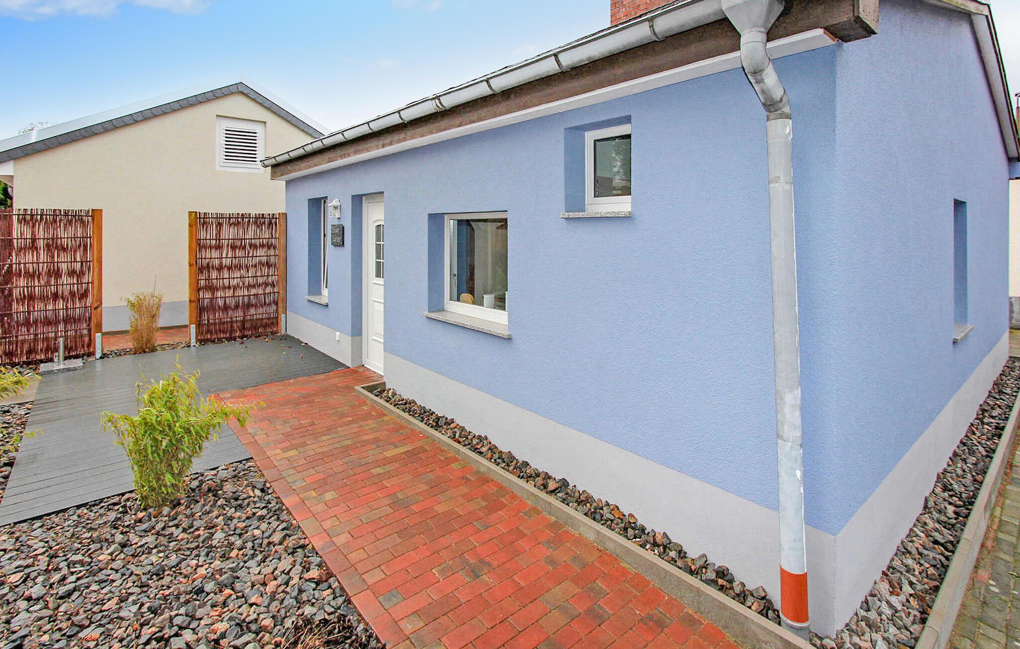 Die drei Ferienhäuser für 2 bis 4 Personen befinden sich separat auf einem 1000 qm großen Erholungsgrundstück innerhalb einer ruhigen Wohnsiedlung, nur 750 m vom Ostseestrand entfernt. Auf dem Grundstück befinden sich noch ein weiteres Ferienhaus. Die Häuser wurden im Jahre 2018 komplett neu ausgebaut und neu ausgestattet.