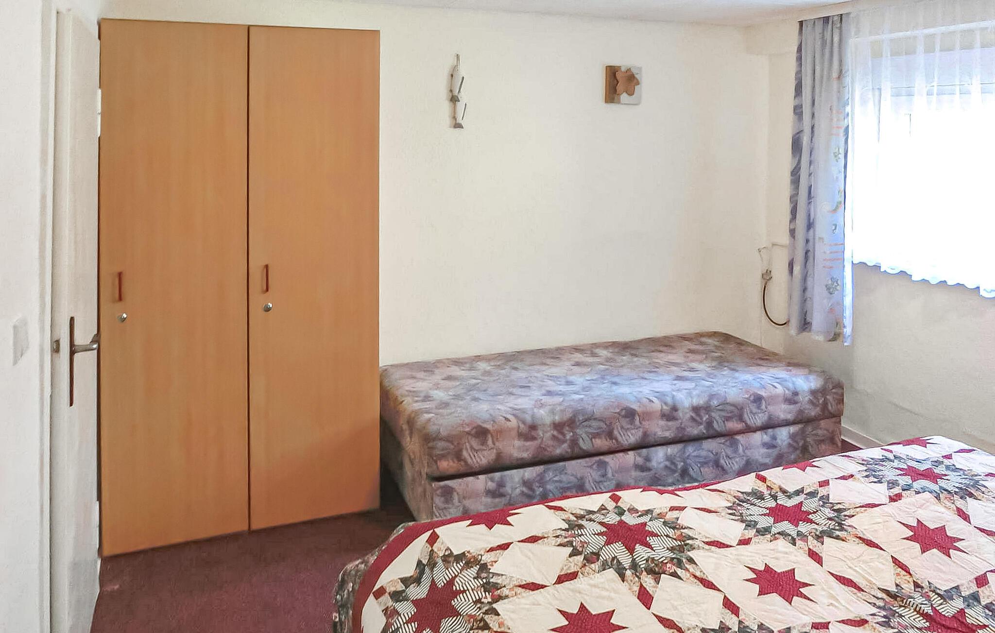 Schlafzimmer (nr. 1) - 1 Schlafmöglichkeit. (Einzelbett(en)). 2 Schlafmöglichkeiten. (Doppelbett(en)).