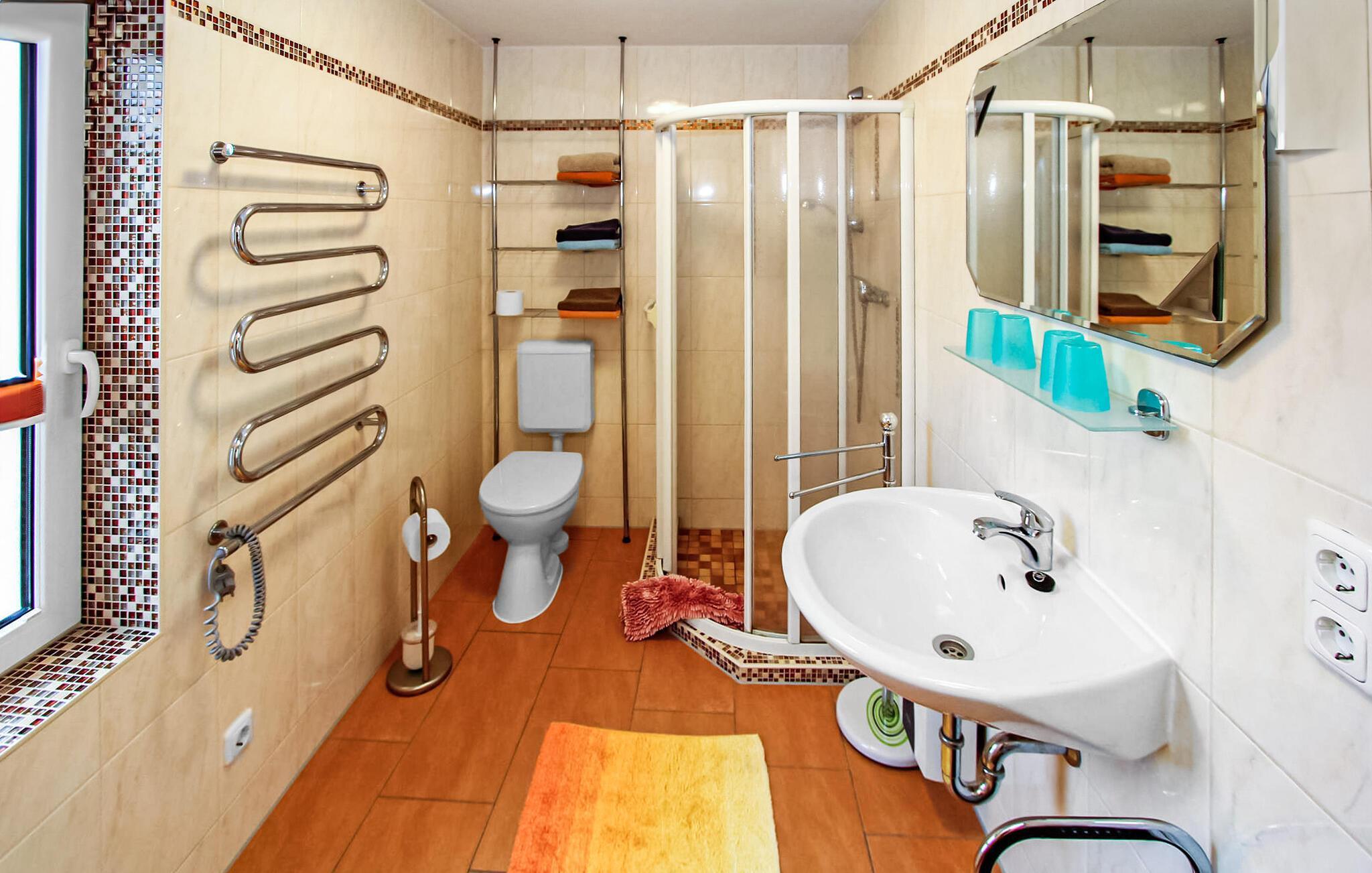 Badezimmer (nr. 1) - WC. Warmes und kaltes Wasser. Dusche