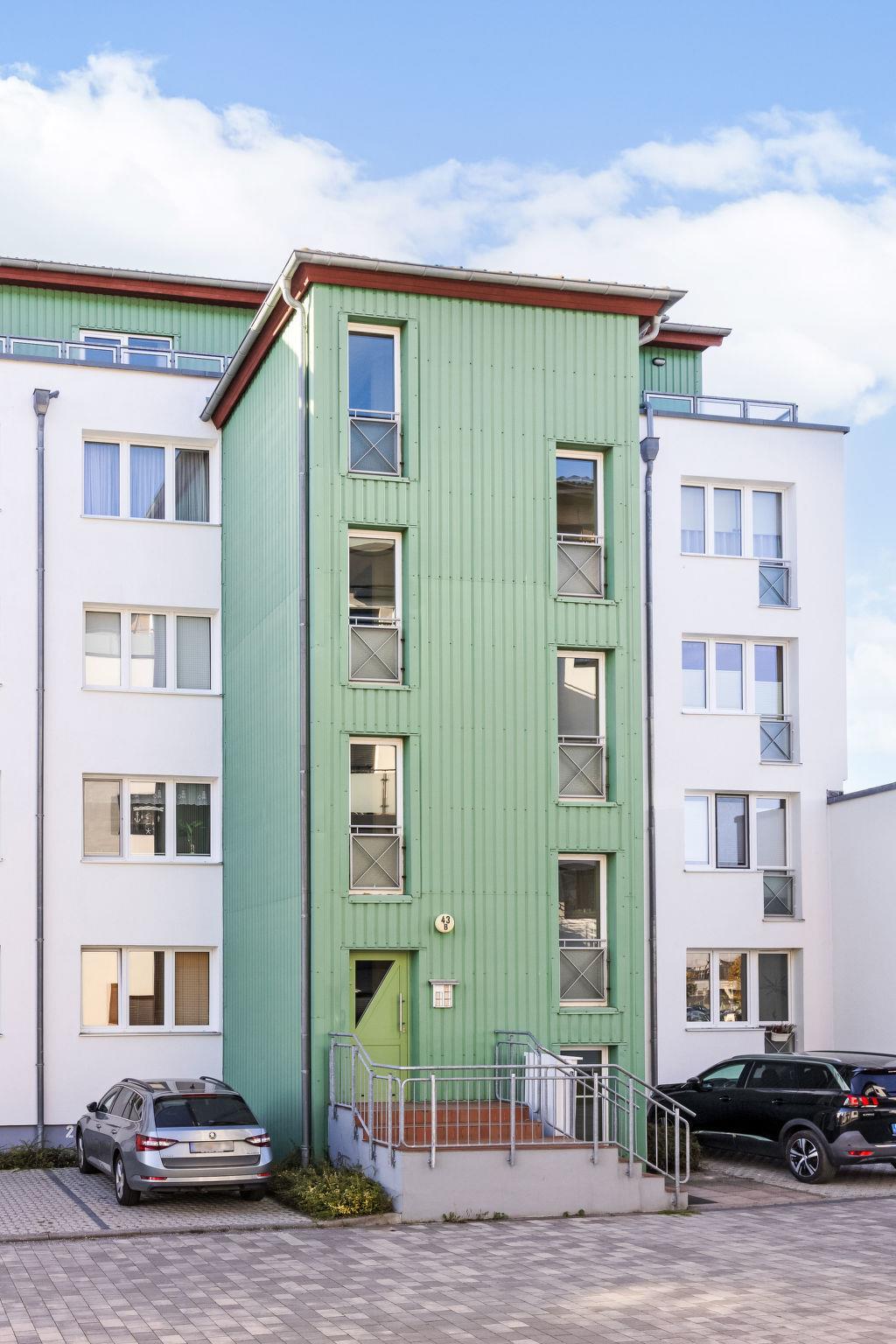 Mehrfamilienhaus auf 4 Stockwerken. Im Ort, 500 m vom Zentrum von Zinnowitz, 100 m vom Meer, 100 m vom Strand. Im Hause: Fahrstuhl, Einstellraum für Fahrräder, Zentralheizung. Parkplatz beim Haus. Supermarkt 650 m, Bäckerei, Café 270 m, Bushaltestelle 180 m, Bahnstation 1 km, Sandstrand 100 m, Thermalbad "Bernsteintherme" 240 m. Jacht-Hafen 2.6 km, Golfplatz (18 Loch) 25 km, Surfschule, Tennis 750 m, Minigolf 240 m. Bitte beachten: Fahrstuhl nur bis 3. Stock.
