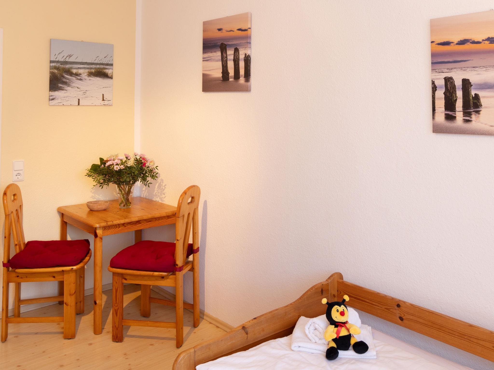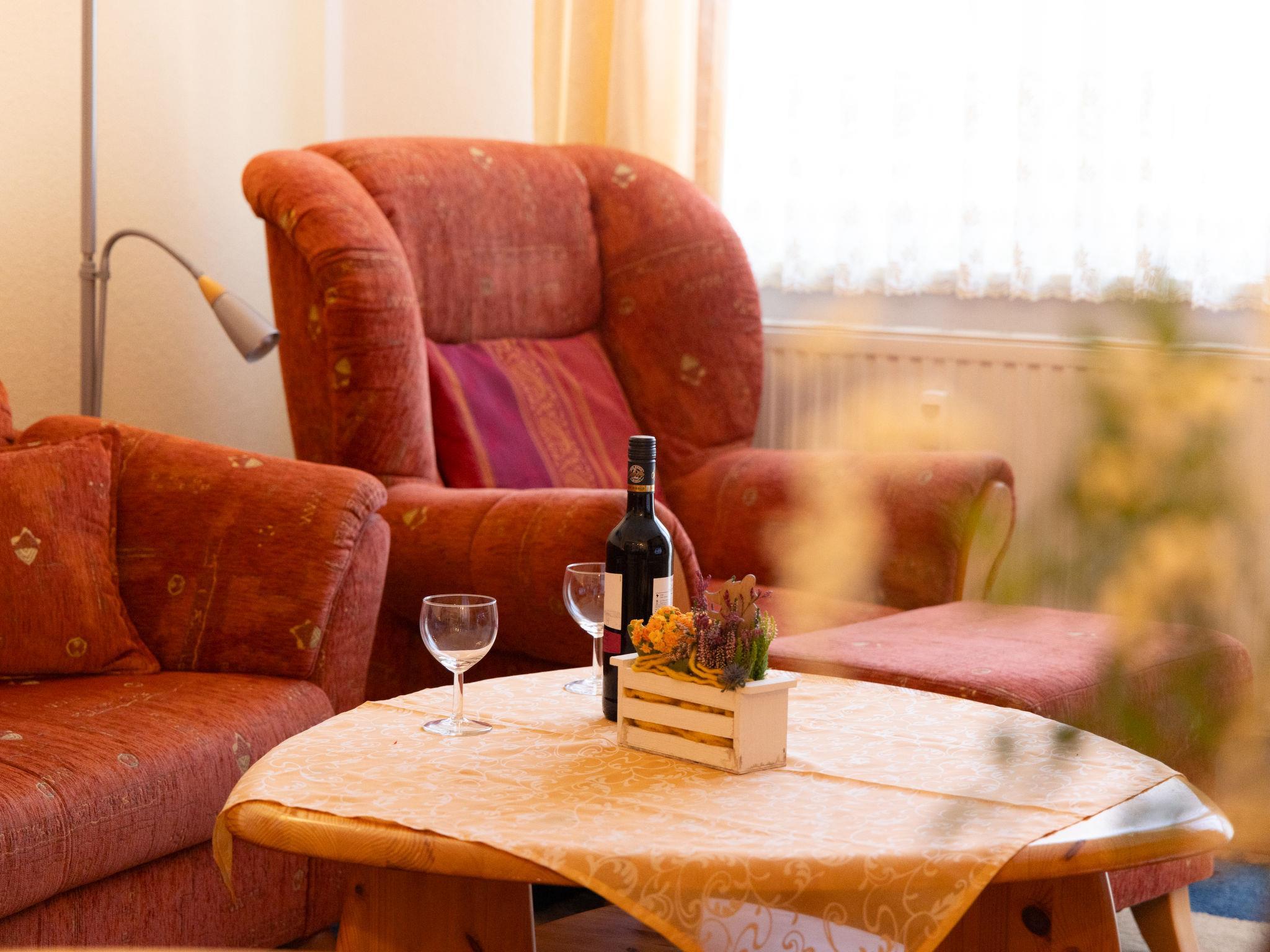 "Wendt", 3-Zimmer-Wohnung 65 m2 im 3. Stock. Gemütlich eingerichtet: Wohn-/Esszimmer mit Kabel-TV (Flachbildschirm), Radio. 1 Zimmer mit 1 Doppelbett. 1 Zimmer mit 2 Betten. Kochnische (Backofen, Geschirrspüler, 4 Glaskeramikplatten, Toaster, Wasserkocher, elektrische Kaffeemaschine). Dusche/WC. Zur Verfügung: Kinderhochstuhl, Babybett. Internet (Wireless LAN, gratis). Bitte beachten: Nichtraucher-Unterkunft. Rauchmelder.