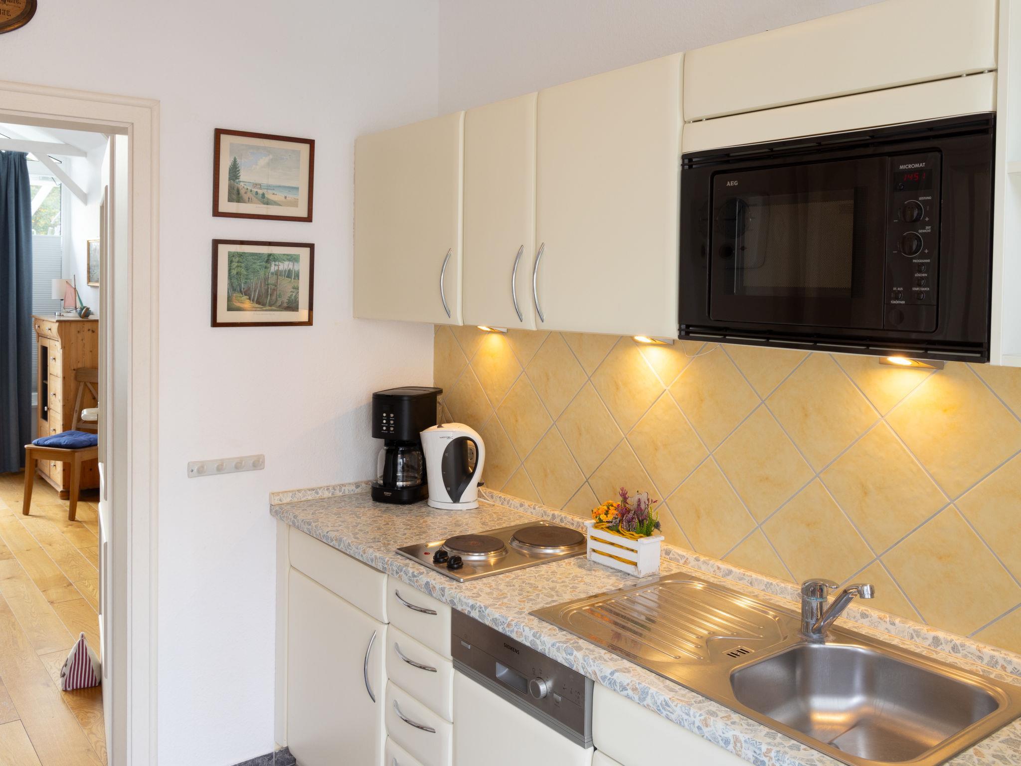 "Luise von Preußen (App.204)", 1-Zimmer-Wohnung 32 m2 im 2. Stock. Wohn-/Schlafzimmer mit 2 Betten und Kabel-TV (Flachbildschirm). Ausgang zum Balkon. Kochnische (2 Kochplatten, Geschirrspüler, Toaster, Wasserkocher, Mikrowelle, elektrische Kaffeemaschine). Dusche/WC. Balkon. Balkonmöbel. Zur Verfügung: Internet (Wireless LAN, gratis). Parkplatz (1 Auto) beim Haus. Bitte beachten: Nichtraucher-Unterkunft. Rauchmelder.