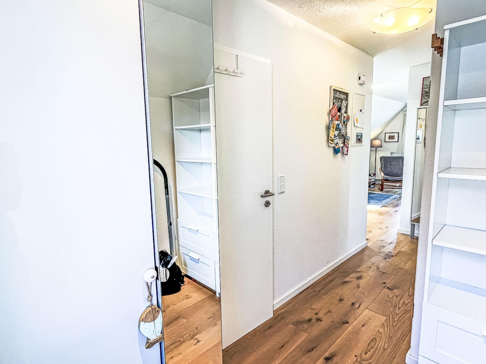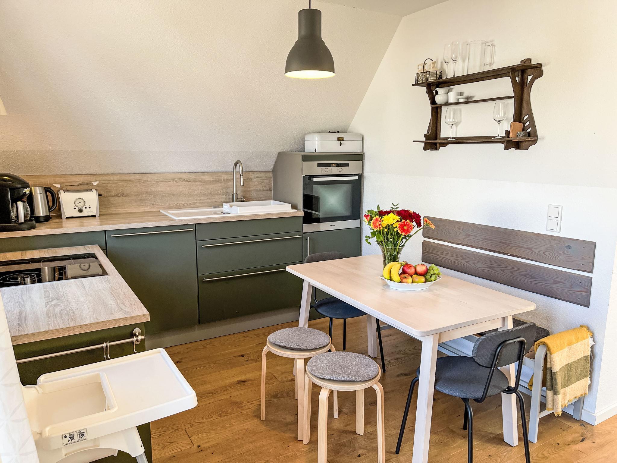 "Obergeschoss", 2-Zimmer-Wohnung 53 m2, im Obergeschoss. Objekt geeignet für 2 Erwachsene + 2 Kinder. Hell, teilweise abgeschrägt, schön eingerichtet: abgeschrägtes, offenes Wohn-/Esszimmer mit 1 Diwanbett (120 cm, Länge 200 cm), TV (Flachbildschirm). 1 Zimmer mit 1 Doppelbett (180 cm, Länge 200 cm). Offene Küche (Backofen, Geschirrspüler, 4 Glaskeramikplatten, Toaster, Wasserkocher, elektrische Kaffeemaschine) mit Esstisch. Dusche/WC. Gartensitzplatz. Terrassenmöbel. Zur Verfügung: Kinderhochstuhl, Babybett, Haartrockner. Internet (Wireless LAN, gratis). Bitte beachten: geeignet für Familien. Nichtraucher-Unterkunft. Rauchmelder.