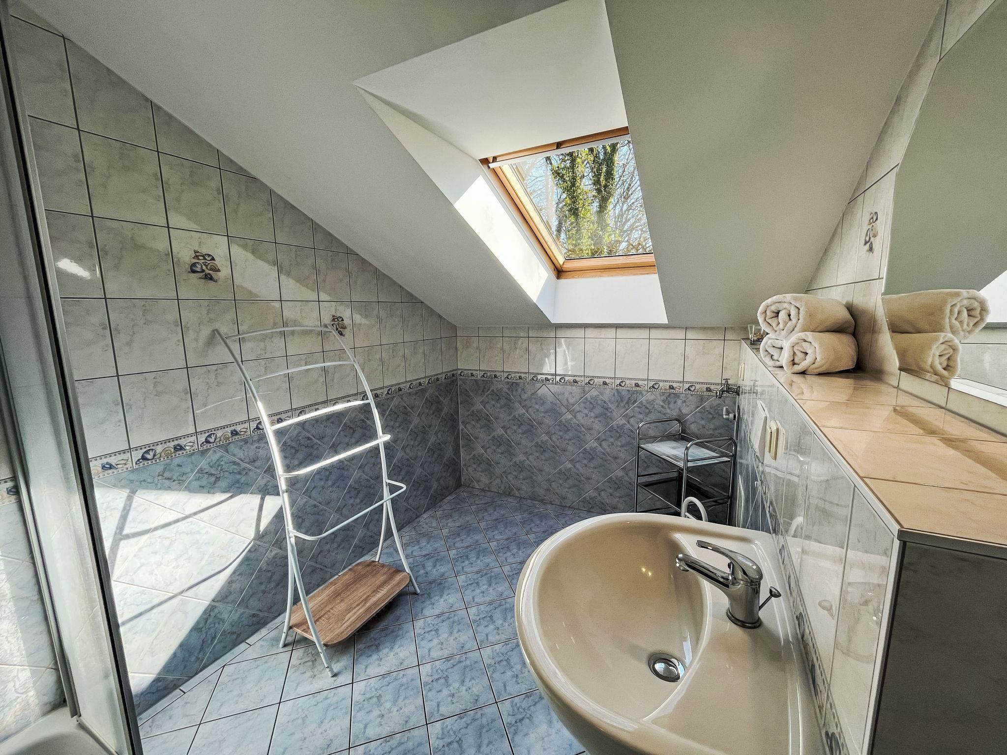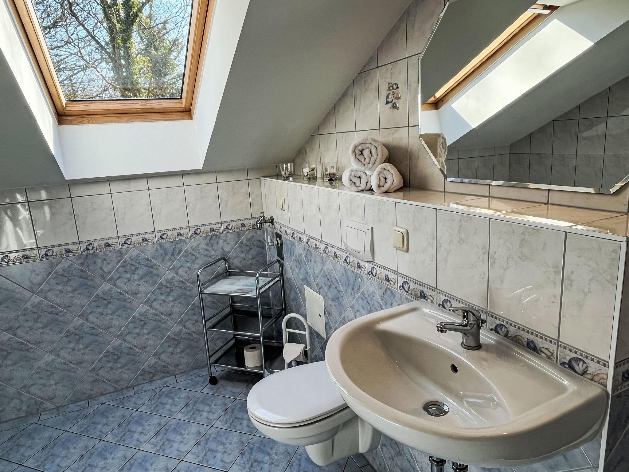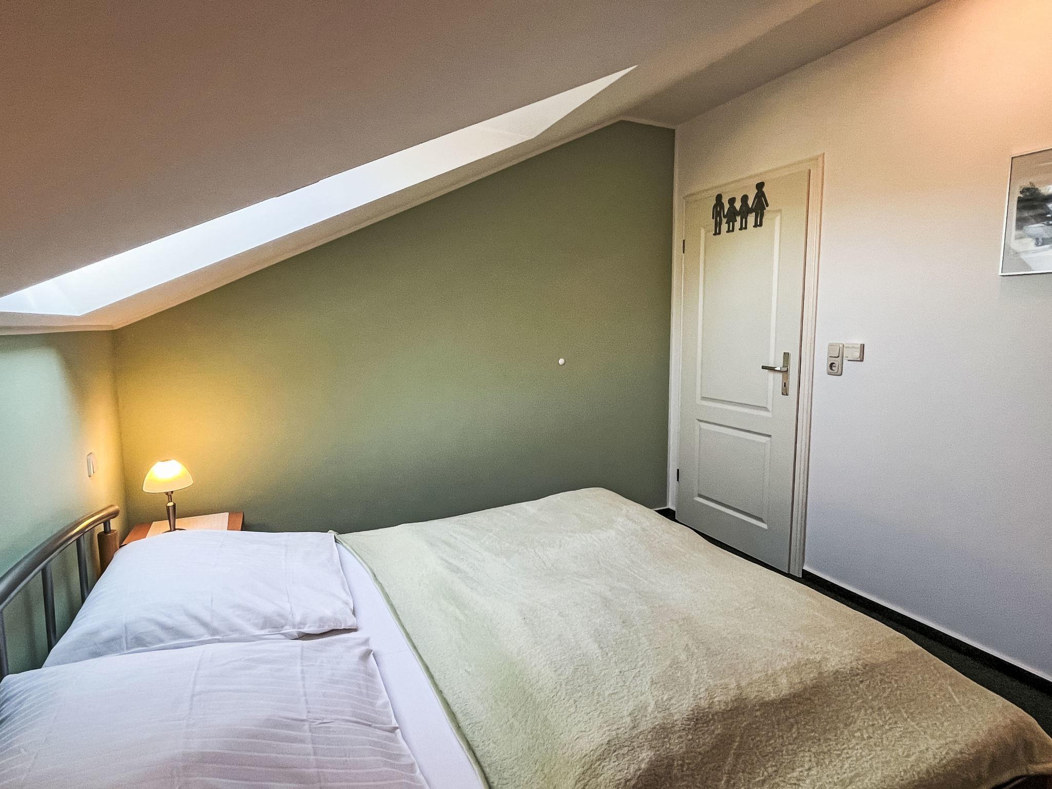"Zaunkönig", 2-Zimmer-Wohnung 50 m2, im Dachgeschoss. Abgeschrägt, gemütlich eingerichtet: Wohn-/Esszimmer mit 1 Doppeldiwanbett und Kabel-TV (Flachbildschirm), Radio. 1 Zimmer mit 1 Doppelbett. Kochnische (Geschirrspüler, 4 Glaskeramikplatten, Toaster, Wasserkocher, Mikrowelle, elektrische Kaffeemaschine). Dusche/WC. Zur Verfügung: Kinderhochstuhl, Babybett. Parkplatz (1 Auto) beim Haus. Bitte beachten: Nichtraucher-Unterkunft. Rauchmelder.