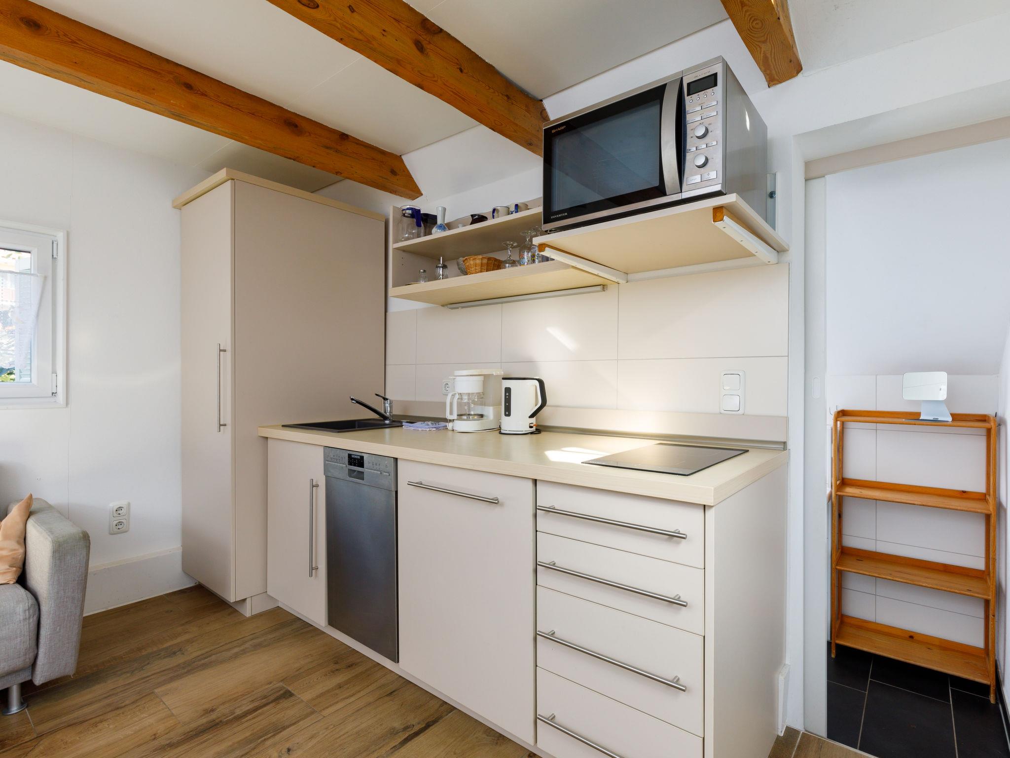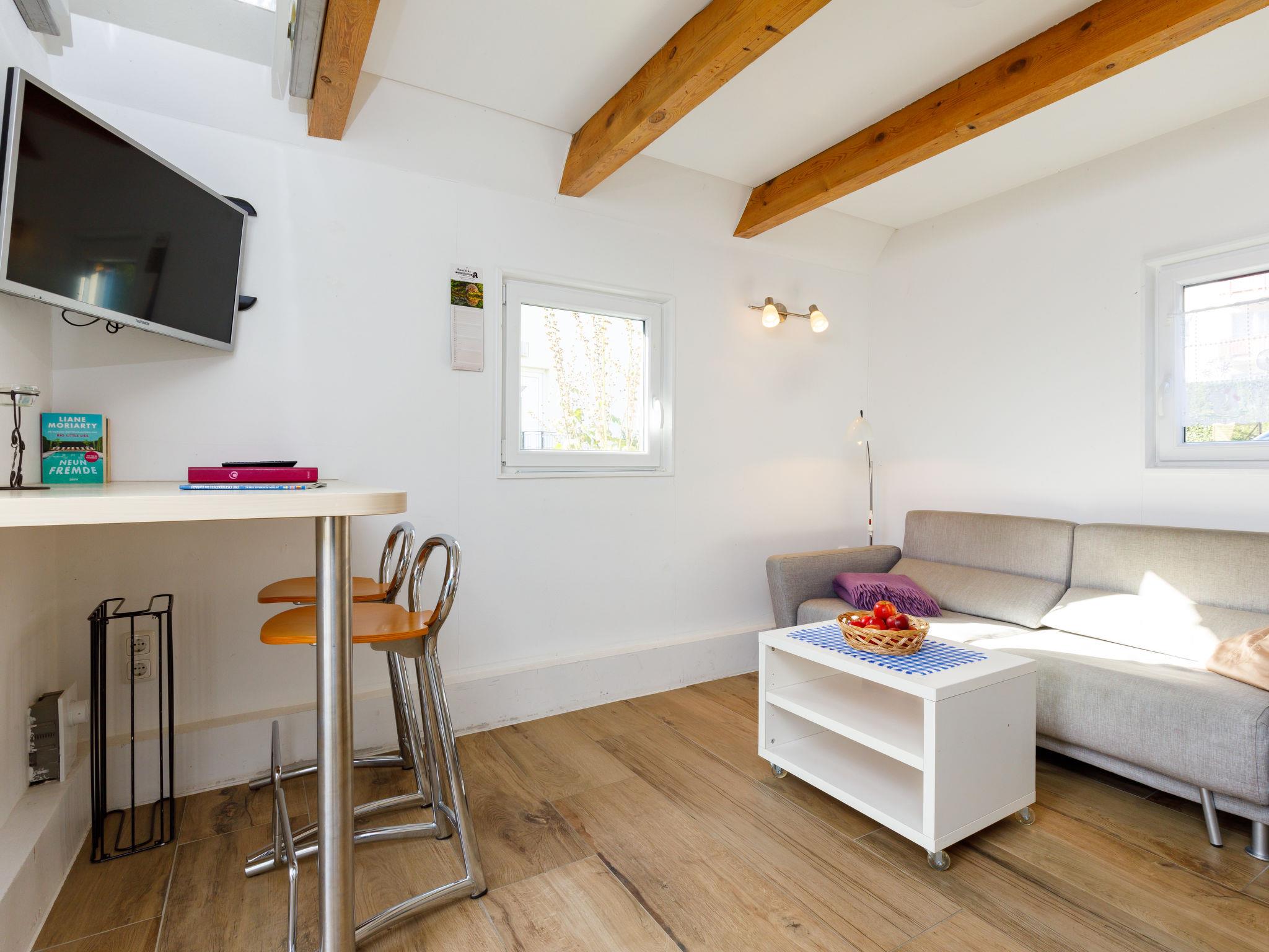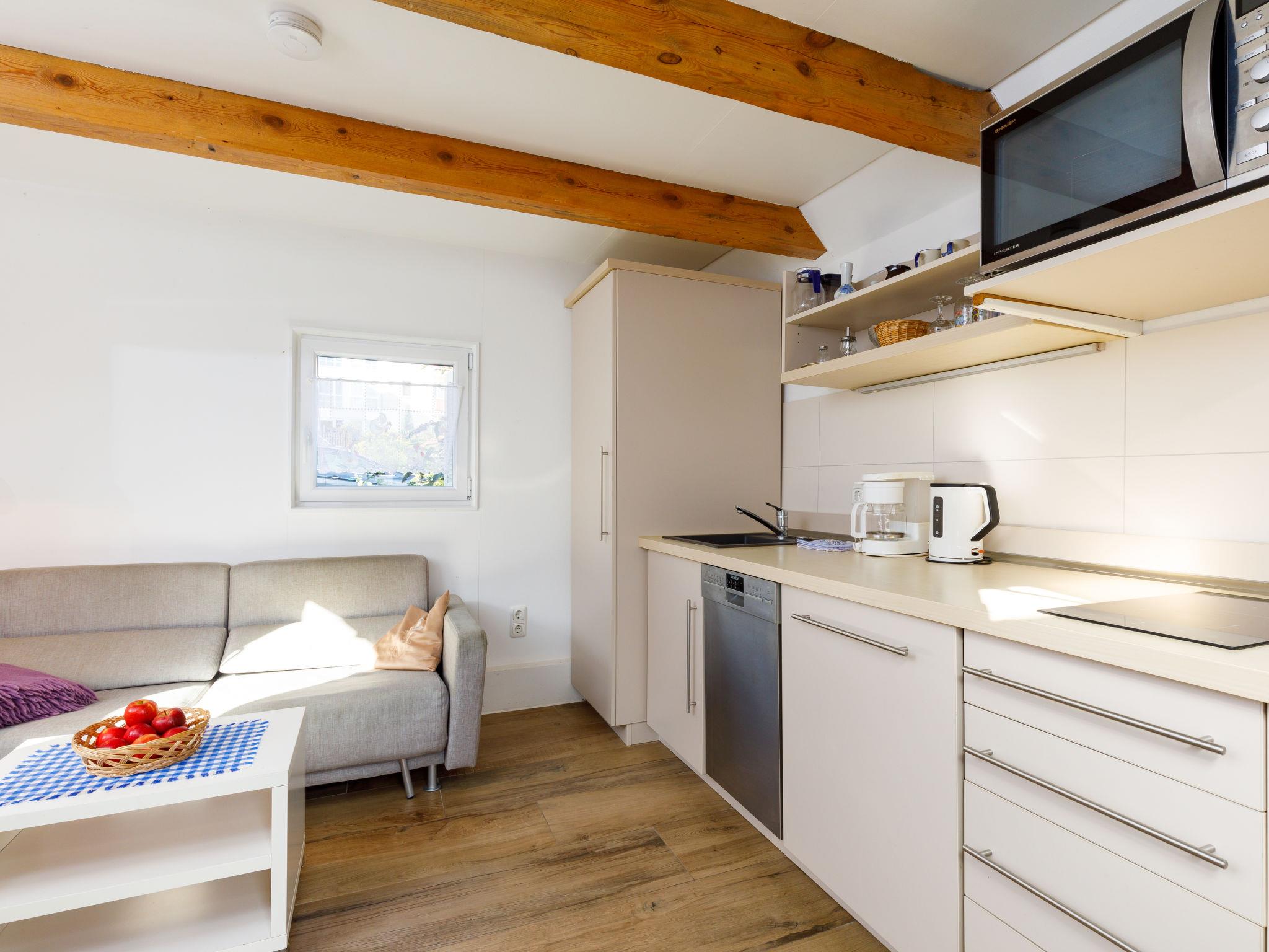 "Hexenhäuschen", 1-Zimmer-Haus 26 m2, im Erdgeschoss. Zweckmässig und rustikal eingerichtet: Wohn-/Esszimmer mit 1 Doppeldiwanbett und Sat-TV (Flachbildschirm). Ausgang zur Terrasse. Offene Küche (Geschirrspüler, 2 Induktionskochplatten, Toaster, Wasserkocher, Mikrowelle, elektrische Kaffeemaschine). Dusche/WC. Dachgeschoss: (Leiter) abgeschrägte, offene Schlafnische mit 1 Doppelbett. Terrasse. Terrassenmöbel. Zur Verfügung: Kinderhochstuhl, Babybett. Internet (WLAN, gratis). Parkplatz (1 Auto) beim Haus. Bitte beachten: Nichtraucher-Haus. Rauchmelder. Anstelle eines abgeschlossenen Schlafzimmers befinden sich manche Schlafplätze in einem offenen Bereich (Galerie, Nische etc.).