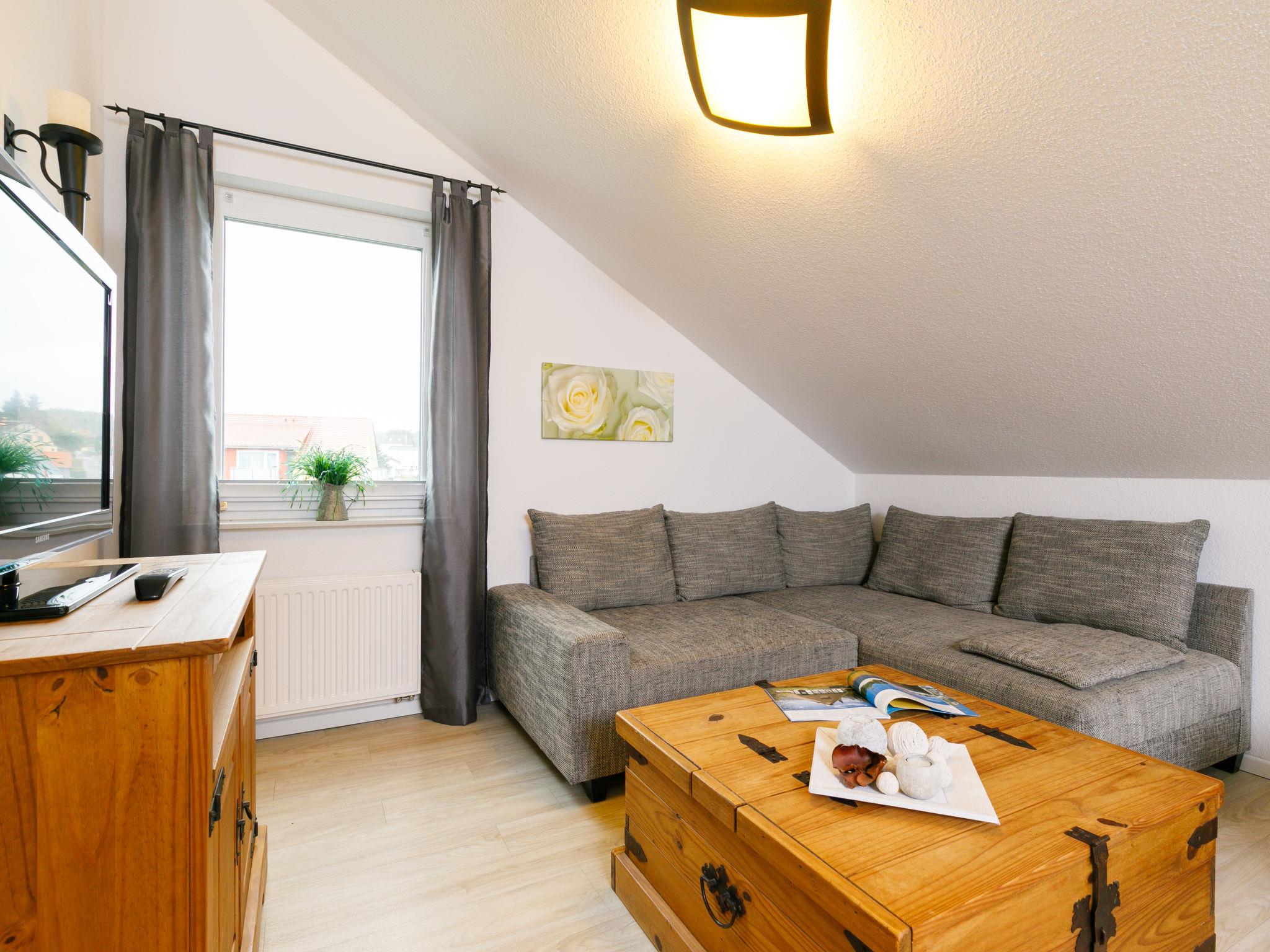 Gemütliche 2-Zimmer-Dachgeschosswohnung "Rollmops" mit Balkon und WLAN in Zinnowitz, nur 1 km vom Strand entfernt.