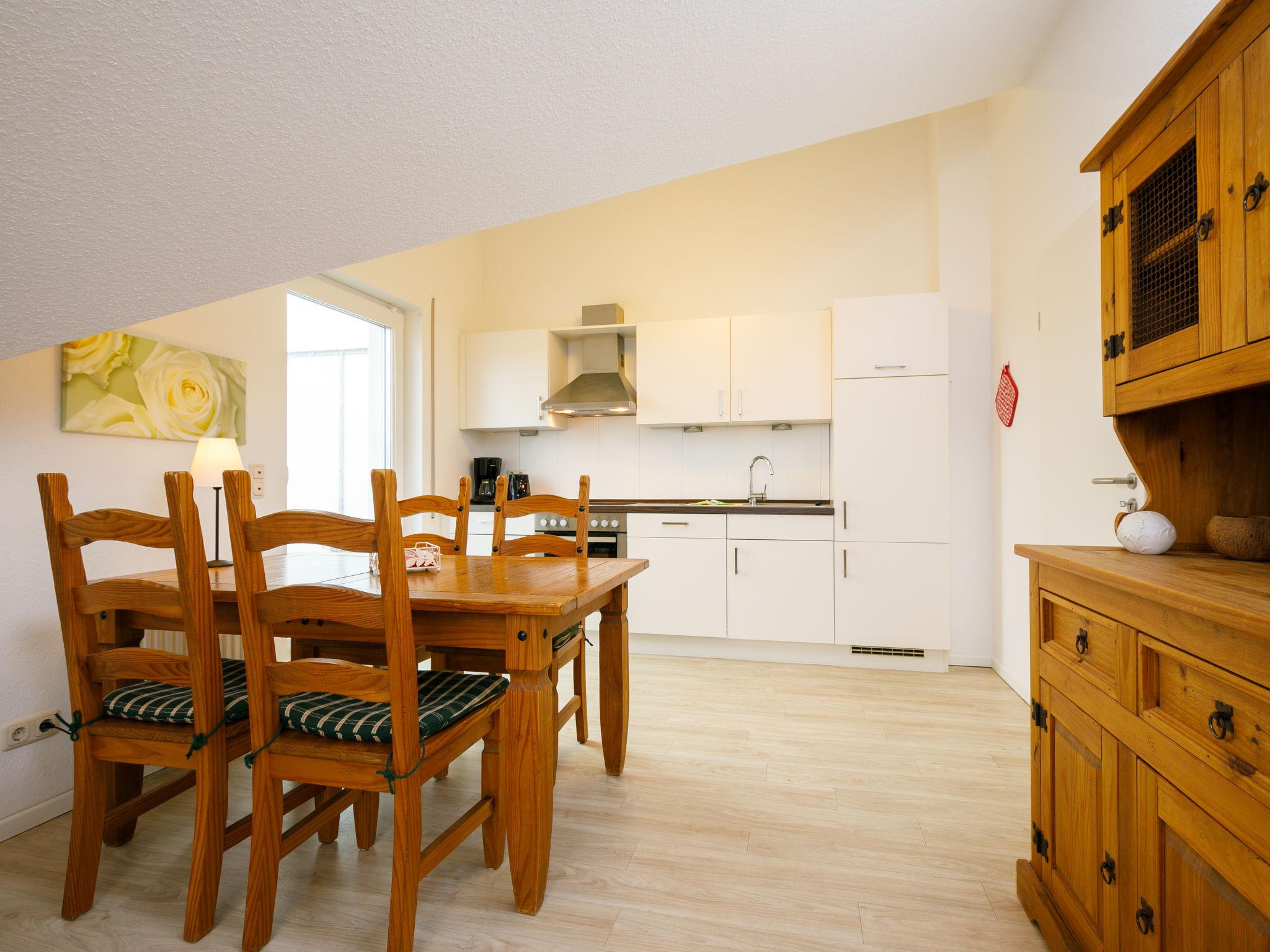 "Rollmops", 2-Zimmer-Wohnung 59 m2, im Dachgeschoss. Abgeschrägt: Wohn-/Esszimmer mit Kabel-TV (Flachbildschirm), Radio. Ausgang zum Balkon. 1 Zimmer mit 1 Doppelbett. Kochnische (Backofen, Geschirrspüler, 4 Glaskeramikplatten, Toaster, Wasserkocher, elektrische Kaffeemaschine). Dusche/WC. Balkon. Balkonmöbel. Zur Verfügung: Internet (Wireless LAN, gratis). Parkplatz (1 Auto) beim Haus. Bitte beachten: Nichtraucher-Unterkunft. Rauchmelder.