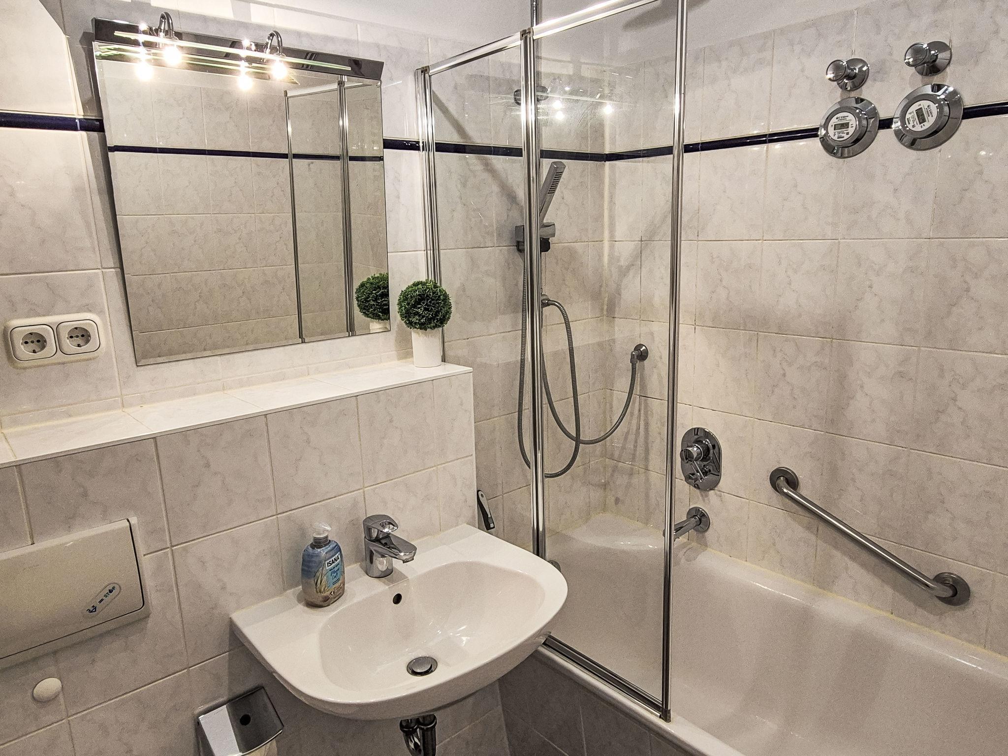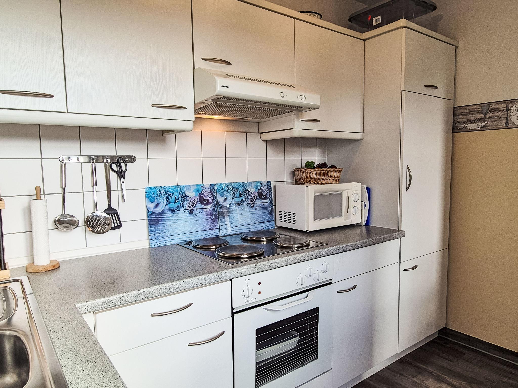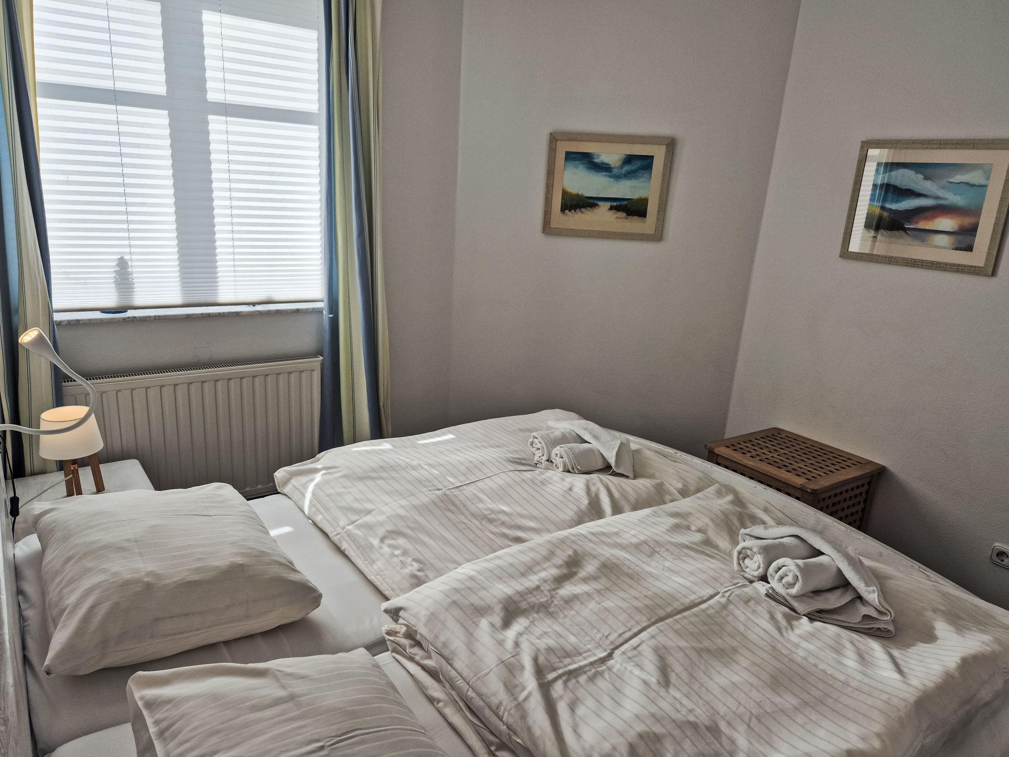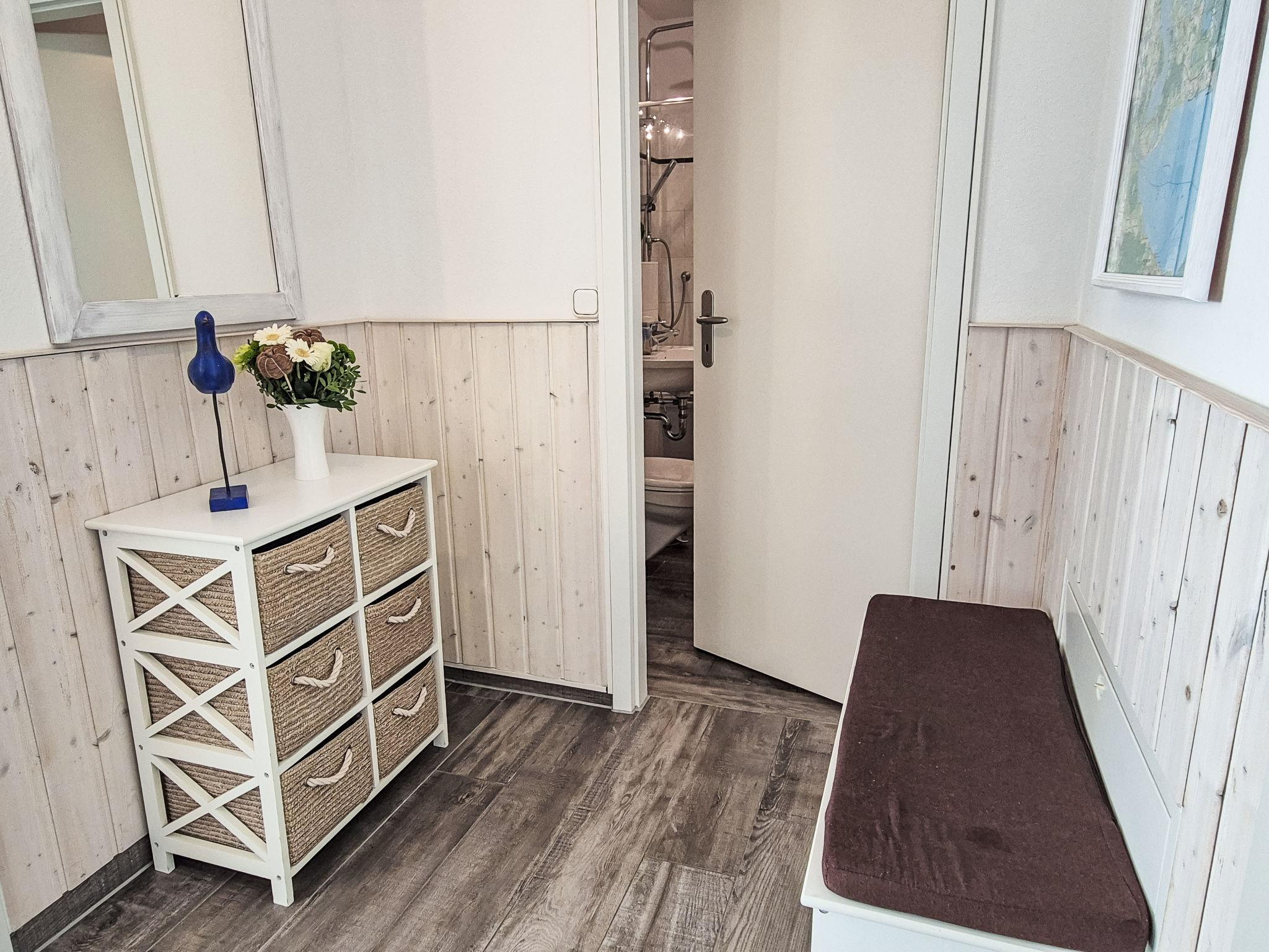 "App.24 Residenz Bellevue", 2-Zimmer-Wohnung 55 m2, im Erdgeschoss. Objekt geeignet für 2 Erwachsene + 2 Kinder. Geräumig und hell, schön und geschmackvoll eingerichtet: Wohn-/Esszimmer mit 1 Doppeldiwanbett, Kabel-TV und Radio. Ausgang zur Terrasse. 1 Zimmer mit 1 Doppelbett. Küche (4 Kochplatten, Backofen, Geschirrspüler, Toaster, Wasserkocher, Mikrowelle, elektrische Kaffeemaschine). Bad/Dusche/WC. Terrasse. Terrassenmöbel. Zur Verfügung: Kinderhochstuhl, Babybett. Internet (WLAN, gratis). Bitte beachten: Nichtraucher-Unterkunft. Rauchmelder.