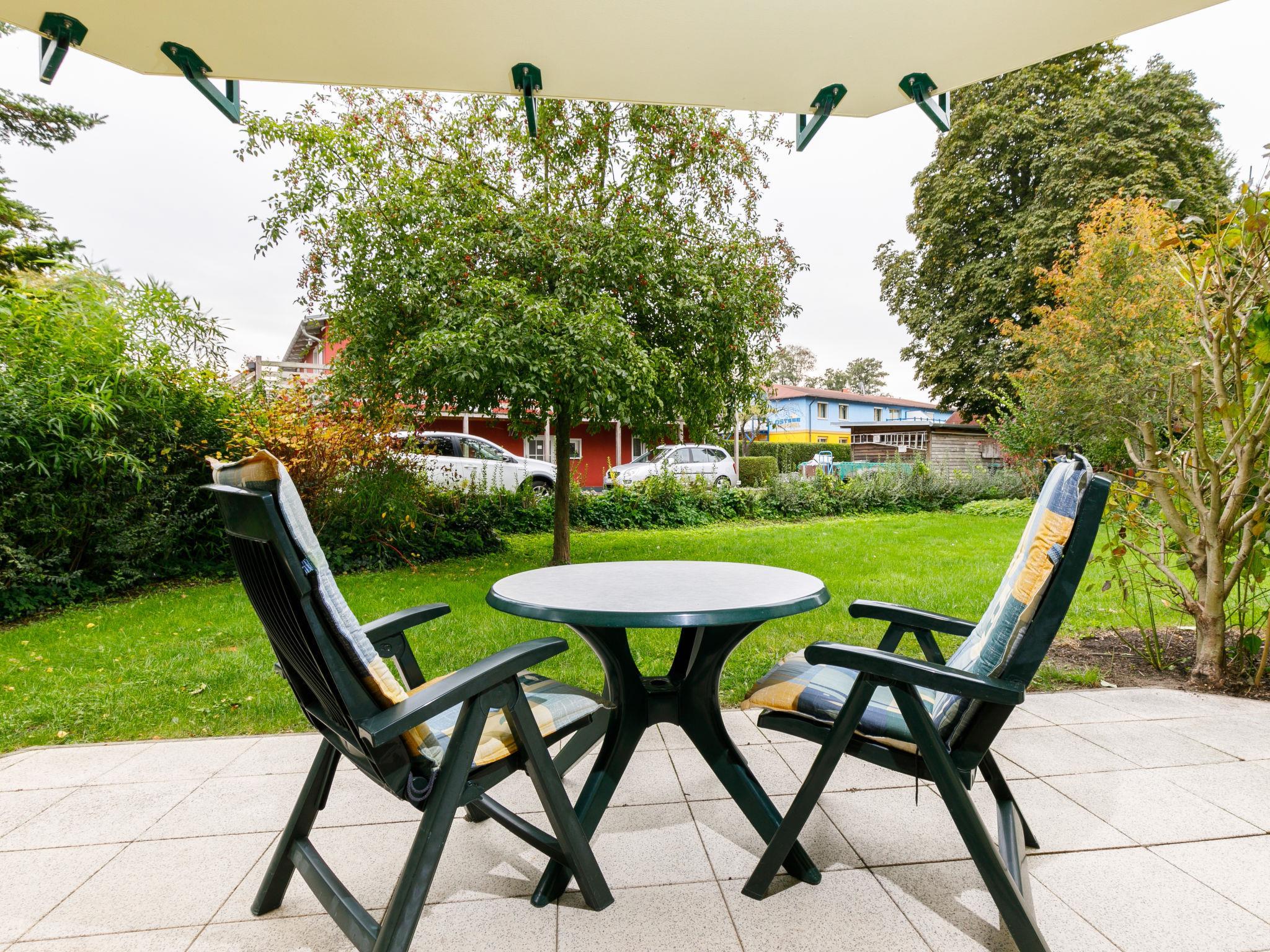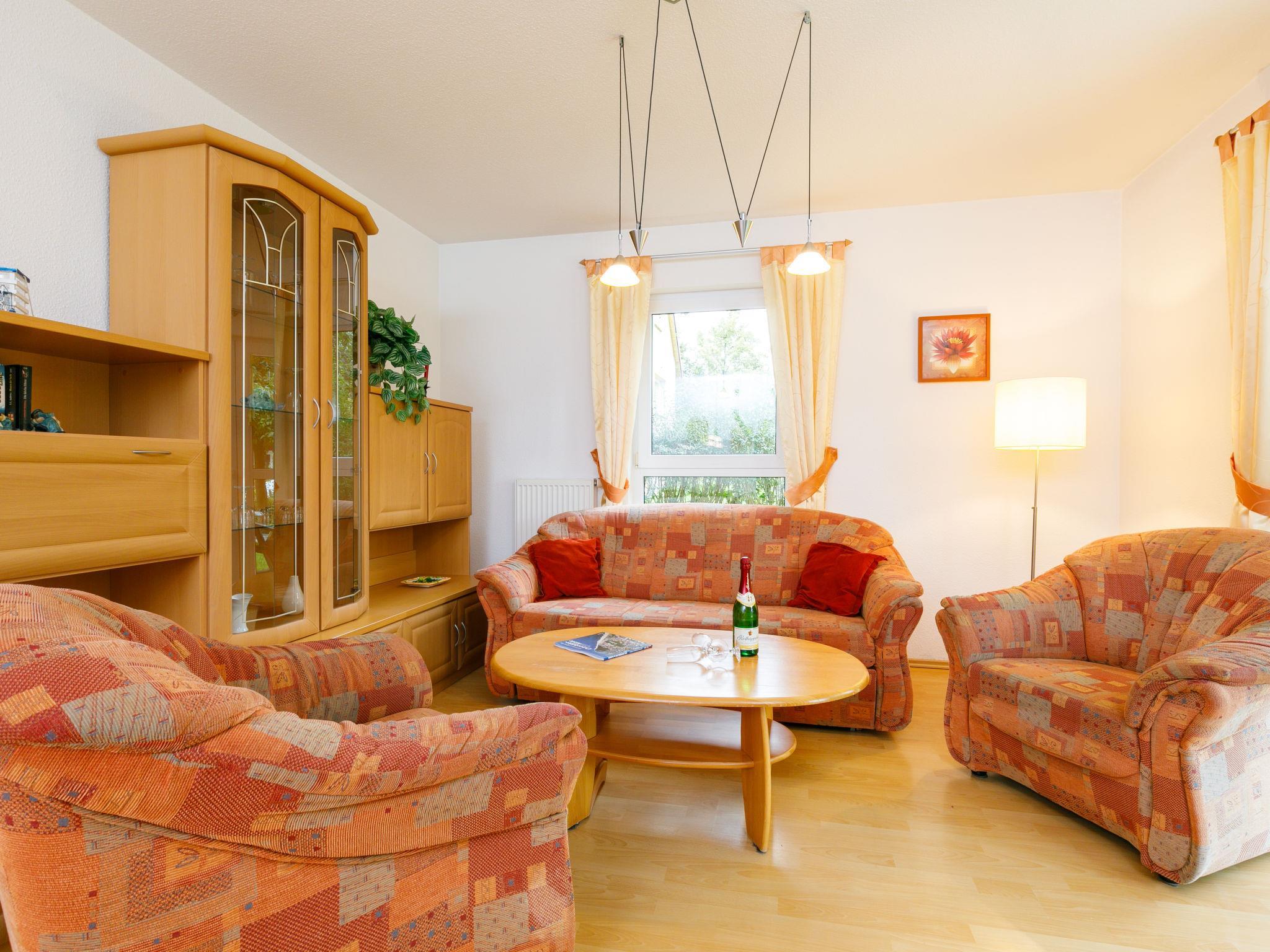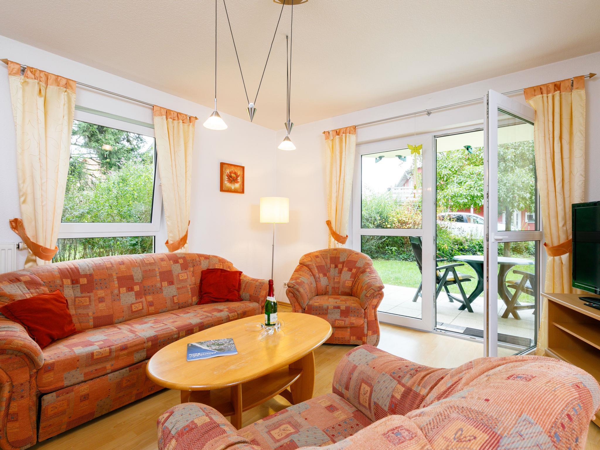 "Ostseetrio App.2", 2-Zimmer-Wohnung 60 m2, im Erdgeschoss. Hell, geschmackvoll eingerichtet: Wohn-/Esszimmer mit 1 Diwanbett (140 cm, Länge 200 cm), Kabel-TV (Flachbildschirm), Radio. Ausgang zur Terrasse. 1 Zimmer mit 1 Doppelbett. Offene Küche (Backofen, Geschirrspüler, 4 Glaskeramikplatten, Toaster, Wasserkocher, Mikrowelle, elektrische Kaffeemaschine). Dusche/WC. Terrasse. Terrassenmöbel. Zur Verfügung: Kinderhochstuhl, Babybett. Internet (Wireless LAN, gratis). Parkplatz (1 Auto). Bitte beachten: Nichtraucher-Unterkunft. Rauchmelder.