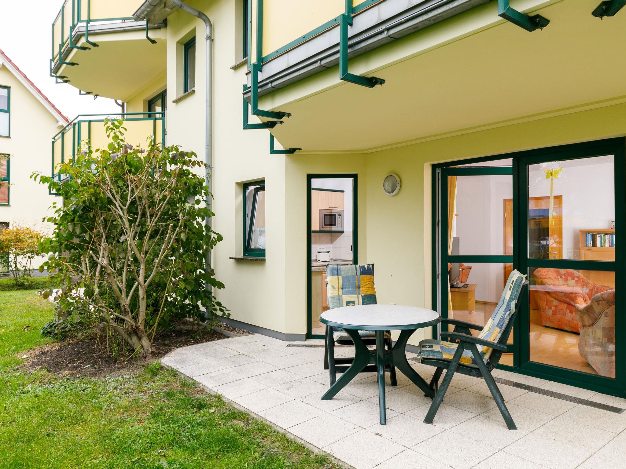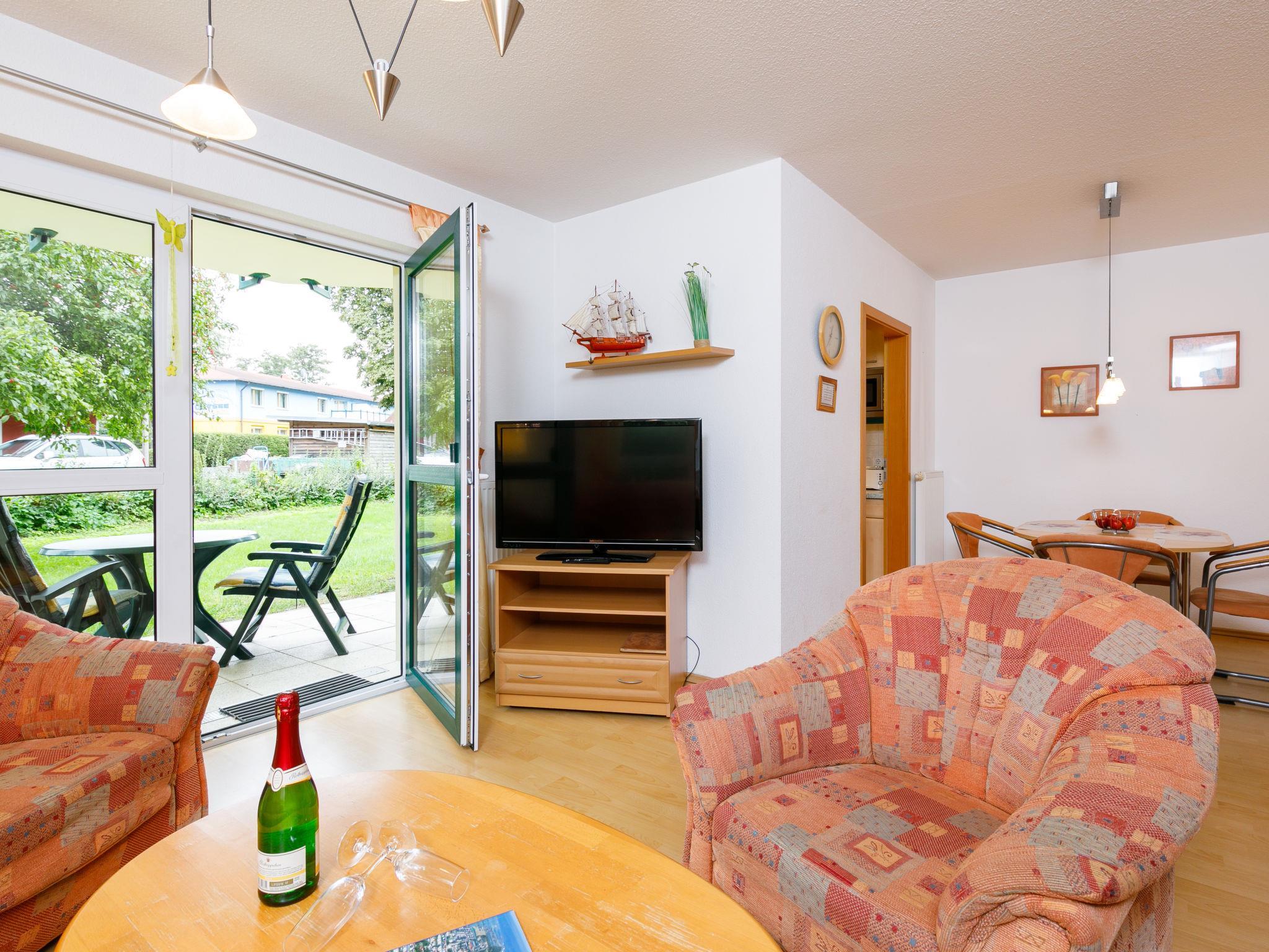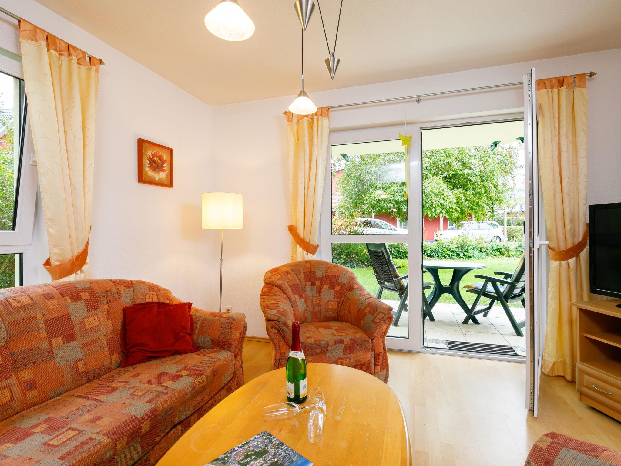"Ostseetrio App.2", 2-Zimmer-Wohnung 60 m2, im Erdgeschoss. Hell, geschmackvoll eingerichtet: Wohn-/Esszimmer mit 1 Diwanbett (140 cm, Länge 200 cm), Kabel-TV (Flachbildschirm), Radio. Ausgang zur Terrasse. 1 Zimmer mit 1 Doppelbett. Offene Küche (Backofen, Geschirrspüler, 4 Glaskeramikplatten, Toaster, Wasserkocher, Mikrowelle, elektrische Kaffeemaschine). Dusche/WC. Terrasse. Terrassenmöbel. Zur Verfügung: Kinderhochstuhl, Babybett. Internet (Wireless LAN, gratis). Parkplatz (1 Auto). Bitte beachten: Nichtraucher-Unterkunft. Rauchmelder.