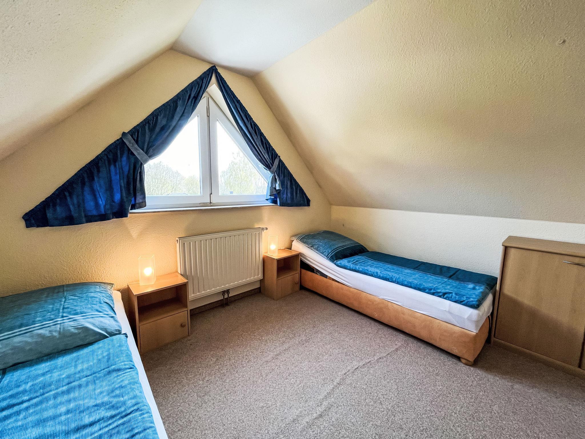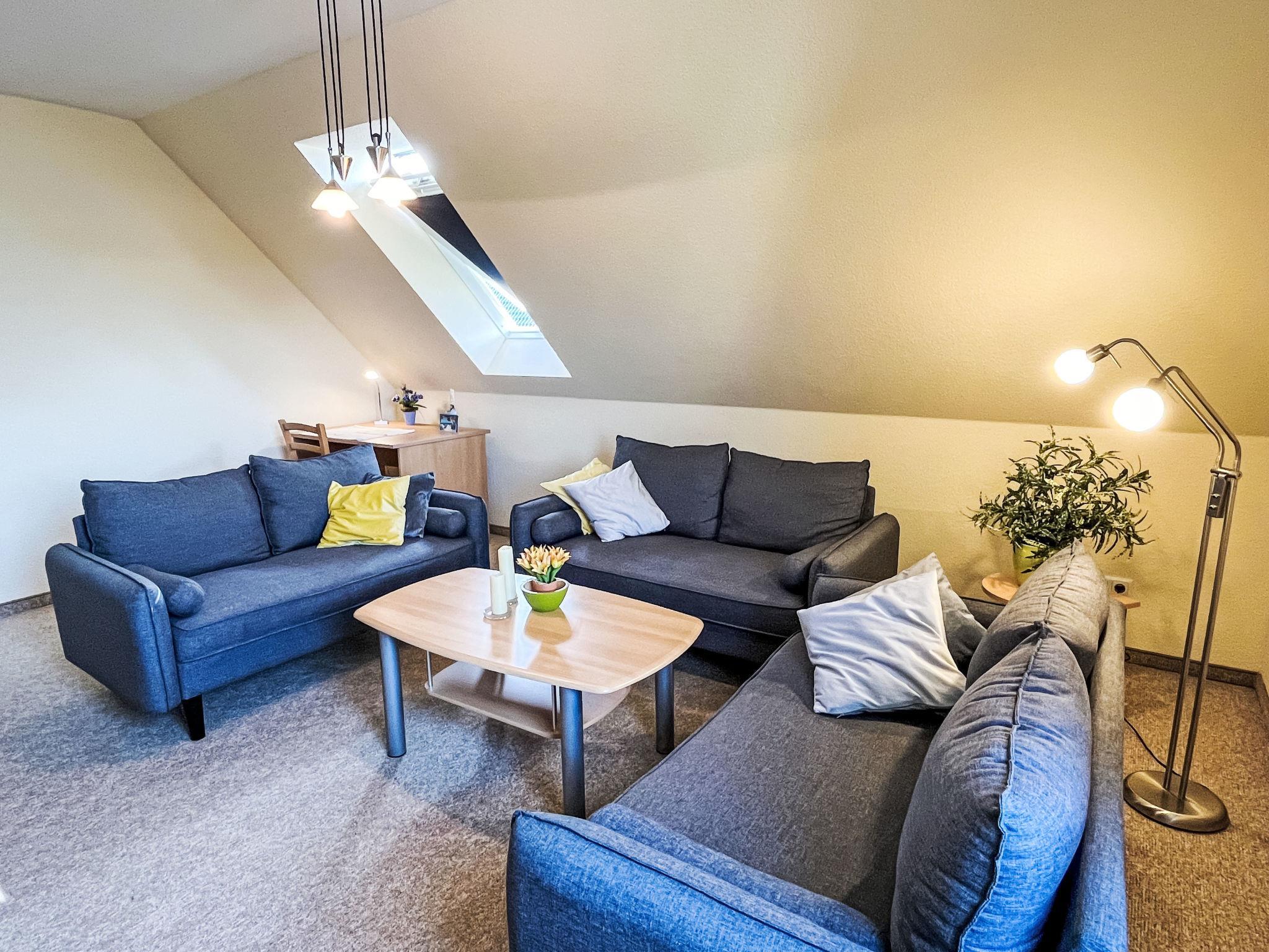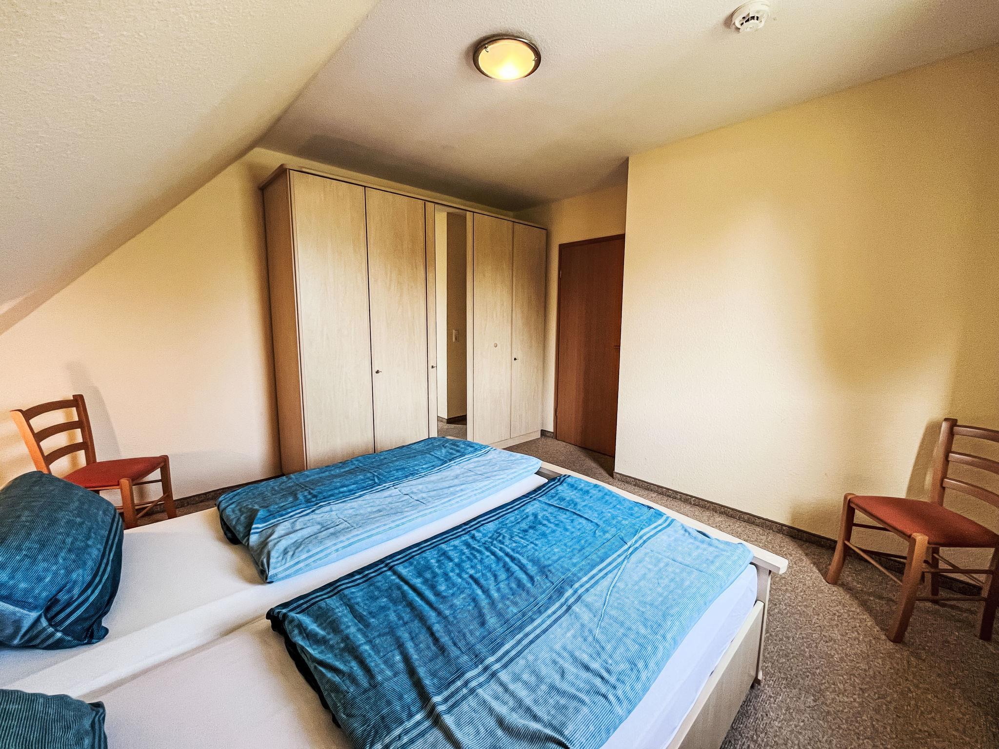 "Sandbank", 4-Zimmer-Wohnung 97 m2 auf 2 Stockwerken im 1. Stock. Gemütlich eingerichtet: abgeschrägtes Wohnzimmer mit Kabel-TV (Flachbildschirm), Radio. 1 abgeschrägtes Zimmer mit 1 Doppelbett. Offene Küche (Backofen, Geschirrspüler, 4 Glaskeramikplatten, Toaster, Wasserkocher, Mikrowelle, elektrische Kaffeemaschine) mit Esstisch. 2 Duschen/WC. Dachgeschoss: (steile Treppe) 1 abgeschrägtes Zimmer mit 1 Doppelbett und Kabel-TV (Flachbildschirm). 1 abgeschrägtes Zimmer mit 2 Betten. Heizung. Gartensitzplatz. Terrassenmöbel, Gartengrill (mobil). Zur Verfügung: Kinderhochstuhl, Babybett. Parkplatz (2 Autos) beim Haus. Bitte beachten: Nichtraucher-Unterkunft. Rauchmelder.
