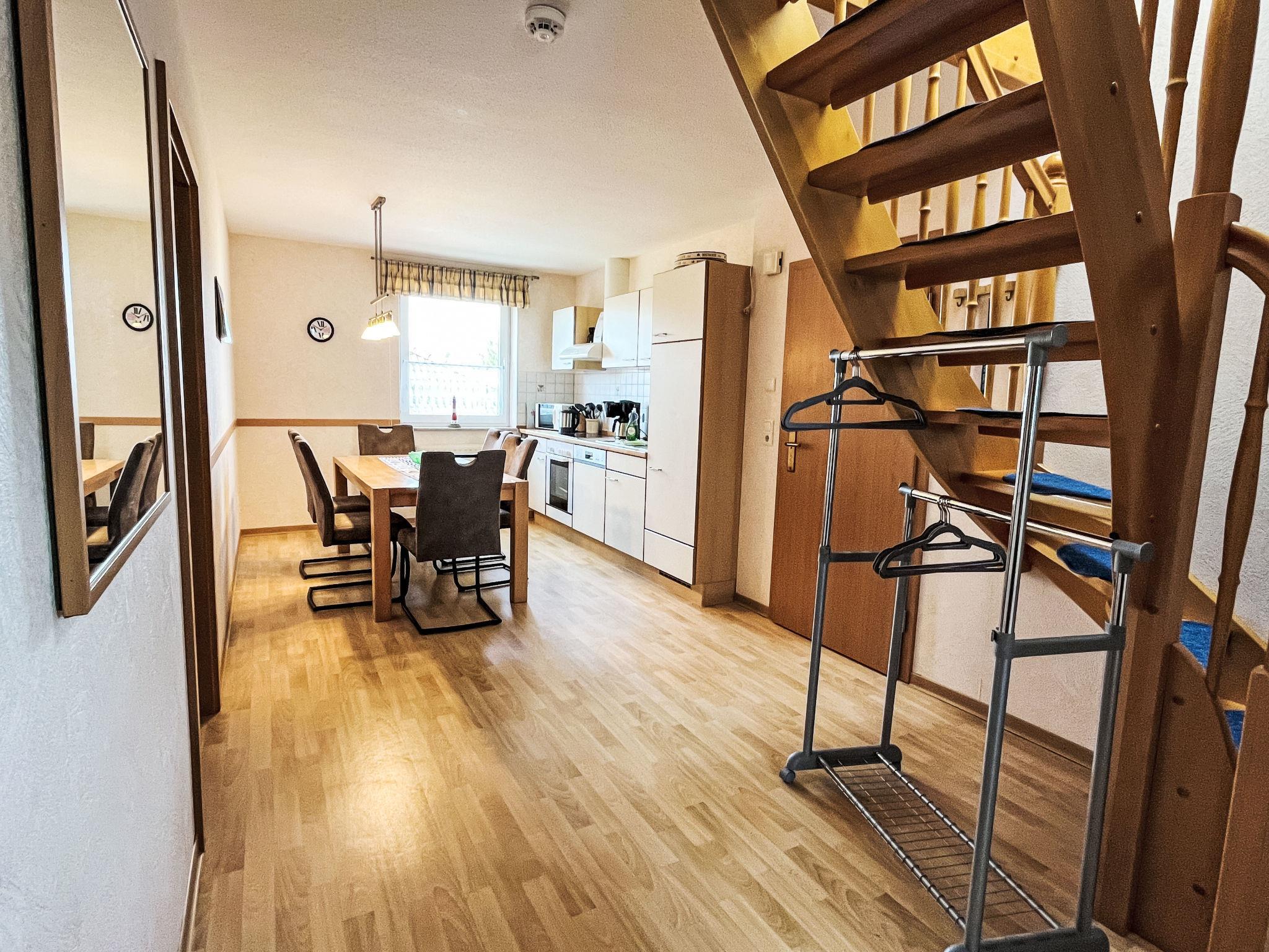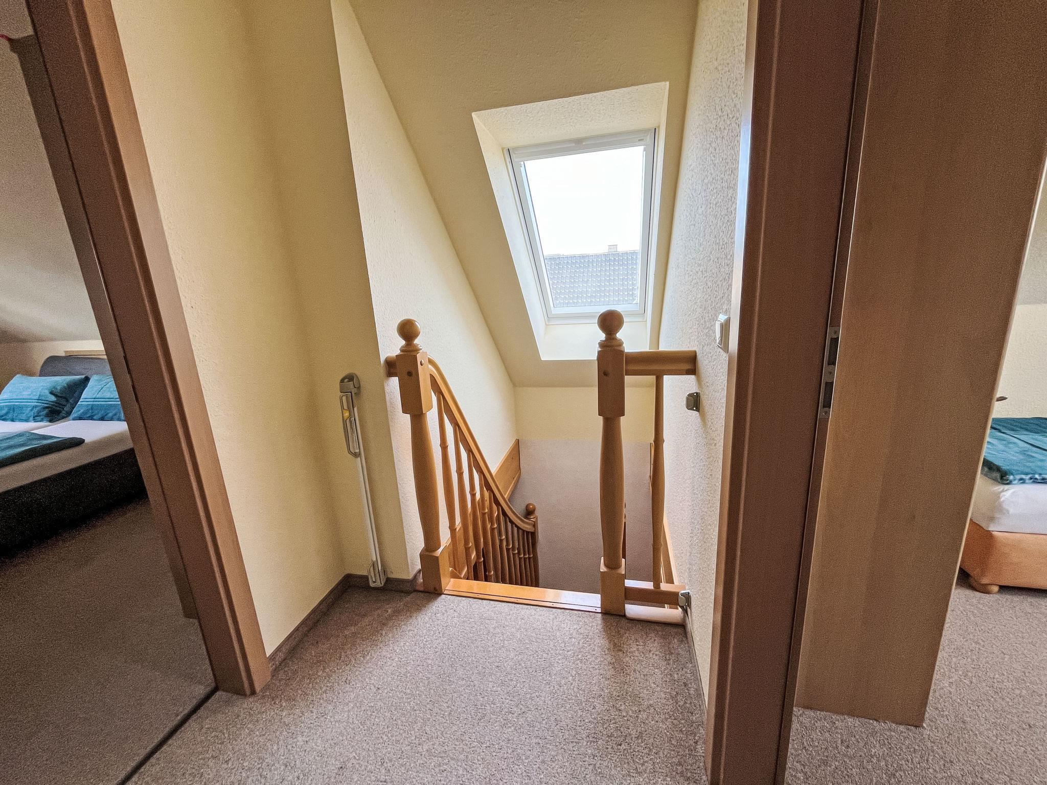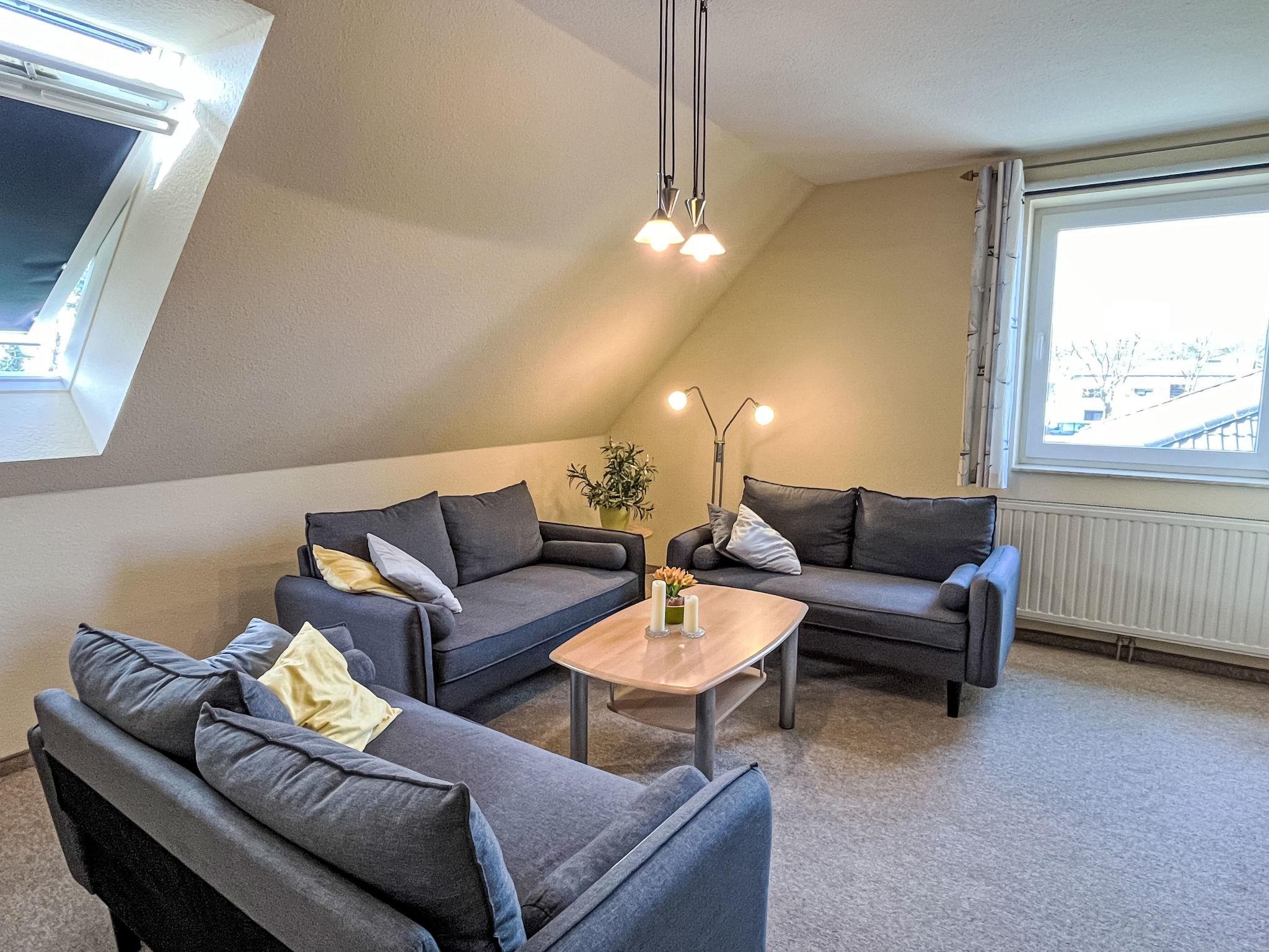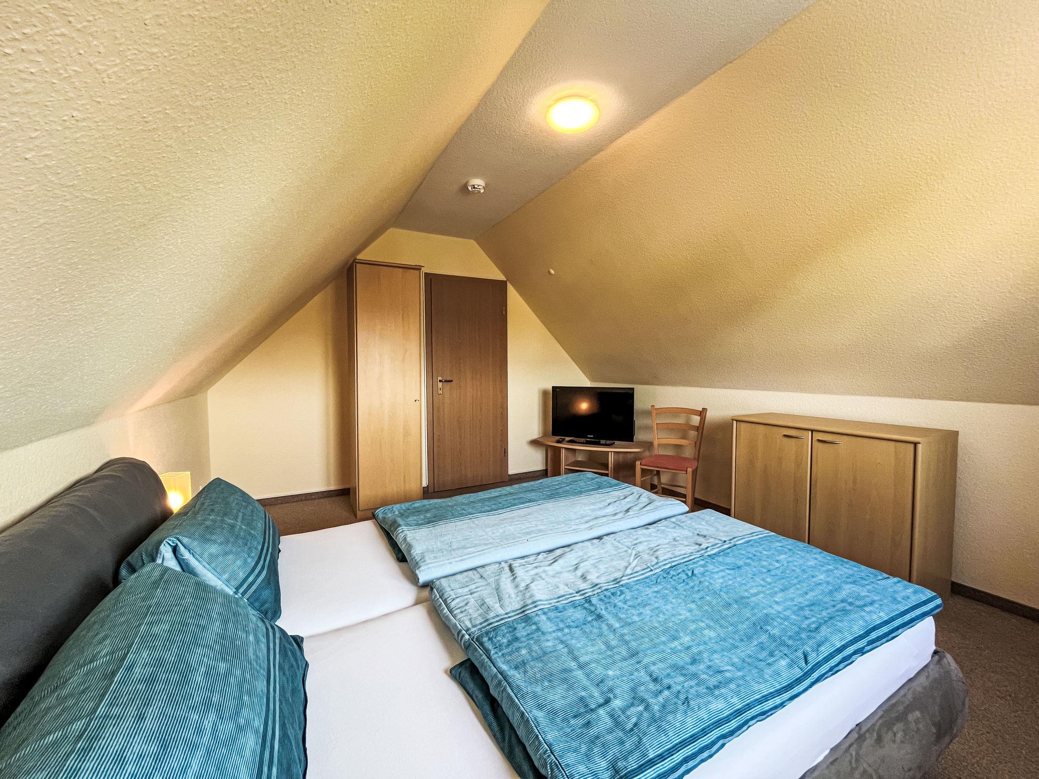 "Sandbank", 4-Zimmer-Wohnung 97 m2 auf 2 Stockwerken im 1. Stock. Gemütlich eingerichtet: abgeschrägtes Wohnzimmer mit Kabel-TV (Flachbildschirm), Radio. 1 abgeschrägtes Zimmer mit 1 Doppelbett. Offene Küche (Backofen, Geschirrspüler, 4 Glaskeramikplatten, Toaster, Wasserkocher, Mikrowelle, elektrische Kaffeemaschine) mit Esstisch. 2 Duschen/WC. Dachgeschoss: (steile Treppe) 1 abgeschrägtes Zimmer mit 1 Doppelbett und Kabel-TV (Flachbildschirm). 1 abgeschrägtes Zimmer mit 2 Betten. Heizung. Gartensitzplatz. Terrassenmöbel, Gartengrill (mobil). Zur Verfügung: Kinderhochstuhl, Babybett. Parkplatz (2 Autos) beim Haus. Bitte beachten: Nichtraucher-Unterkunft. Rauchmelder.