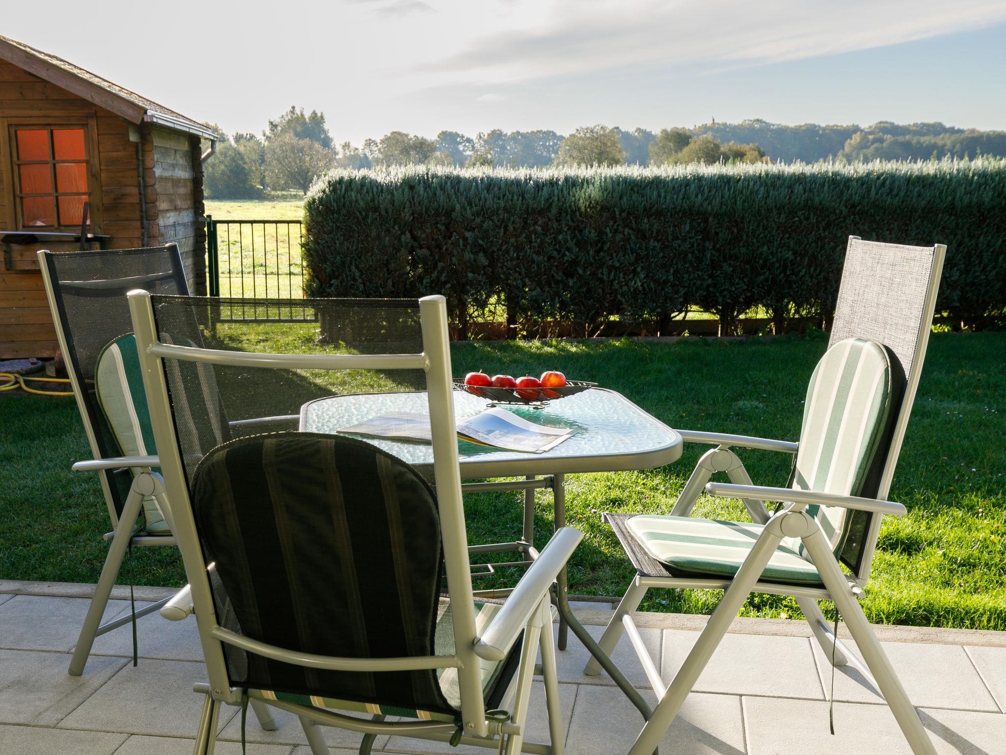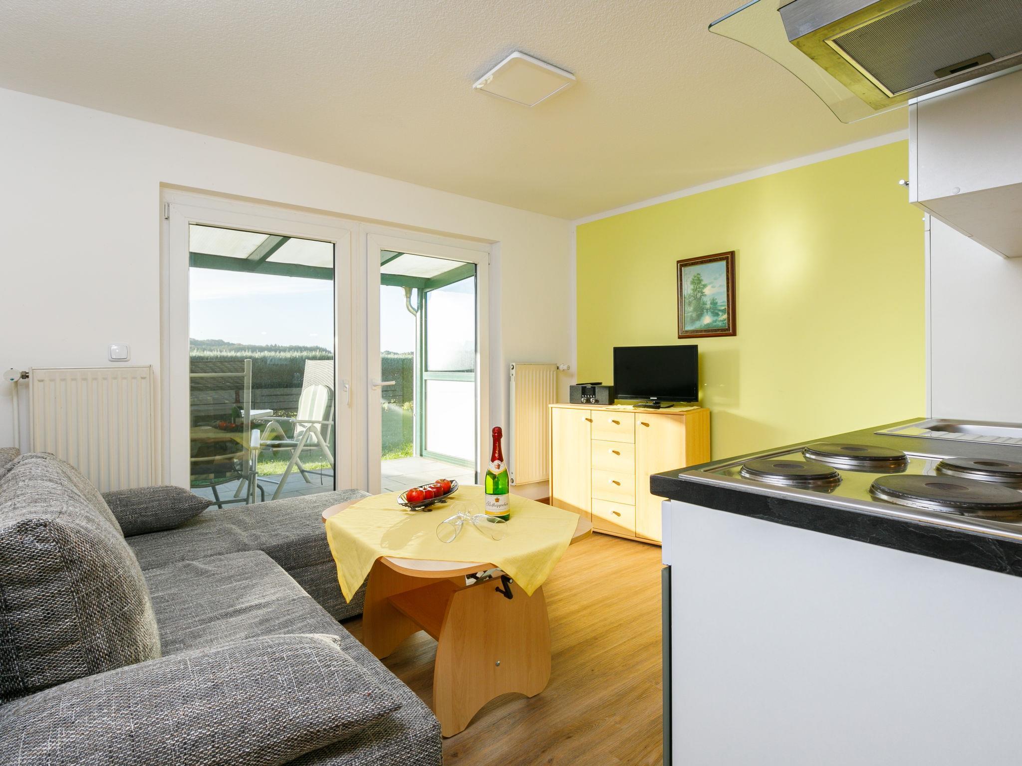 2-Zimmer-Bungalow 36 m2, im Erdgeschoss. Objekt geeignet für 2 Erwachsene + 1 Kind. Gemütlich eingerichtet: Wohnzimmer mit Kabel-TV (Flachbildschirm), Radio. Ausgang zur Terrasse. 1 Zimmer mit 1 Bett und 1 Doppelbett. Kochnische (4 Kochplatten, Backofen, Toaster, Wasserkocher, elektrische Kaffeemaschine). Dusche/WC. Terrasse. Terrassenmöbel. Parkplatz (1 Auto). Bitte beachten: Nichtraucher-Haus. Rauchmelder.