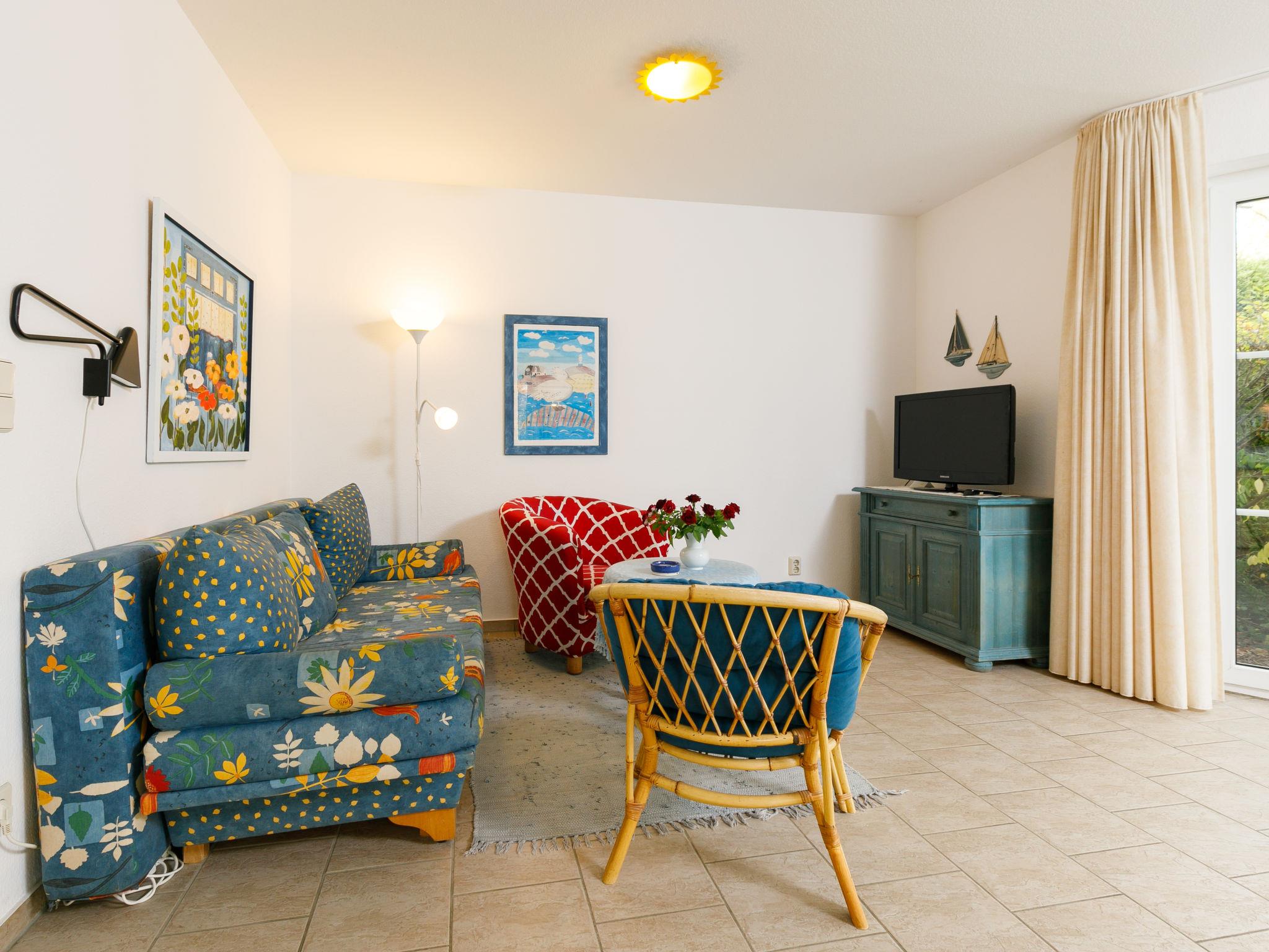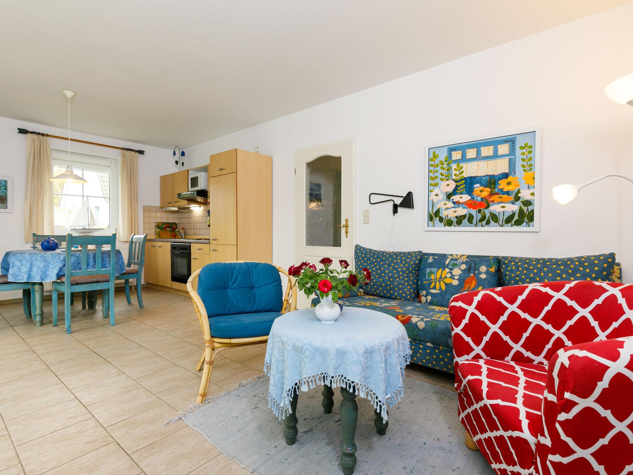 "Eickhus Blaue Wohnung", 2-Zimmer-Wohnung 50 m2, im Erdgeschoss. Geräumig und hell, geschmackvoll und gemütlich eingerichtet: grosses Wohn-/Esszimmer mit Esstisch und Sat-TV (Flachbildschirm). Ausgang zur Terrasse. 1 Zimmer mit 1 Doppelbett (160 cm, Länge 200 cm). Offene Küche (4 Kochplatten, Backofen, Toaster, Wasserkocher, elektrische Kaffeemaschine) mit Radio. Dusche/WC. G-Heizung, Fussbodenheizung. Natursteinboden, Teppichboden. Terrasse. Terrassenmöbel. Zur Verfügung: Internet (Wireless LAN, gratis). Parkplatz. Bitte beachten: Nichtraucher-Haus. Rauchmelder. Im Fahrradraum können E-Bikes kostenlos geladen werden.