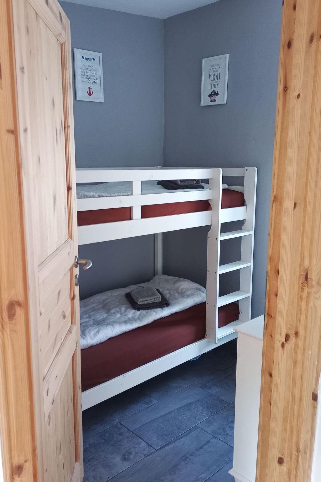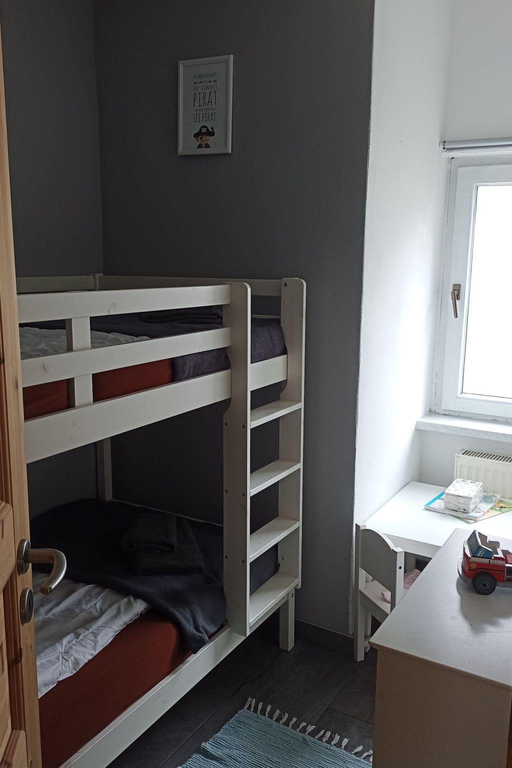 Die Ferienwohnung ist klein aber fein, so bietet Sie maximal zwei Erwachsenen und zwei Kindern (oder einem Erwachsenen und drei Kindern) ein gemütliches Heim für einen tollen Ostseeurlaub! Im Wohnzimmer darf auf der Couch gelümmelt (und ferngesehen), gespielt oder das zuvor im Küchenbereich gezauberte Essen verspeist werden. Für die Küchenzauberei stehen neben Herd, Wasserkocher, Minibackofen, Toaster und Kaffeemaschine die wichtigsten Küchenutensilien zur Verfügung. (Aus)geschlafen wird im Urlaub natürlich auch und dafür stehen zwei Kojen zur Verfügung. Die Großen schlafen im 1,60m breiten Ehebett und die Lütten müssen erstmal klären wo sie sich betten, denn im Kinderschlafzimmer wird im Etagenbett geträumt. Für ein Kinderbett ist leider kein Platz, gern stellen wir aber als Alternative einen Rausfallschutz für das Etagenbett zur Verfügung. Zu guter letzt gibt es noch ein kleines Bad mit Dusche, WC und Waschbecken. Ein Fön und Handtücher sind selbstverständlich vorhanden.