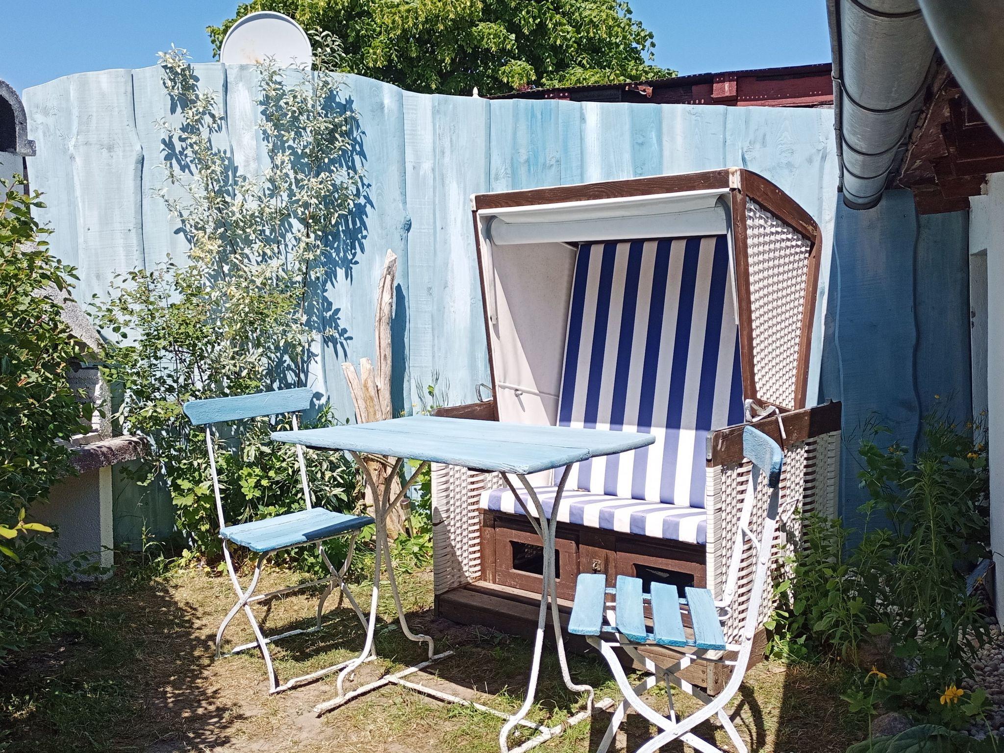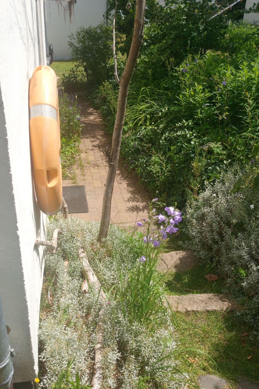 Direkt an der Ferienwohnung befindet sich die Terrasse zur alleinigen Nutzung. Gemütlich im Strandkorb tankt man Sonne oder manchmal auch nur gute Seeluft. Beim entspannten Grillen, beim kühlen Blonden oder einem Gläschen Wein baumelt die Seele. Der Garten wird gemeinschaftlich genutzt.