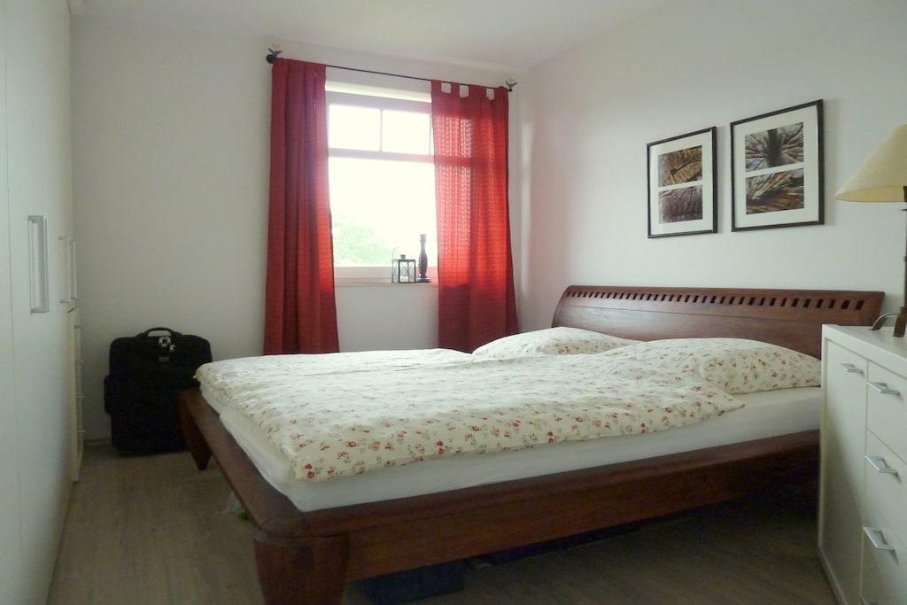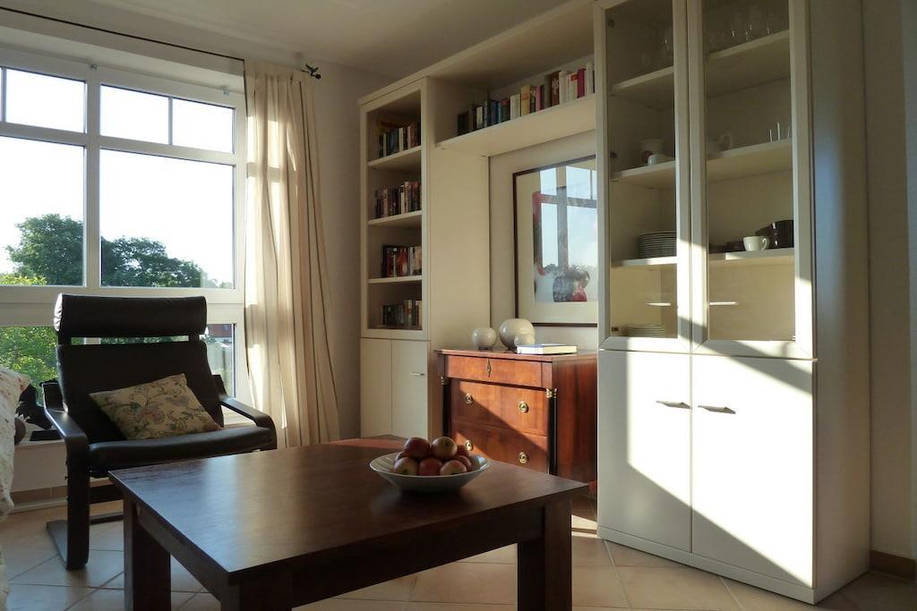 Zu jeder Jahreszeit kommen Sie in eine behagliche Ferienwohnung im Obergeschoss mit Fußbodenheizung. Das geräumige Wohnzimmer mit einer gemütlichen Sofaecke, bequemen Sesseln und einladendem Essplatz, die zwei Schlafzimmer mit jeweils einem Doppelbett und viel Schrankplatz die separate Einbauküche und das Bad mit Außenfenster sind die Eckpunkte dieser modernen und hellen Wohnung. Vom Wohnzimmer aus erreichen Sie den überdachten Südbalkon mit Blick ins Grüne. Die neue Einbauküche bietet einen Geschirrspüler, Cerankochfeld, Backofen, Mikrowelle, Kühlschrank mit Gefrierfach, Toaster, Kaffeemaschine, Wasserkocher, Eierkocher, Mixer und reichlich Geschirr an und erfüllt damit hohe Ansprüche. Gästewechsel in der Hauptsaison in der Samstag.