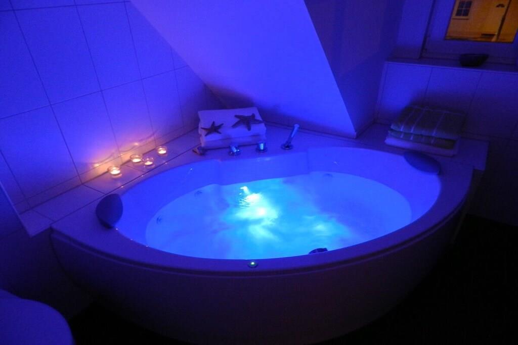 Die "Villa Sorgenfei" eignet sich für Familien mit Kindern und Großeltern oder gemeinsam reisende Paare. Sie bietet Platz für 7 Erwachsene+ 1 Kleinkind. Die Villa verfügt über ein barrierefreies Schlafzimmer im Erdgeschoss mit ebenerdiger Dusche/Bad und Sauna. Im Obergeschoss bietet das Haus neben 2 Schlafzimmern ein Ankleideraum. Das Bad im Obergeschoss hat 2 Waschbecken, 1 WC, 1 Dusche, 1 XXL-Whirlpool, ausgelegt für 2 Personen. 8 rotierende Whirldüsen im Rücken- und Seitenbereich, 14 Bodendüsen sind stufenlos regelbar, zuschaltbare Intervallautomatik ist einzeln zu steuern. Die LED-Scheinwerfer mit wechselnden Farben sorgen schließlich für Entspannung pur.