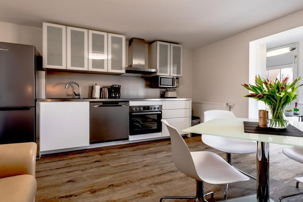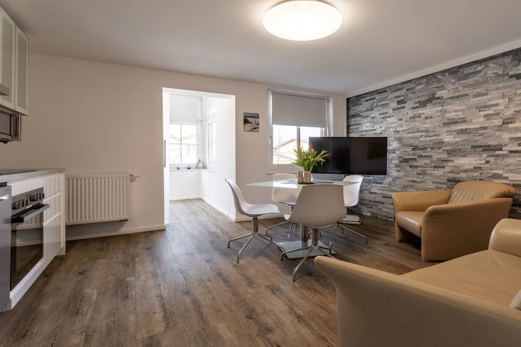 Das Appartement bietet insgesamt vier Schlafplätze. Im Schlafzimmer befindet sich ein Doppelbett (160x200). In der separaten Veranda befindet sich eine Schlafcouch (140x200). Im Wohnzimmer befindet sich eine moderne Küche. Die Böden sind mit rustikalem Vinyl ausgelegt. Im modernen Bad ist eine Wellnessdusche zum Verwöhnen. Das abschliessbare Schlafzimmer und Bad der Wohnung liegen gleich gegenüber vom Wohnzimmer. Um diese beiden Zimmer zu erreichen, müssen Sie den schmalen Gemeinschaftsflur überqueren (siehe auch Grundriss). Die Wohnung verfügt über einen eigenen Stellplatz und eine Fahrradabstellmöglichkeit. Auf der Terrasse können Sie den Abend mit dem Grill genießen. In der Villa gibt es zwei weitere Wohneinheiten mit insgesamt 10 weiteren Schlafplätzen, die auch gemeinsam gebucht werden können.