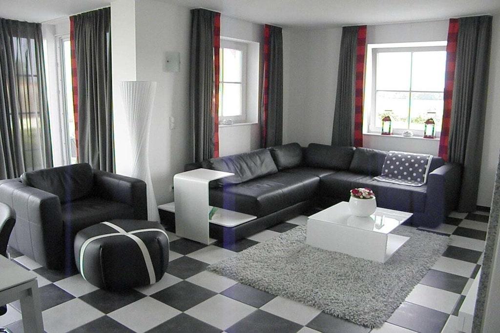 Mit 3 Schlafzimmern und 3 Bädern auf 135 qm Wohnfläche finden 6 Erwachsene Raum und Muße für entspannte Ferientage. Die Farben sind schwarz, weiß und rot, das Gesamtkonzept ist stilvoll und harmonisch, das Wohnzimmer mit Kamin und Wintergarten großzügig und lichtdurchflutet. Man trifft sich im Zentrum des Raumes am großen Esstisch zum Gespräch, zu den Mahlzeiten, zum Wein am Abend. Die Villa besticht durch hochwertiges Hülsta-Mobiliar, die Boxspringbetten garantieren Komfort, Vergnügen und perfekte Träume. Ein Kaffeevollautomat sorgt am Morgen für den richtigen Duft. Nehmen Sie Ihr Frühstück auf der Terrasse ein