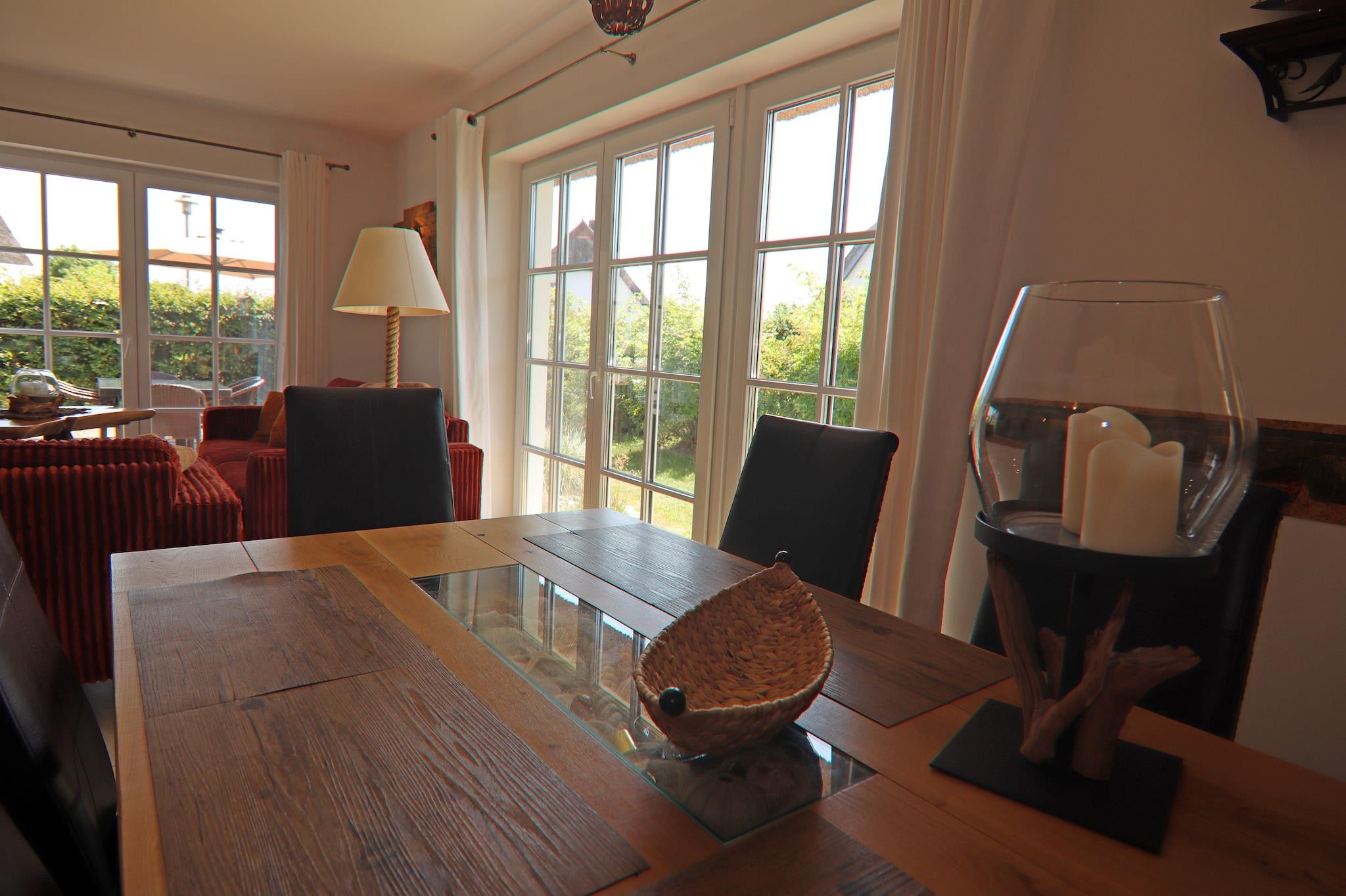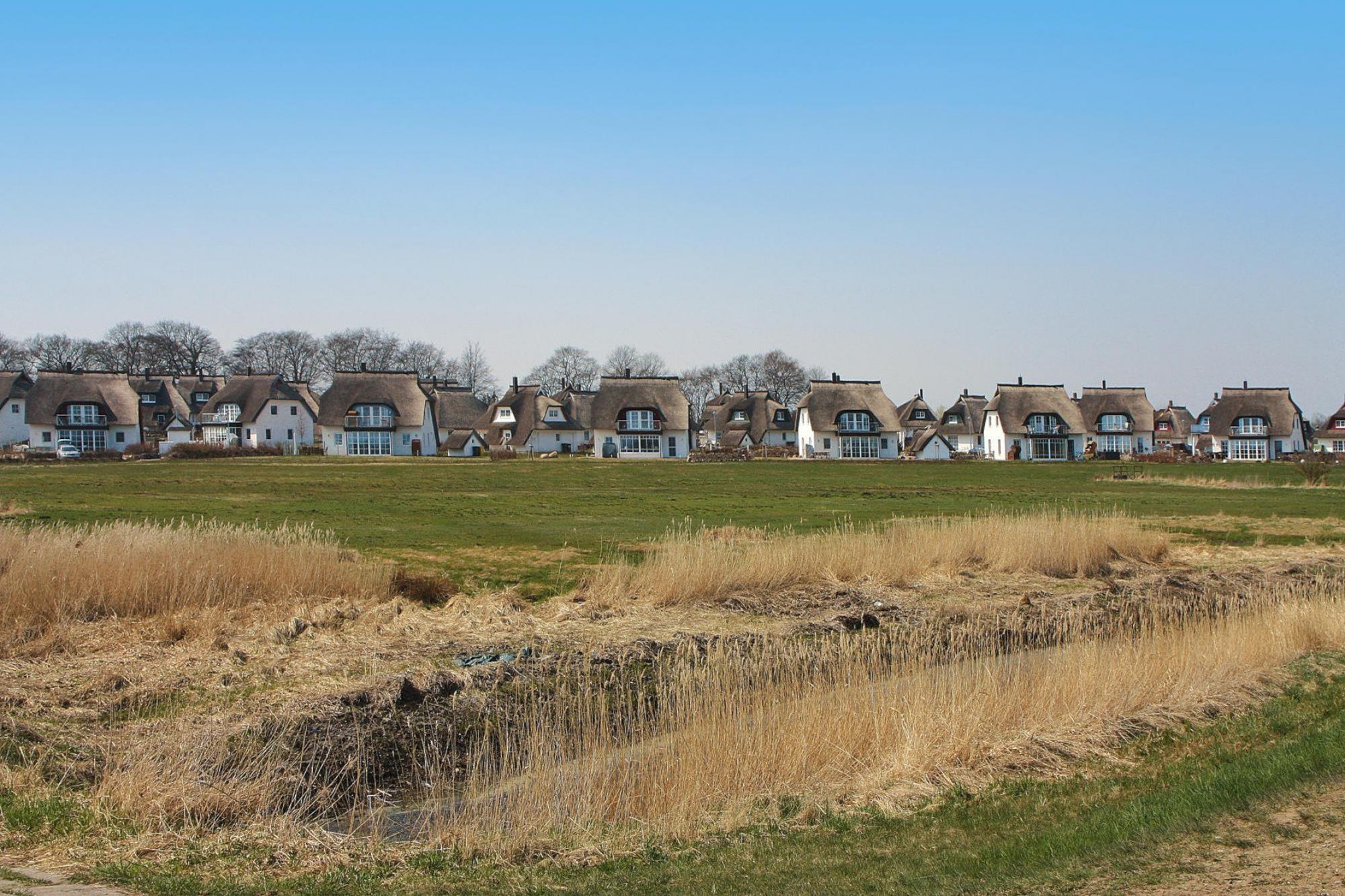 Reetgedecktes Ferienhaus Weiße Düne in Zinnowitz mit modernem Komfort und Blick auf das nahe Achterwasser.