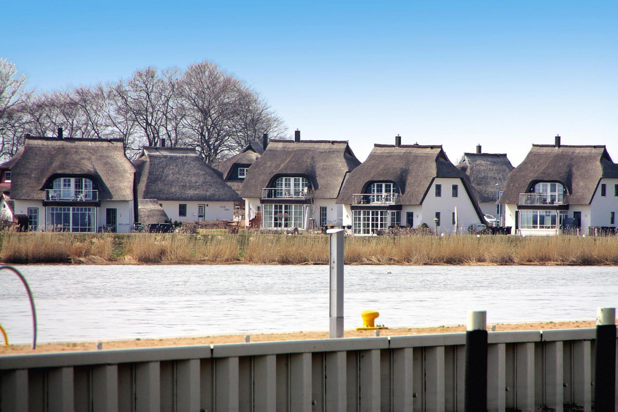 Reetgedecktes Ferienhaus mit Blick aufs Wasser