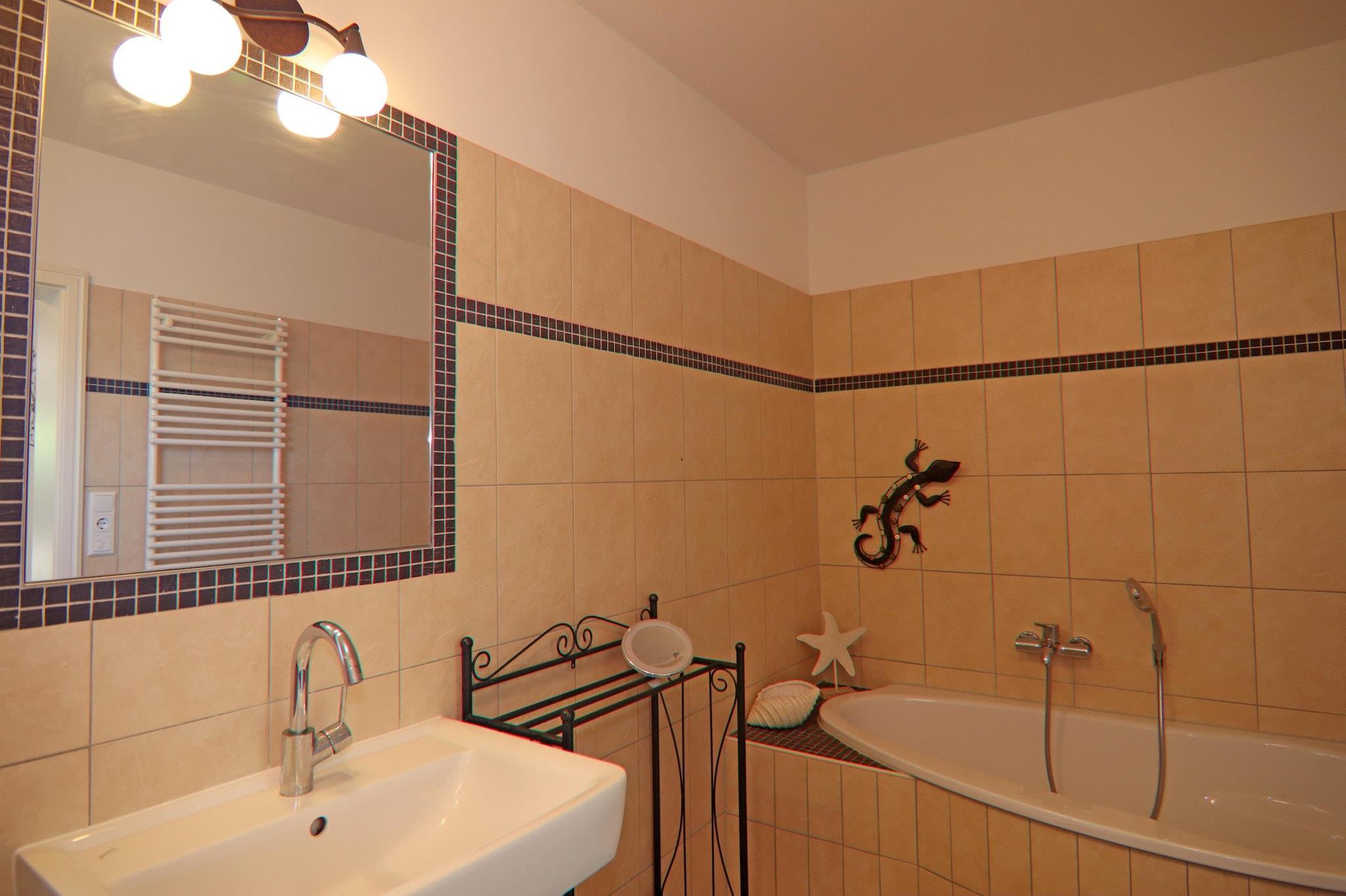 Reetgedecktes Ferienhaus mit komfortabler und moderner Einrichtung und Blick auf das nur 200 Meter entfernte Achterwasser. Das charmante Ostseebad Zinnowitz liegt an einer der schmalsten Stellen der Insel, die von Ostsee und dem Achterwasser geprägt ist. Anfang des 20. Jahrhunderts entstanden hier Hotels und Pensionen in der bekannten Bäder-Architektur, die gemeinsam mit der großzügig angelegten Promenade ein wunderschönes Bild ergeben und zum abendlichen Bummel einladen. Highlights inklusive: Alle verbrauchsabhängigen Energiekosten WLAN Pkw-Stellplatz Aktivitäten in der Nähe: Der flach abfallende Sandstrand ist ein Paradies für kleine Muschelsucher und Wasserratten, aber auch sonnenhungrige große Gäste fühlen sich hier wohl. Falls die Sonne einmal ausbleibt, besuchen Sie einfach die Bernsteintherme mit ihrem 850 m² großen Meerwasserschwimmbereich. Tipp: eine Tauchfahrt mit der Tauchglocke an der Seebrücke und Ausflugsfahrten per Schiff auf der Ostsee oder dem Achterwasser.