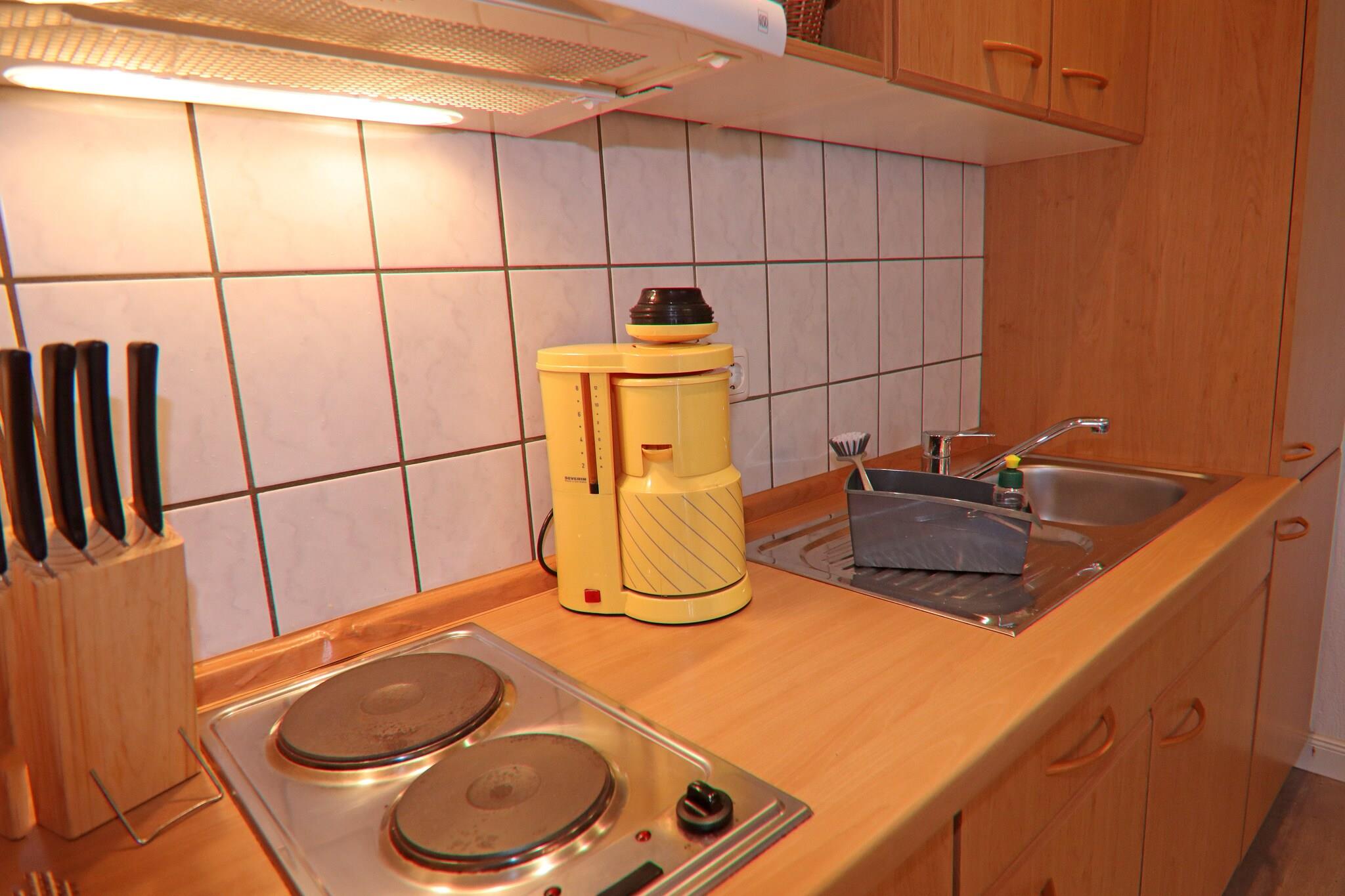 Parterre: (offene Küche(Kochplatte(2 Kochplatten, elektrisch), Wasserkocher, Toaster, Kaffeemaschine, Kühlschrank), Wohn/Esszimmer(TV(Satellit)), Schlafzimmer(Doppelbett), Badezimmer(Dusche, Waschbecken, Toilette)) Grill, Trockner(Gemeinschaftliche Nutzung mit anderen Gästen), Waschmaschine(Gemeinschaftliche Nutzung mit anderen Gästen), Heizung(Zentral), Terrasse(alleinige Nutzung), Garten(Gemeinschaftliche Nutzung mit anderen Gästen), Fahrradabstellraum, Gartenmöbel, Grill, Parkplatz, Sonnenschirm, Sandkasten, Rutsche