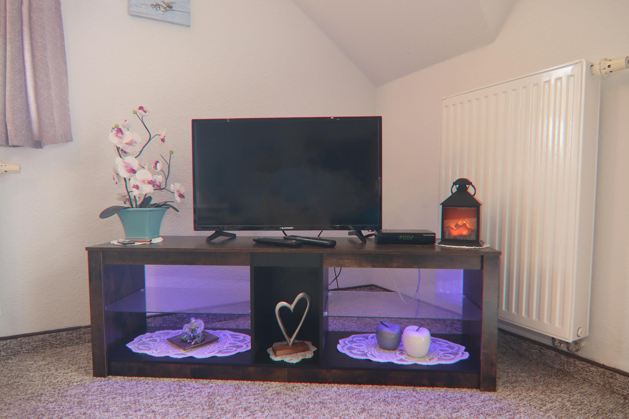 In der 1. Etage: (offene Küche(Esstisch(4 Personen), Kochplatte(4 Kochplatten, elektrisch), Toaster, Kaffeemaschine, Kühl-/Gefrierkombination), Wohn/Esszimmer(TV(Satellit)), Schlafzimmer(Doppelbett), Badezimmer(Dusche, Waschbecken, Toilette), Flur, Balkon) Grill, Trockner(Gemeinschaftliche Nutzung mit anderen Gästen), Waschmaschine(Gemeinschaftliche Nutzung mit anderen Gästen), Heizung(Fußbodenheizung), Garten(Gemeinschaftliche Nutzung mit anderen Gästen), Fahrradabstellraum, Gartenmöbel, Grill, Parkplatz, Sandkasten, Rutsche, Markise