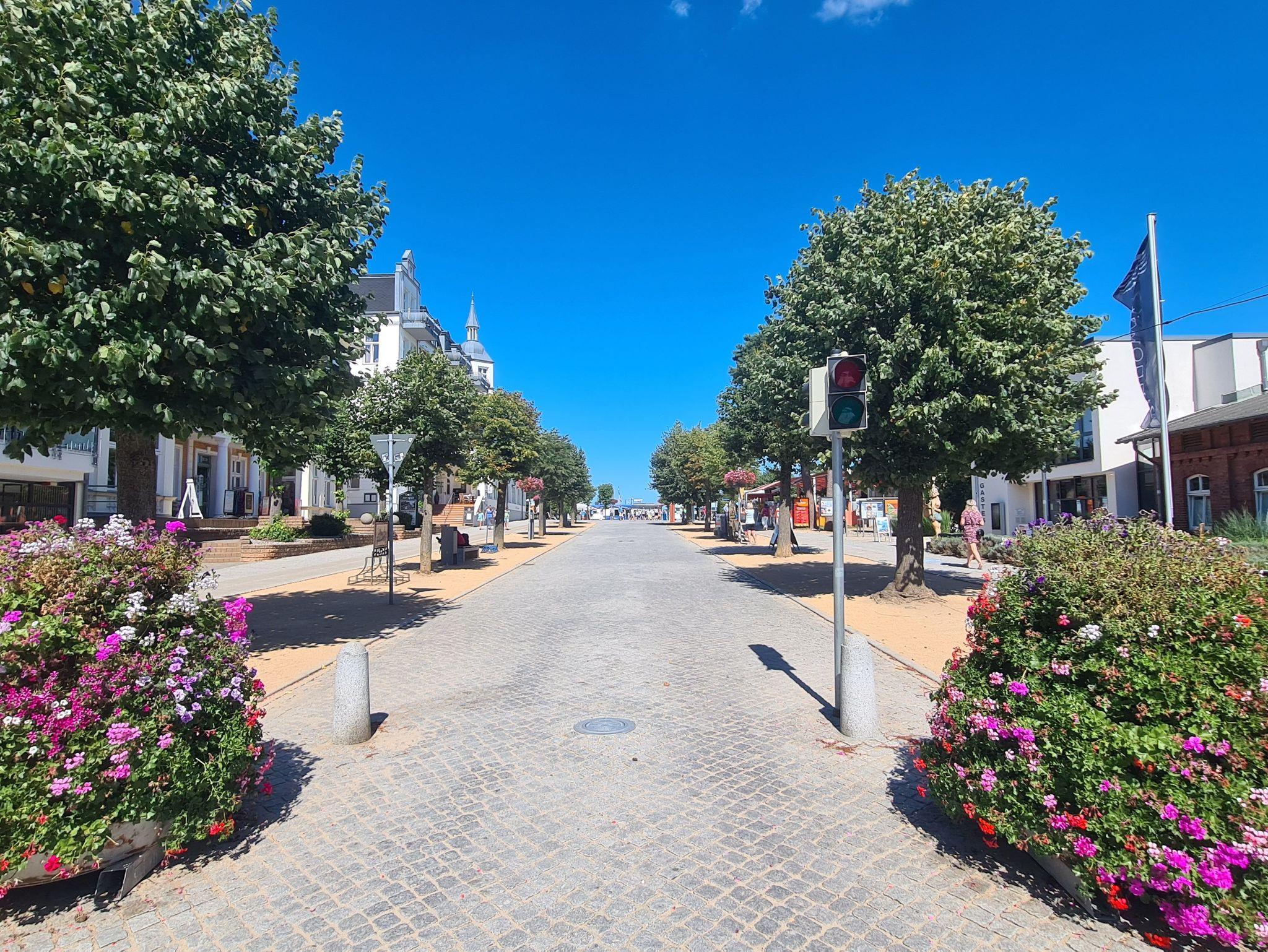 Die Wohnung liegt im beliebten Ostseebad Zinnowitz auf Usedom. Freilichtbühne, Theater, Kino, Tennisanlage, die Bernsteintherme sowie zahlreiche Restaurants, Einkaufsmöglichkeiten und ein Fahrradverleih sind bequem zu Fuß erreichbar.