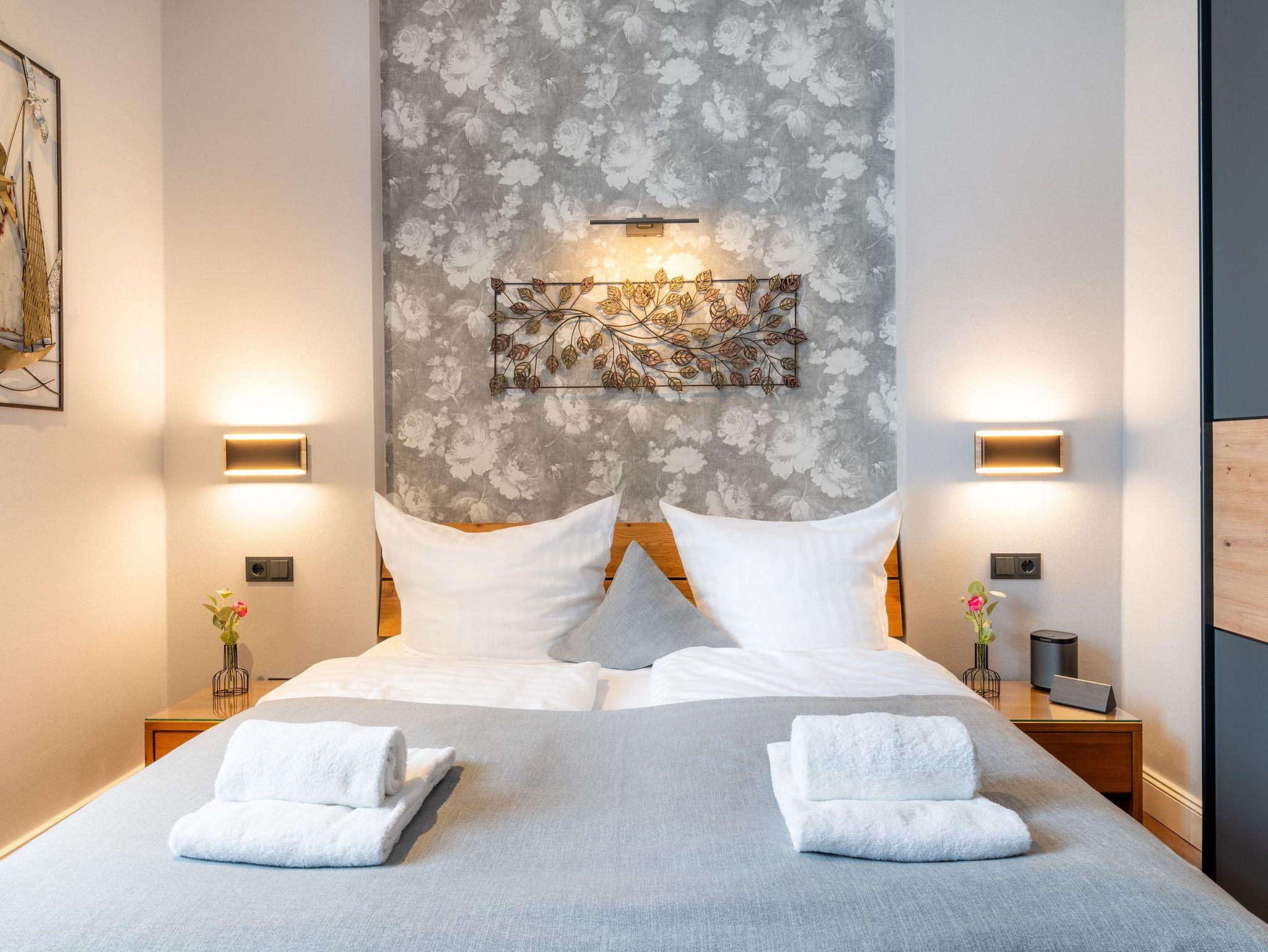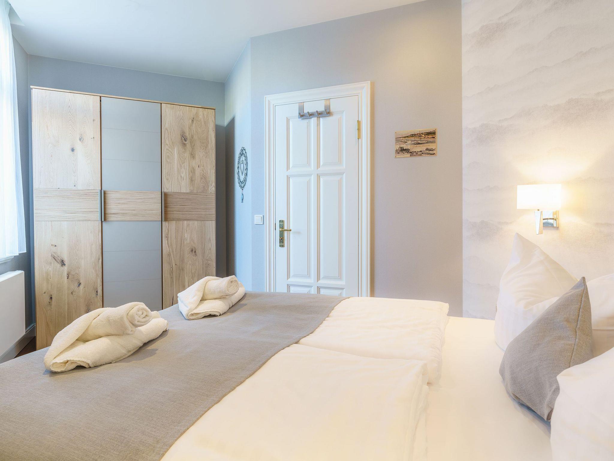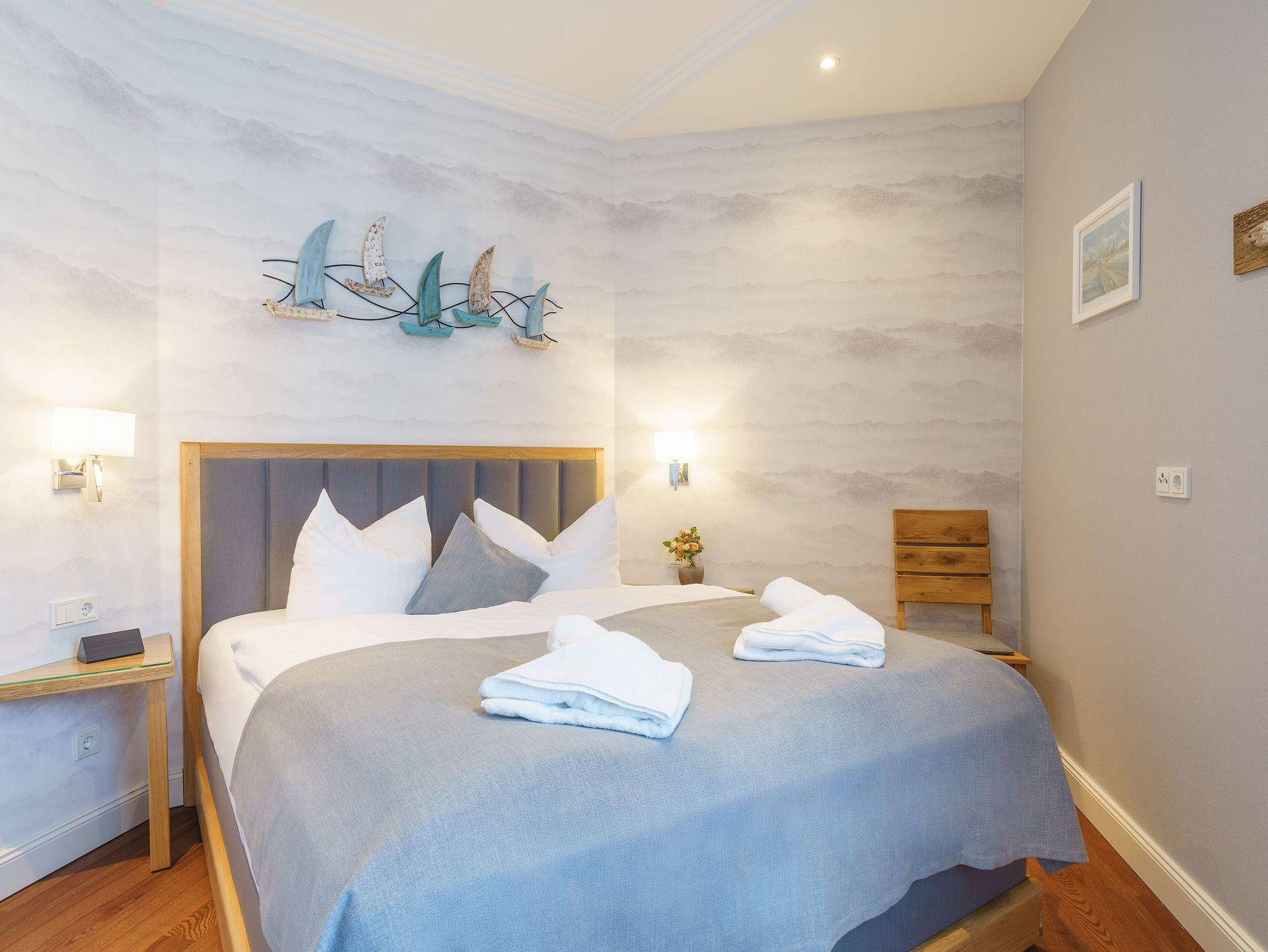 Das Appartement ist wegen seiner jeweils mit Doppelbett ausgestatteten zwei Schlafzimmer das ideale Quartier für Familien mit bis zu zwei Kindern sowie zwei Paare gleichermaßen. Auf Komfort muss im Appartement Nr. 6 niemand verzichten: So garantiert dieses mit seinen hochwertigen Boxspringbetten (je 160 x 200cm / zwei getrennte Matratzen) vier Urlaubsgästen einen komfortablen Schlafgenuss und bietet mit moderner Technik, wie WLAN-Anschluss und Flat TV, im Wohnbereich sowie in einem der Schlafzimmer täglich eine gelungene Abwechslung.