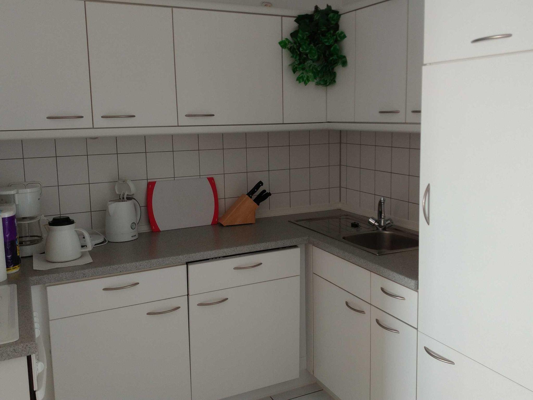 Eine gut ausgestattete Küche mit vollständigem Geschirr, Küchengeräten, Kaffeemaschine, Wasserkocher und Toaster sind vorhanden. Ab April 2017 mit Geschirrspüler.