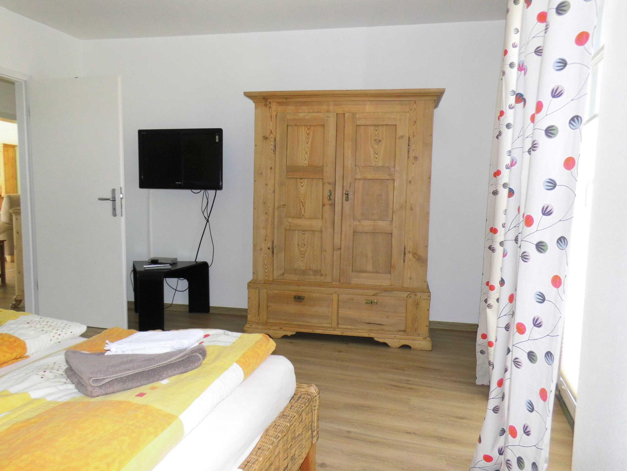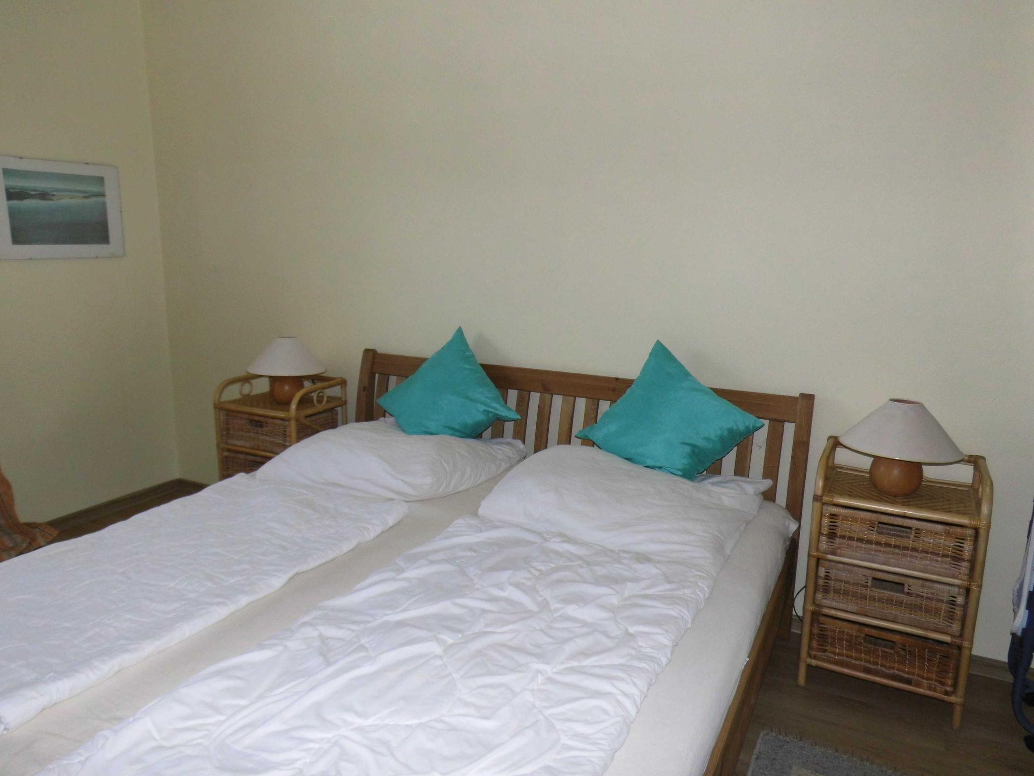 Die Wohnung verfügt über 2 Schlafzimmer mit jeweils 2 Doppelbetten und Flachbildschirm, eine weitere Schlafmöglichkeit für eine Person ist mit einem Zustellbett möglich, eine gut ausgestattete Küche, 1 Badezimmer mit Badewanne,Waschmaschine und ein großes Wohnzimmer mit 4er-Sofa und Sessel , Esstisch für 5 Personen und 1 TV-Gerät.