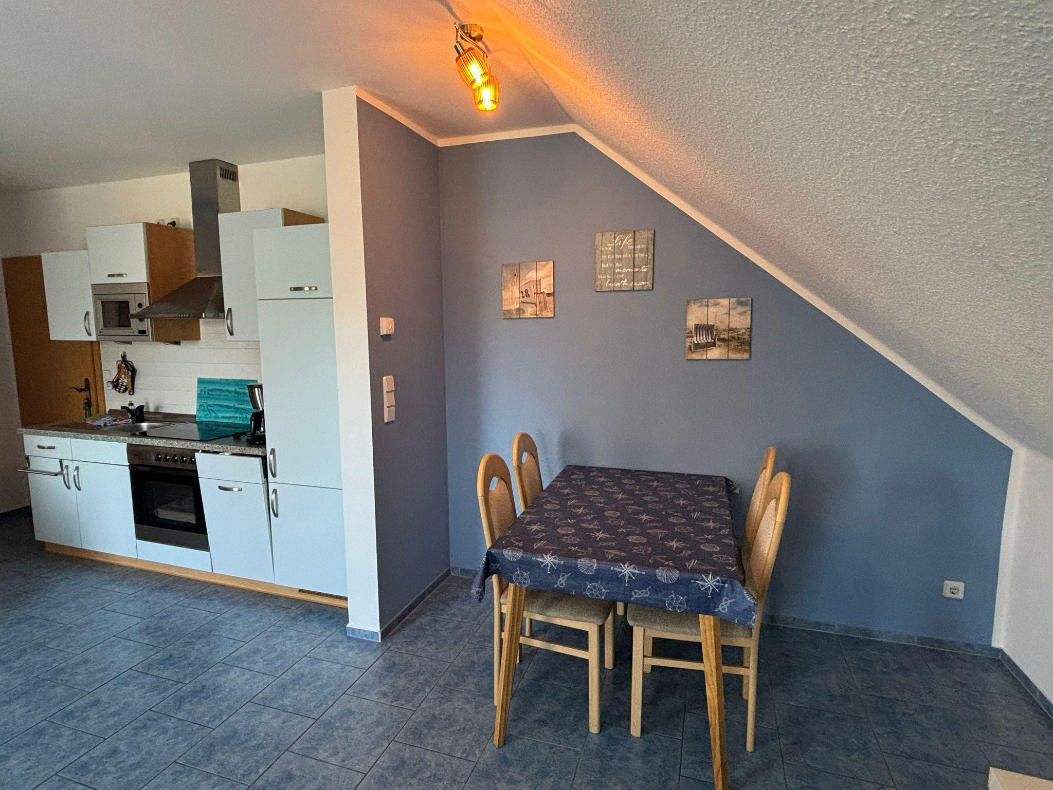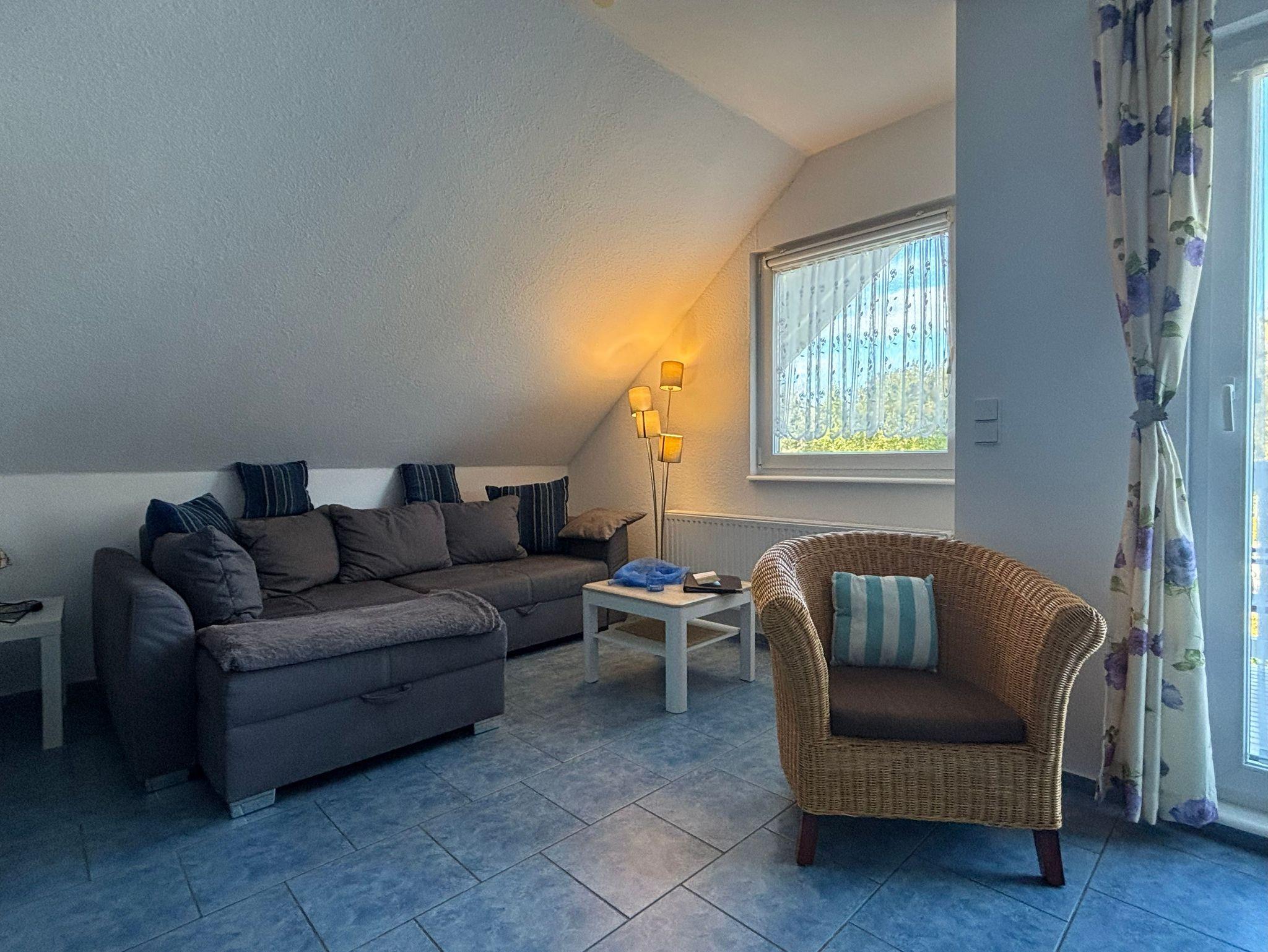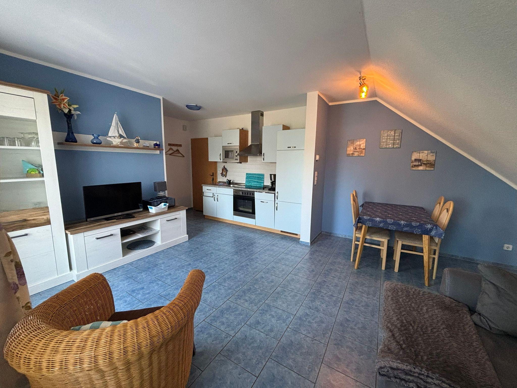 Die helle 2-Raum-Wohnung BLUE ist im Obergeschoss unseres Ferienhauses gelegen und bietet Ihnen mit 47 m² die perfekte Unterkunft für Ihren Urlaub am Meer. Hier finden Sie alles, was Sie für Ihren erholsamen Urlaub benötigen. Die Räumlichkeiten teilen sich in ein Schlafzimmer mit Doppelbett, ein Wohnzimmer mit offener, komplett ausgestatteter Einbauküche und Doppelbettcouch (Übernachtungsmöglichkeit für 2 weitere Personen) sowie ein Tageslichtbad mit Dusche und WC auf. Bestenfalls wohnen Sie hier zu weit, aber auch 4 Personen sind möglich.