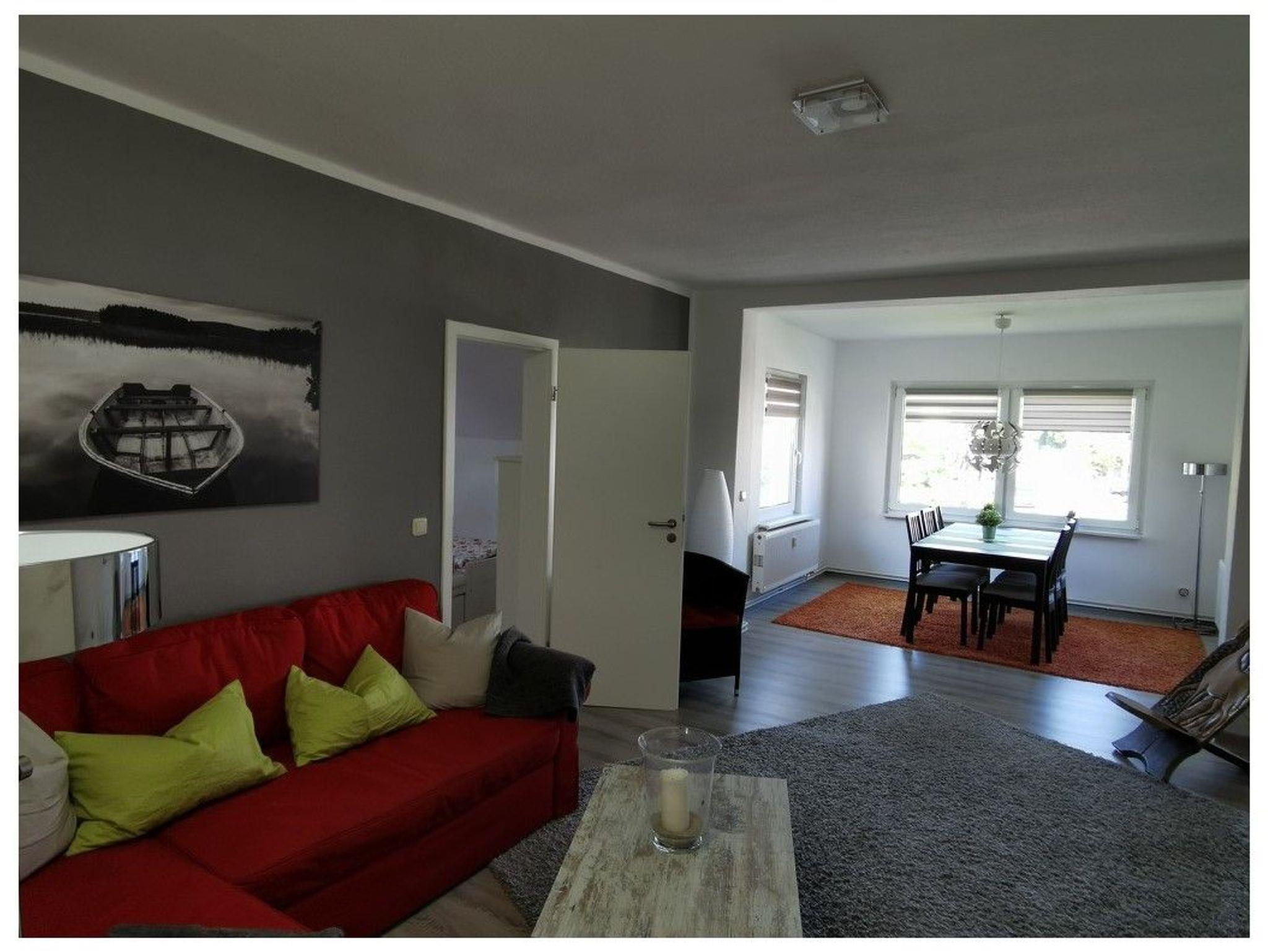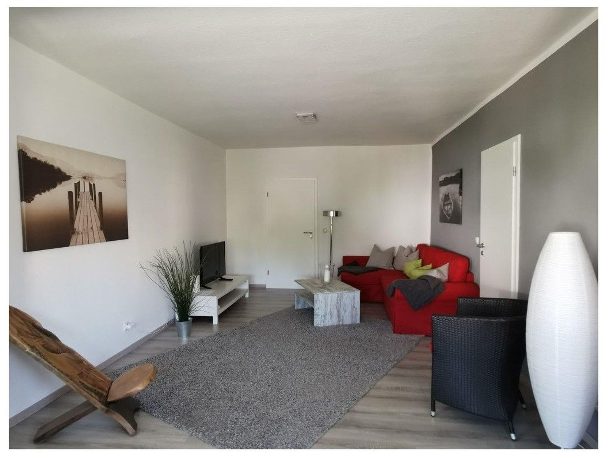 Die Ferienwohnung besitzt ein komfortables Schlafzimmer mit einem Doppelbett und zwei weitere Schlafzimmer mit je einem Einzelbett (einmal 0.90mx2.00m und einmal 1.40mx2.00m). Der großzügige und moderne Wohn- und Essraum ist mit einem Fernseher ausgestattet, so können Sie sich gut in der Wohnung entspannen. WLAN ist verfügbar. Die Küche besitzt sie einen Kühlschrank mit Tiefkühlfach, einen Geschirrspüler, einen Elektroherd sowie einen Wasserkocher und eine Kaffeemaschine. Im Bad befindet sich eine Dusche. Im Außenbereich bietet ein großer Garten viel nutzbaren Platz um das schöne Wetter zu genießen. Ein PKW-Parkplatz ist selbstverständlich vorhanden.