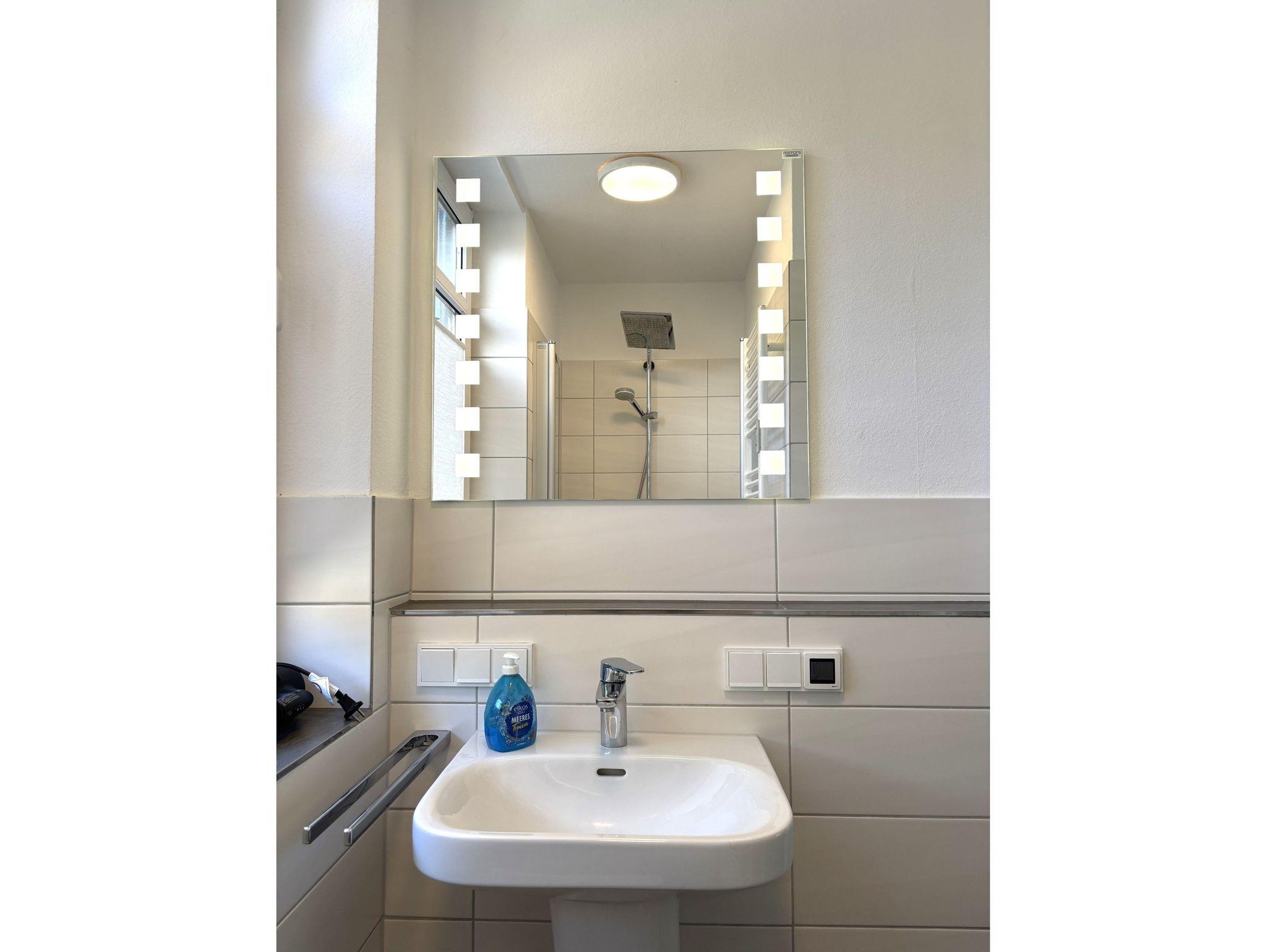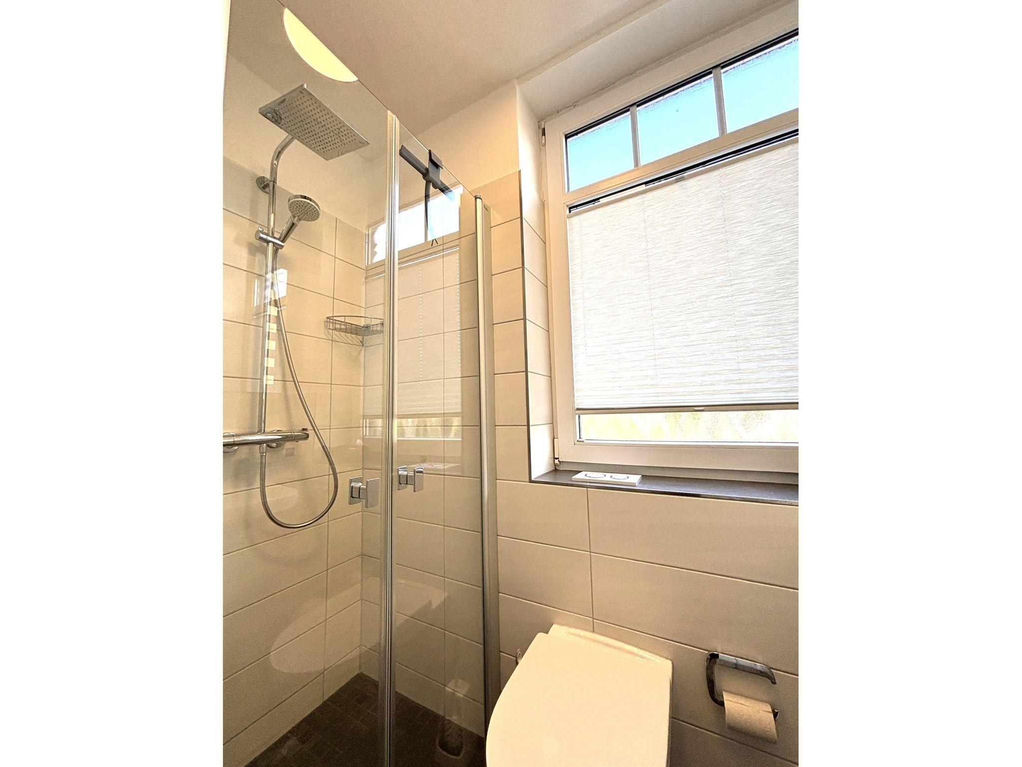 Zwei moderne Bäder mit ebenerdiger Dusche sorgen für zusätzlichen Komfort. Beide Bäder sind mit einer Regendusche ausgestattet und laden zum Entspannen ein. Bei Ihrer Anreise erwartet Sie eine Erstausstattung mit Seife und Toilettenpapier.