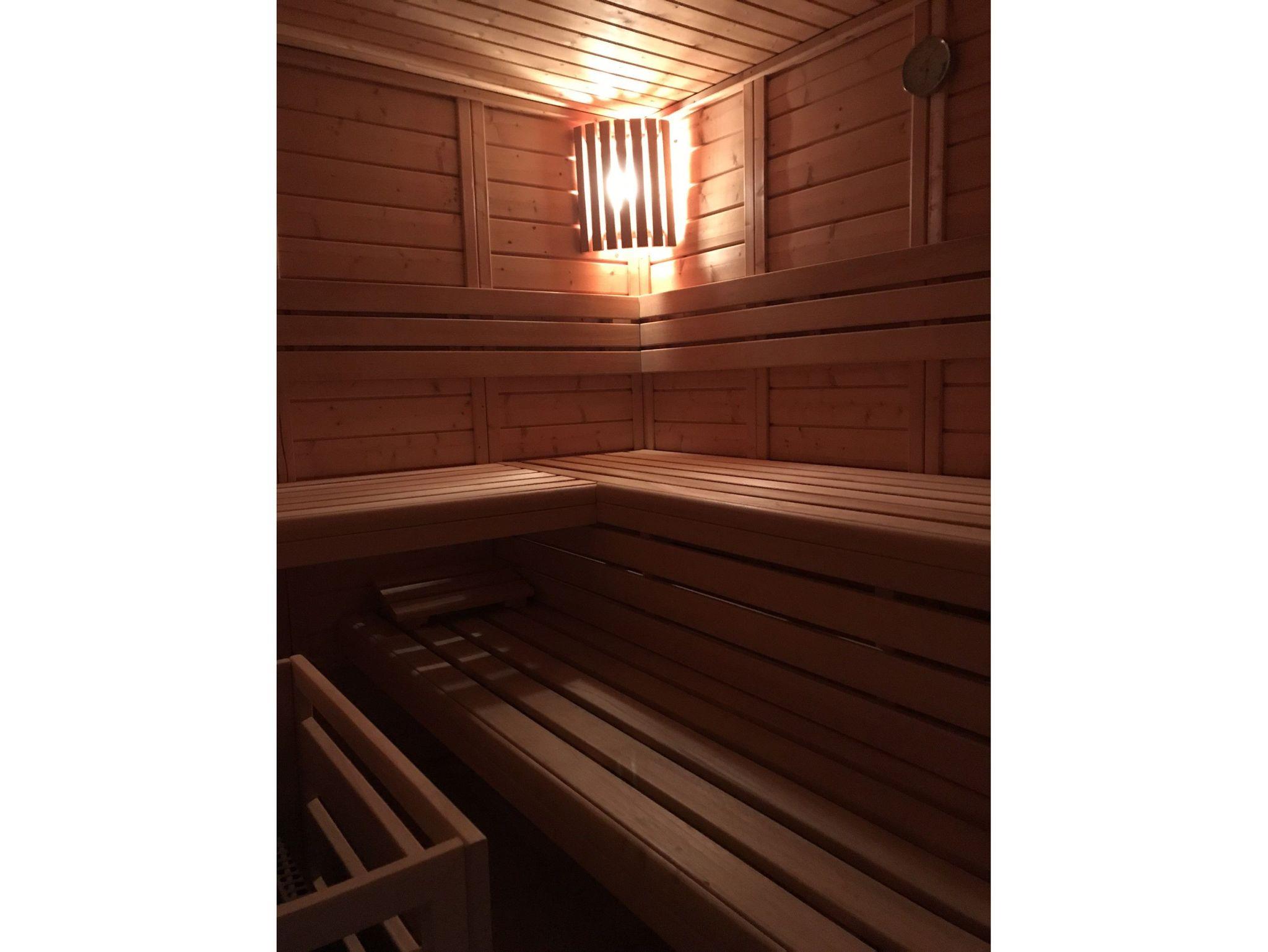 Ein eigener PKW-Stellplatz gehört ebenfalls zu jeder Einheit. Für entspannte Stunden stehen den Gästen ein hauseigenes kleines Schwimmbecken sowie eine Sauna mit Ruheraum zur Verfügung. Weitere Annehmlichkeiten wie ein Fahrradkeller, ein Tischtennisraum sowie Waschmaschine und Trockner (gegen Gebühr) runden das Angebot ab. Im Garten befindet sich zusätzlich ein Fahrradabstellhaus.