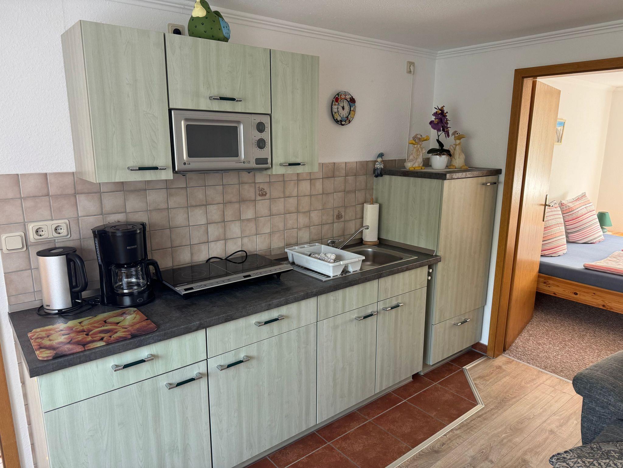 Ausstattung mit Wohnraum (Polstermöbel, Esstisch, LCD-TV, Radio), Küchenzeile (E-Herd mit Backofen, Kühlschrank, Mikrowelle, div. Küchengeräte), Schlafraum (Doppelbett), DU/WC, Elektroheizung.