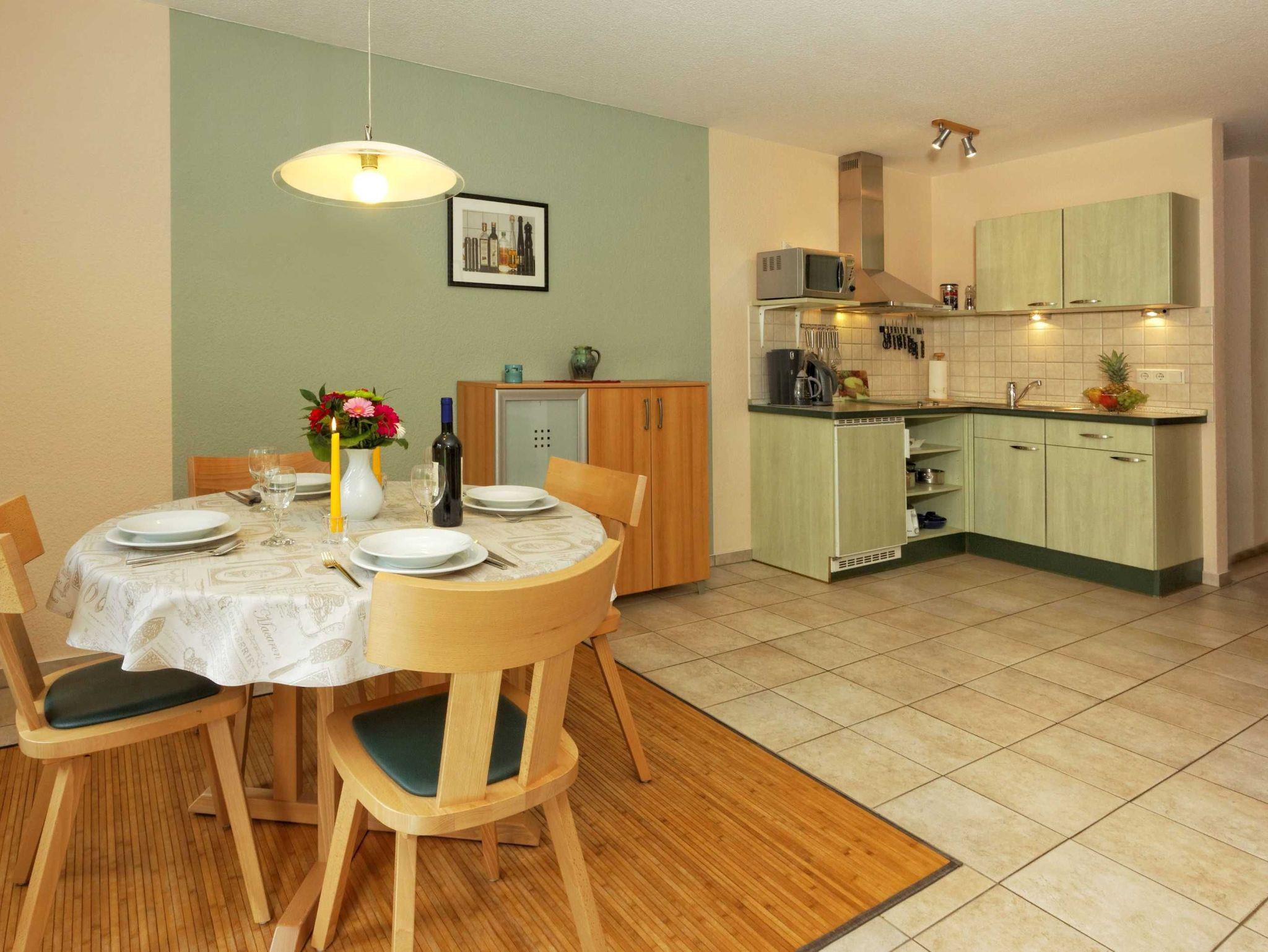 • Wohnfläche ca. 46 m², Terrasse mit Sitzmöbeln, Sonnenschirm, Grill, Nichtraucherwohnung