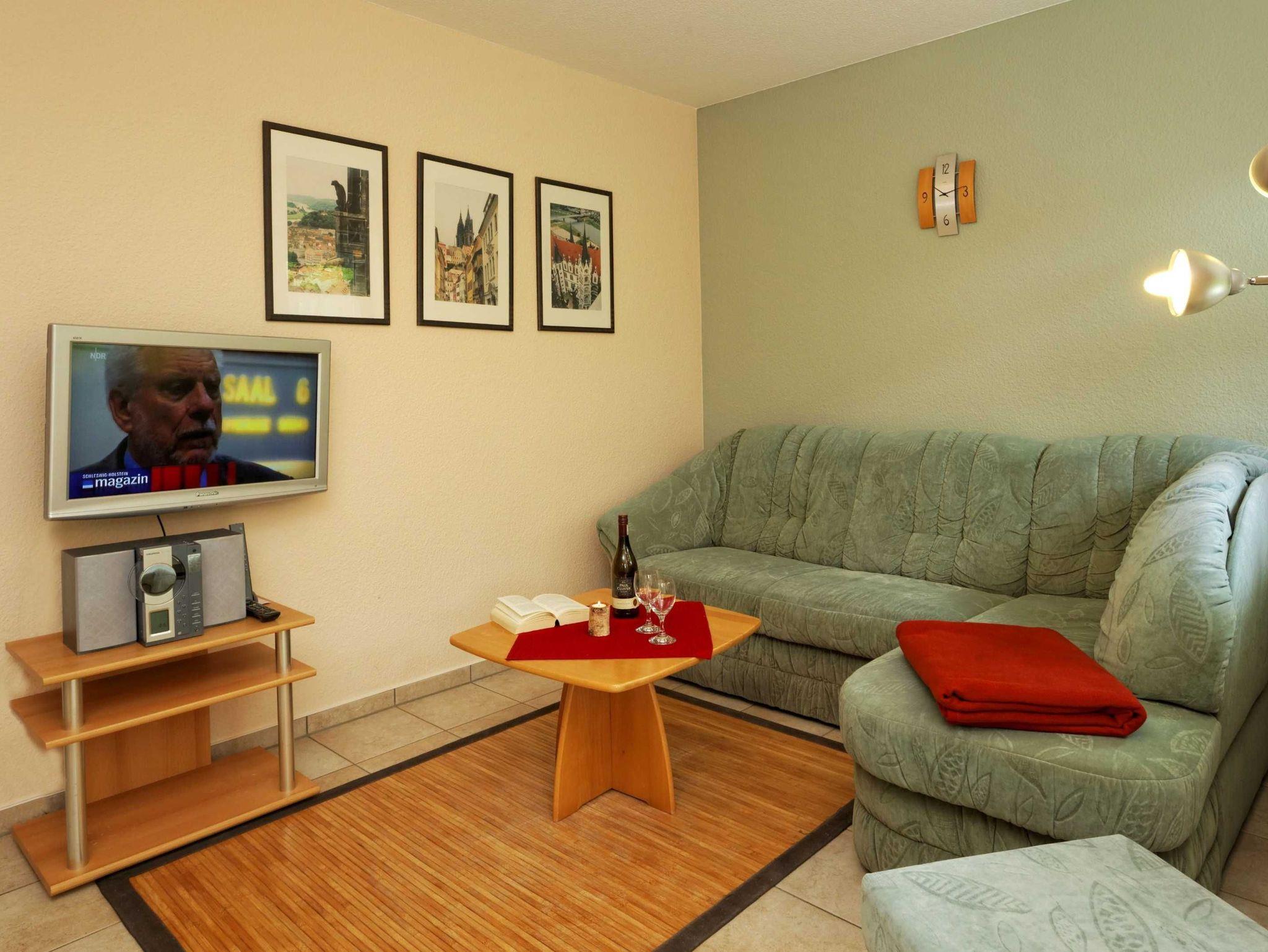 • komb. Wohn- / Schlafraum mit Schlafcouch (ca. 1,50 m x 2,00 m), Flachbild-TV mit ca. 80 cm Bilddiagonale, Radio, Internet WLAN