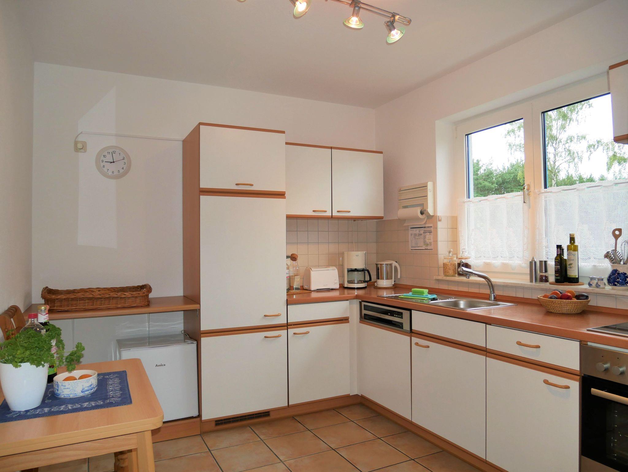 Das 90 qm große Ferienhaus geht über zwei Etagen und verfügt im Obergeschoss über 3 Schlafzimmer (2 x mit Doppelbett; 1 x zwei Einzelbetten) sowie ein Badezimmer mit Badewanne und WC. Im Erdgeschoss befindet sich ein zweites Badezimmer mit Dusche sowie die separate komplett ausgestattete Küche mit Spülmaschine, Backofen, Herd, Kühlschrank mit Gefriermöglichkeit, Kaffeemaschine, Wasserkocher und Toaster. Am großen Wohnbereich mit Essplatz und Sitzecke schließen sich die großzügige Terrasse mit Gartenmöbeln und Grillmöglichkeit sowie der Garten an. Ein Kinderbett und Hochstuhl stehen Ihnen kostenfrei zur Verfügung.