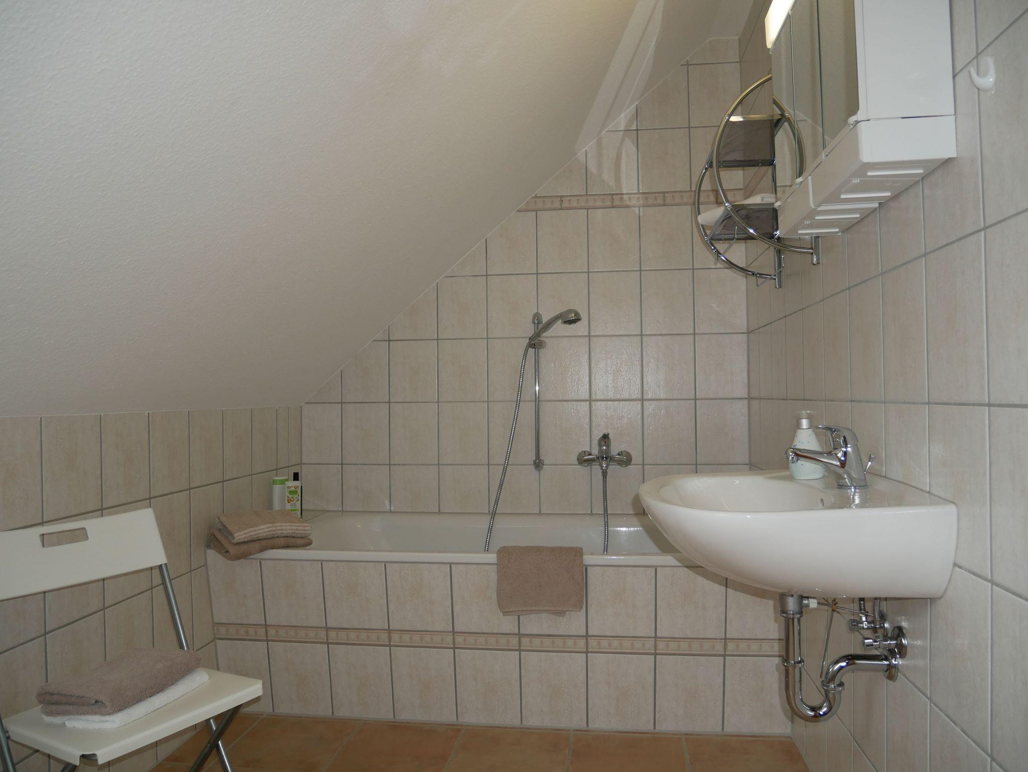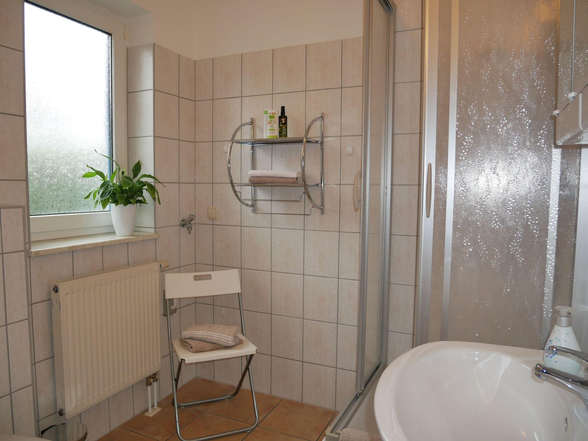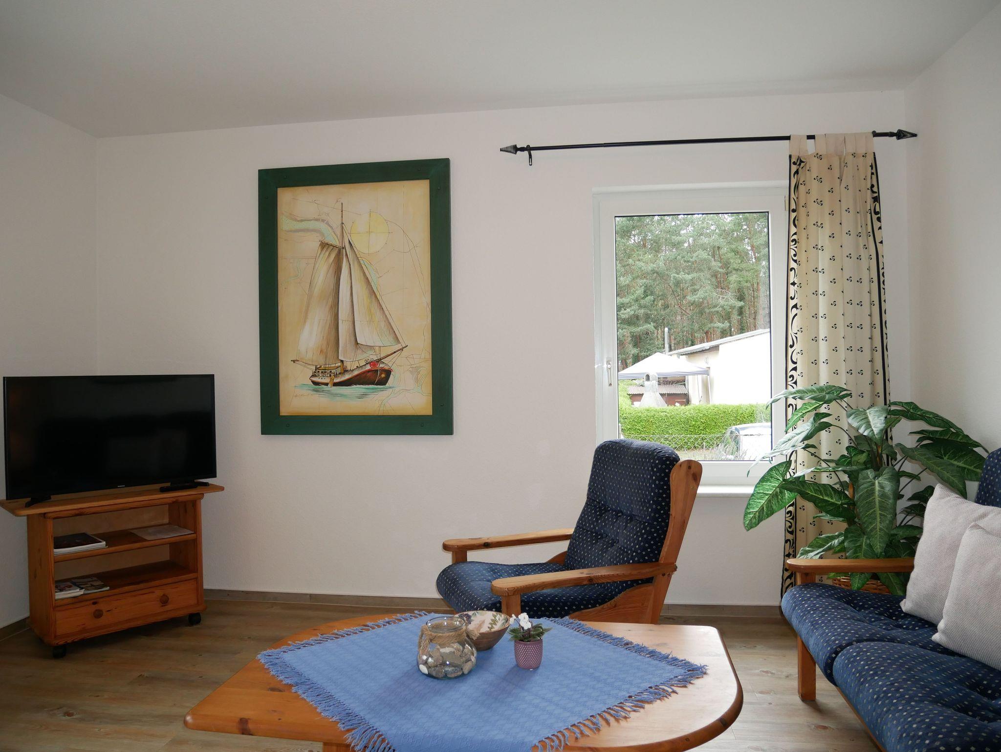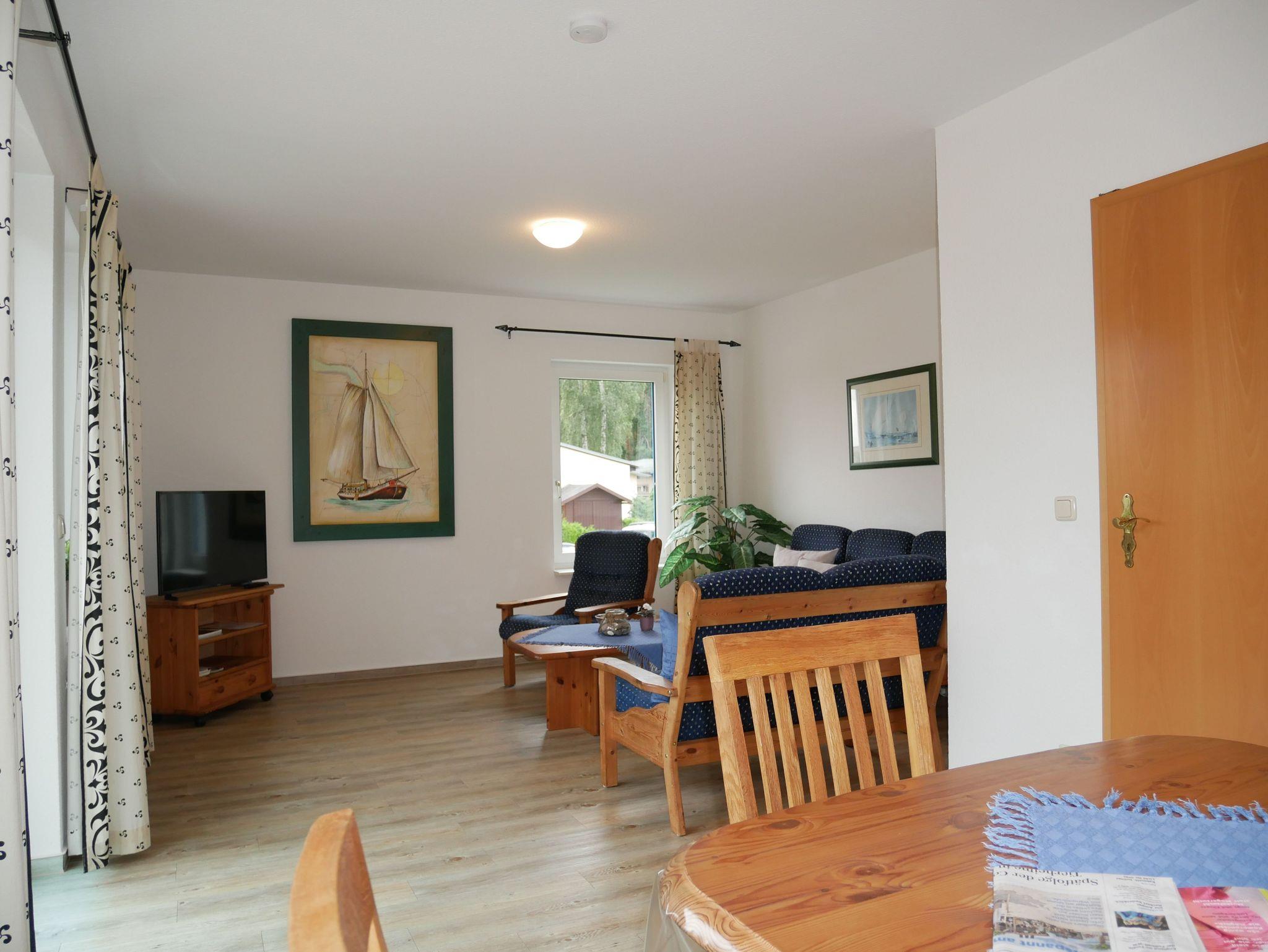 Wohnzimmer mit Essbereich, Küche und 2 Bädern mit WC/Dusche und WC/Badewanne mit W-Lan.