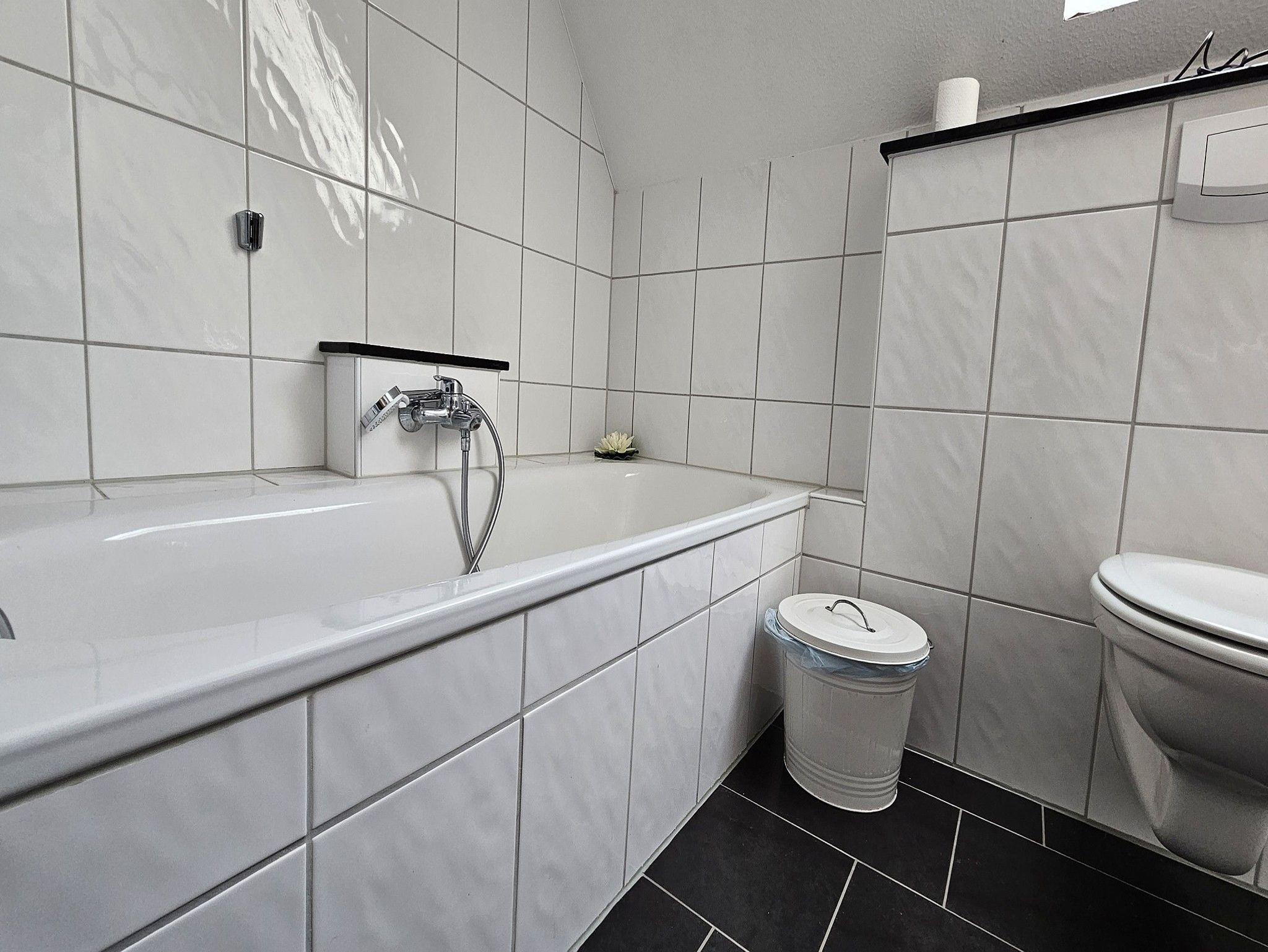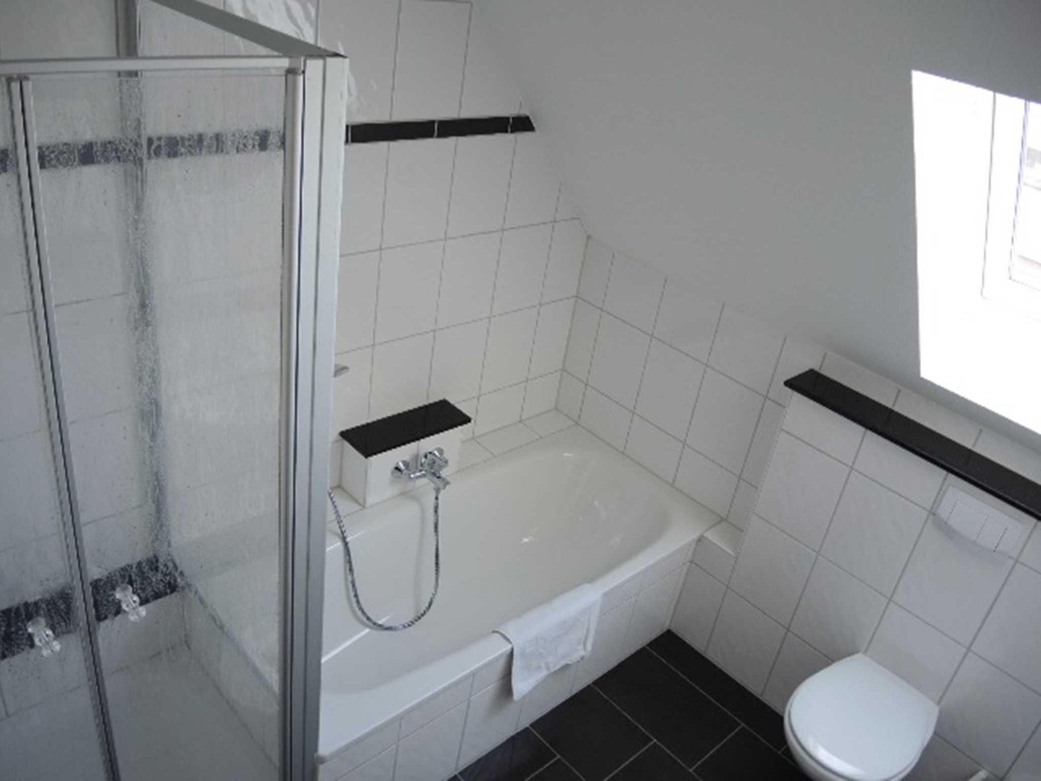Das Bad ist mit Dusche und Badewanne ausgestattet.