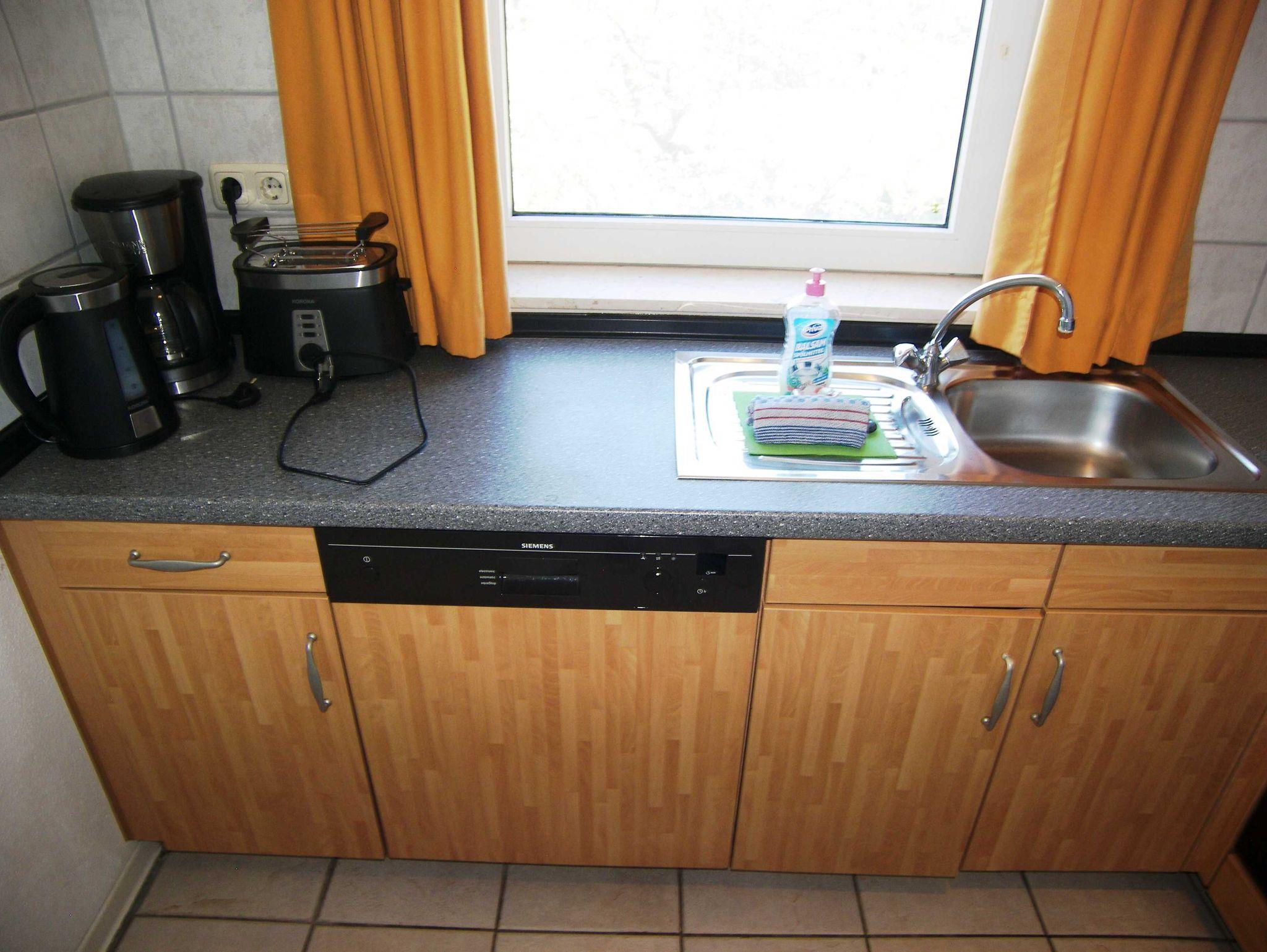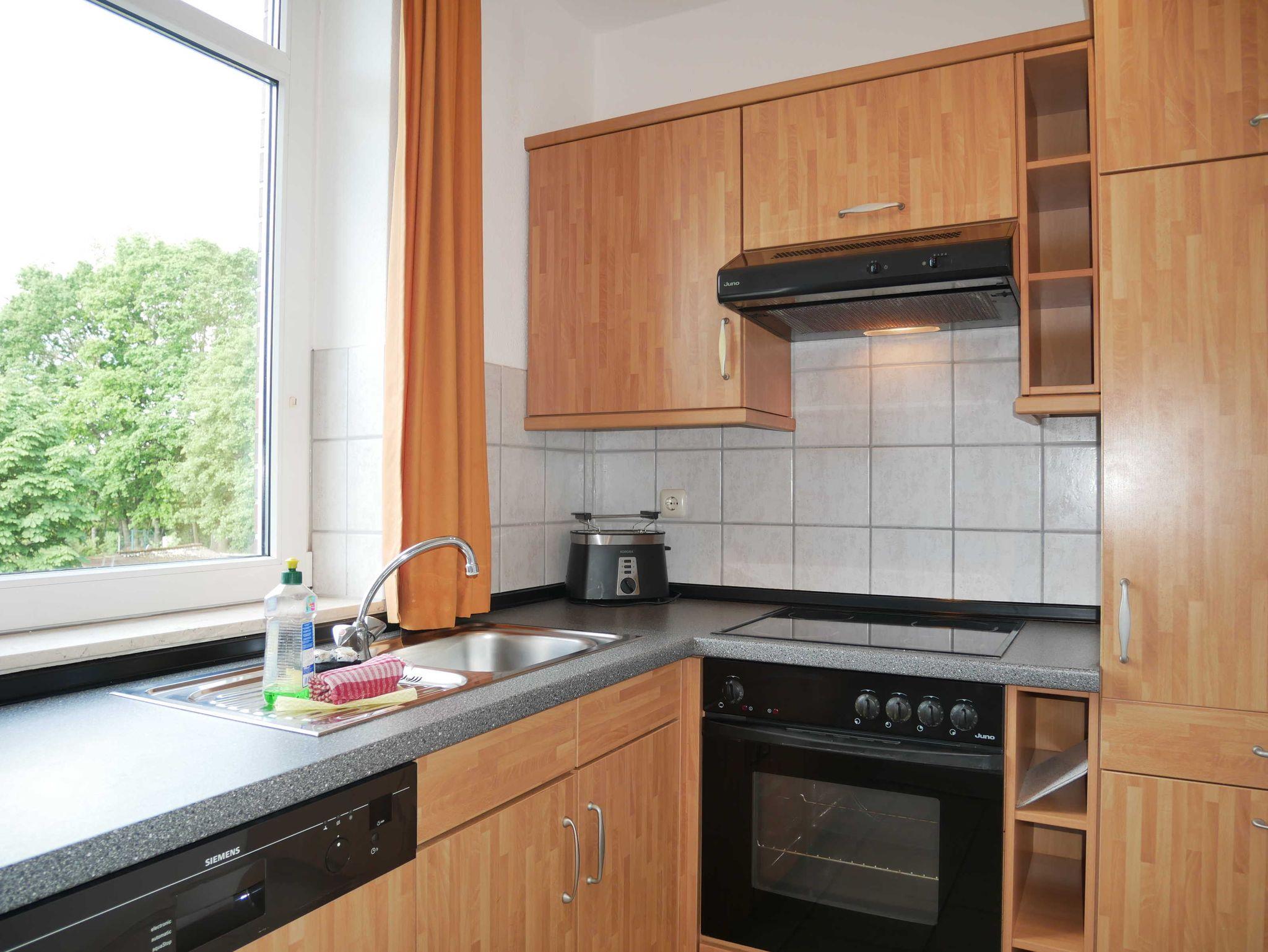 Zur Wohnung gehören ein Wohnzimmer, mit einer gemütlichen Essecke und Couchlandschaft mit TV, eine separate Küche, die über ein Cerankochfeld mit Backofen, Spülmaschine, Kühlschrank, Wasserkocher, Toaster und Kaffeemaschine verfügt.