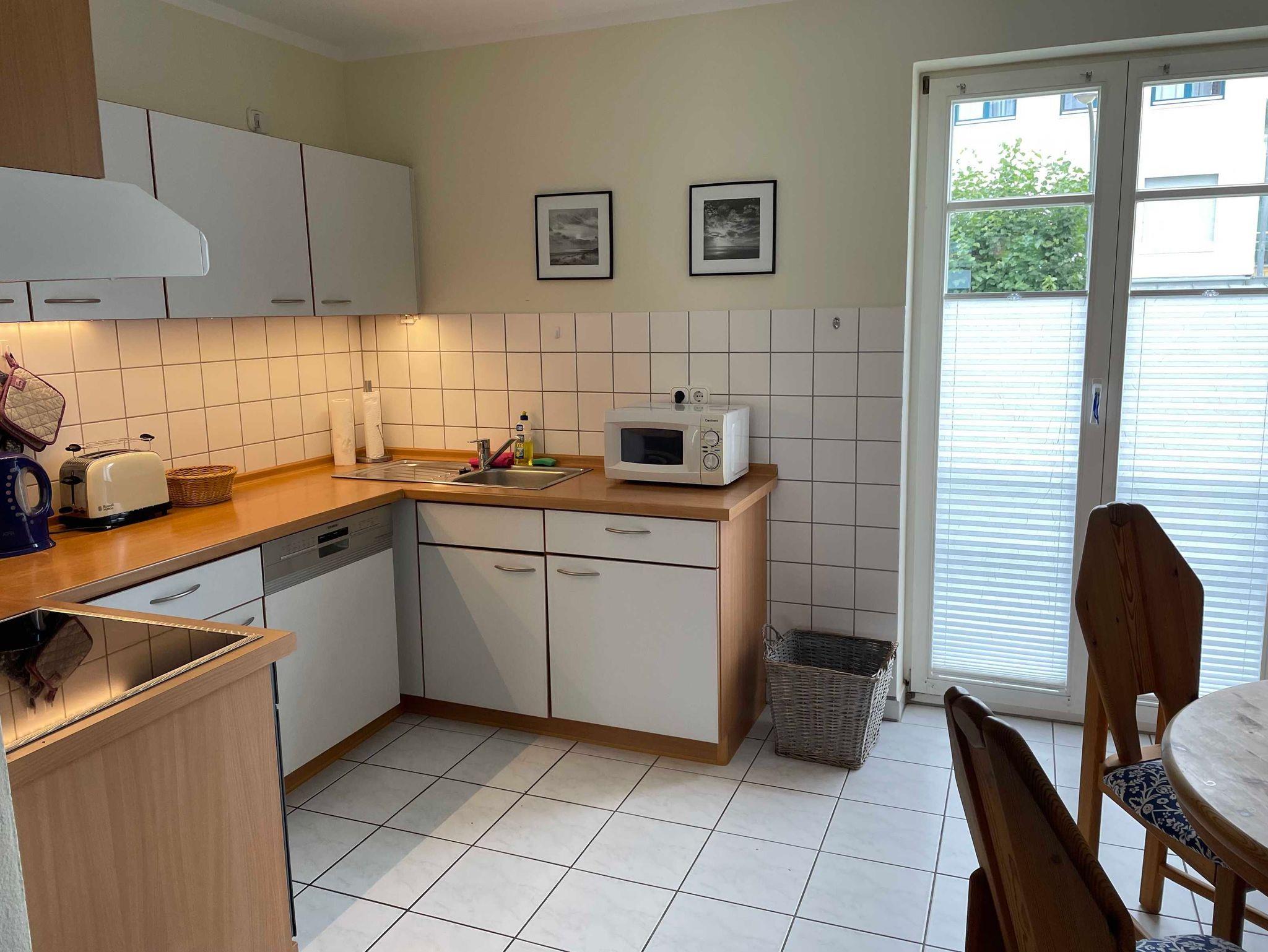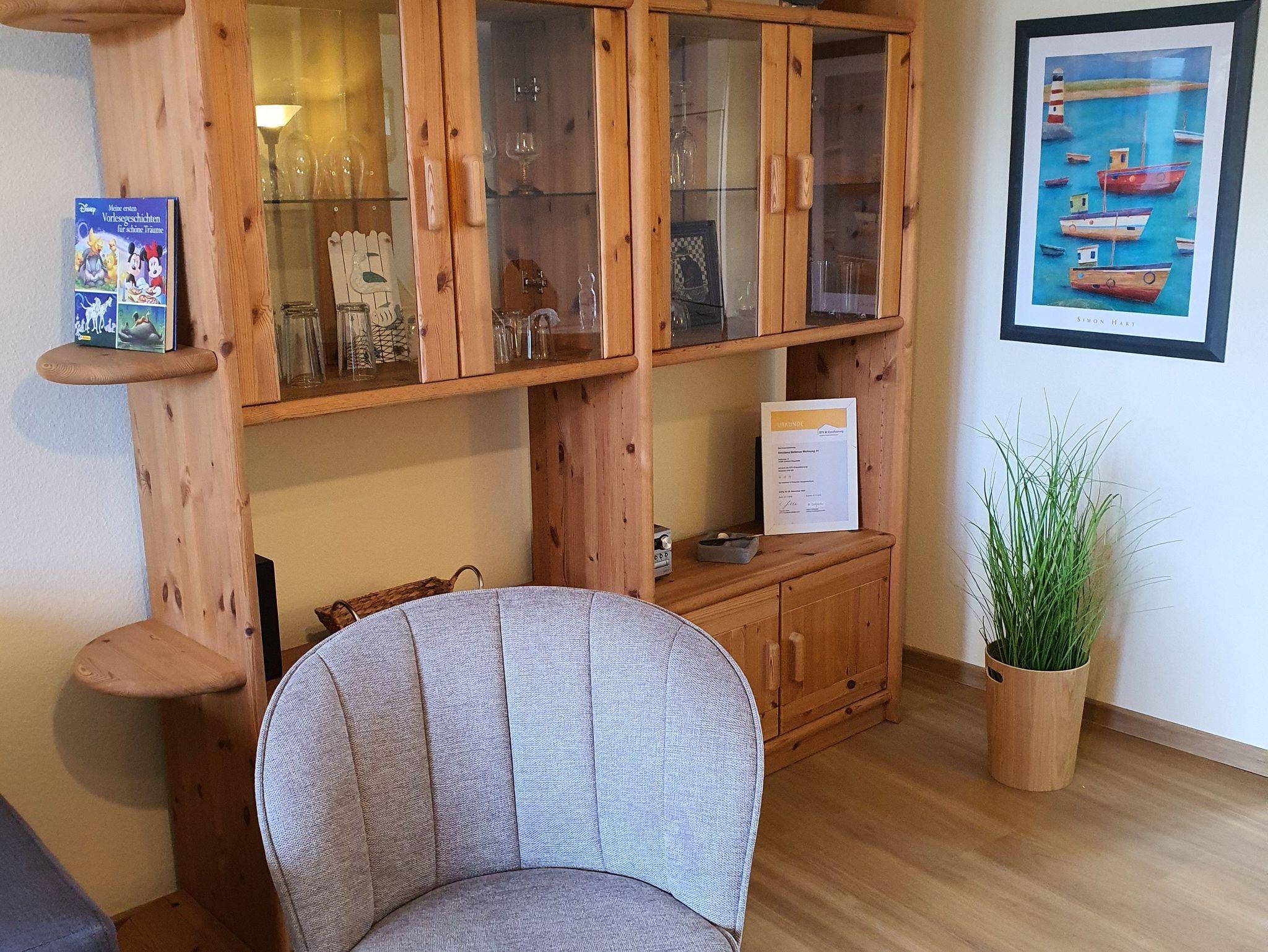 Die Wohnung ist hell und freundlich eingerichtet und verfügt über Kabel-TV und Radio. Eine gut ausgestattete Küche mit Geschirrspülmaschine, vollständigem Geschirr, Küchengeräten, Kaffeemaschine, Wasserkocher und Toaster sind vorhanden. Schlafzimmer mit Doppelbett für 2 Personen; Wohnzimmer mit Schlafsofa für 2 Personen;Babyreisebett kann gemietet werden. Neuer Laminatboden. Tiere auf Anfrage erlaubt.
