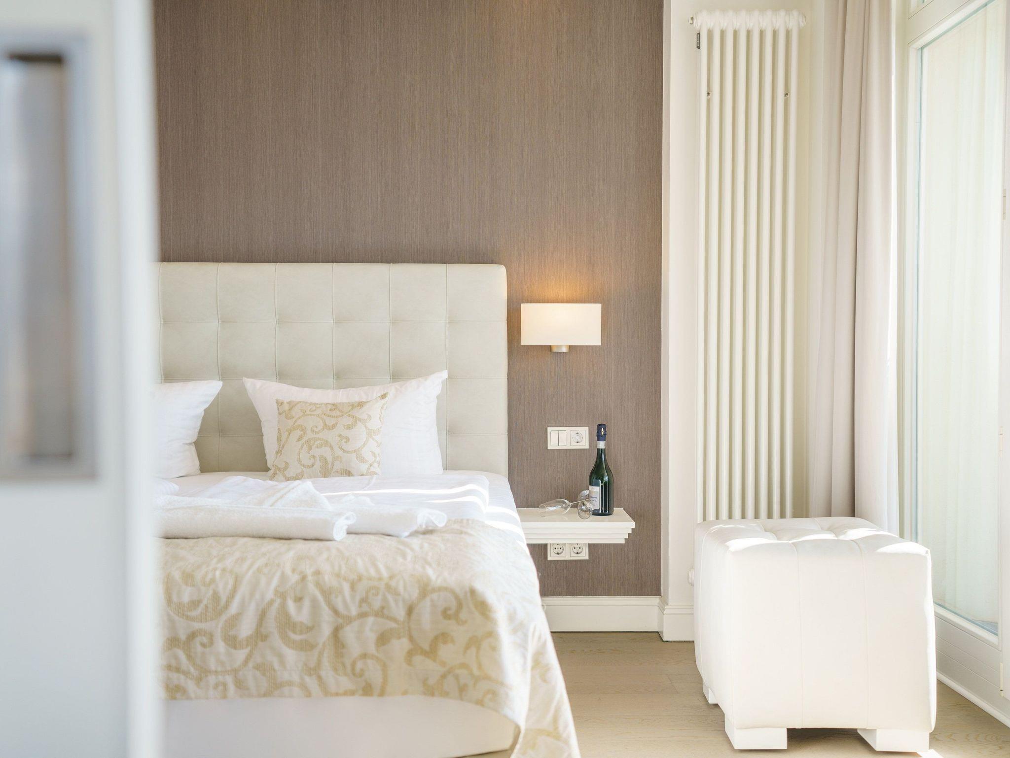 Im Wohnzimmer befindet sich eine moderne Einbauküche der Firma Nolte. Sie lässt mit Geschirrspüler, Backofen, Ceranherd, Mikrowelle und natürlich einem Kühlschrank mit Gefrierfach, Wasserkocher, Toaster, Kaffeemaschine keine Wünsche offen. Das Schlafzimmer besticht mit Flat-TV und einem komfortablen Boxspringbett (180 x 200cm | durchgehende Matratze), in dem Sie nicht nur schlafen wie im siebten Himmel, sondern zeitgleich Ihren Rücken schonen. Für ein angenehmes Liegegefühl und ideales Schlafklima sorgt die Bonell-Federkernmatratze mit seinem hochwertigen, supersoften Topper. Damit Sie Ihre wohlverdiente Urlaubszeit bereits am Anreisetag in vollen Zügen genießen können haben wir das Bett für Sie und das für Ihre lieben Mitreisenden bereits bezogen und ein Duschtuch sowie ein kleines Handtuch bereitgelegt.