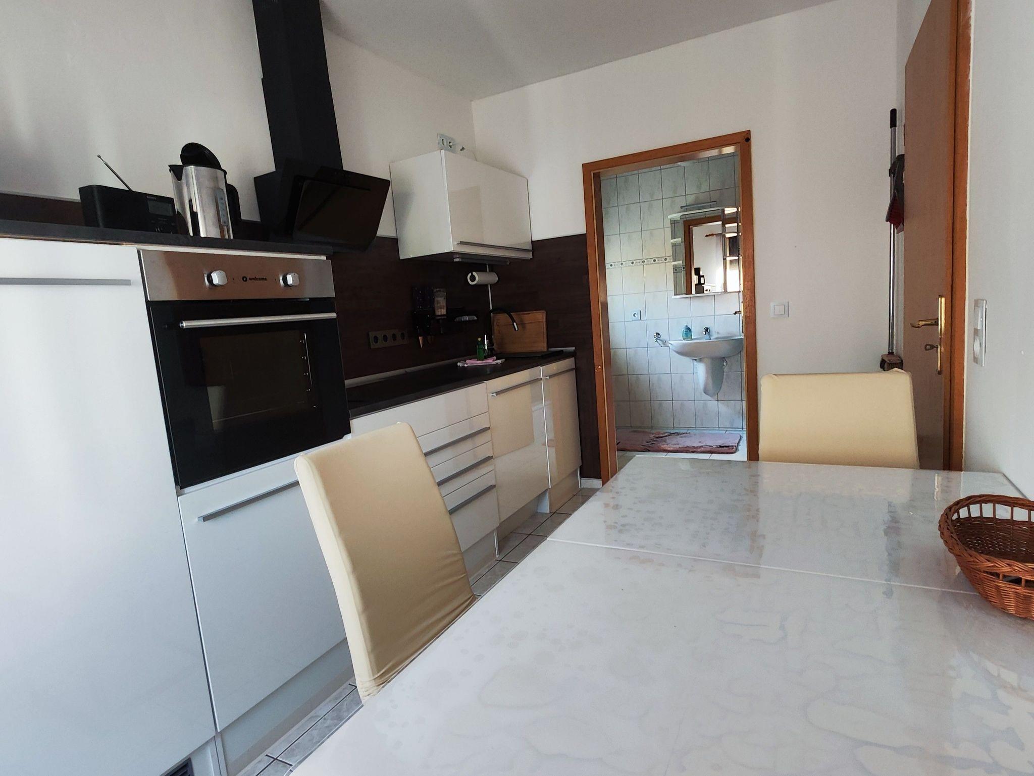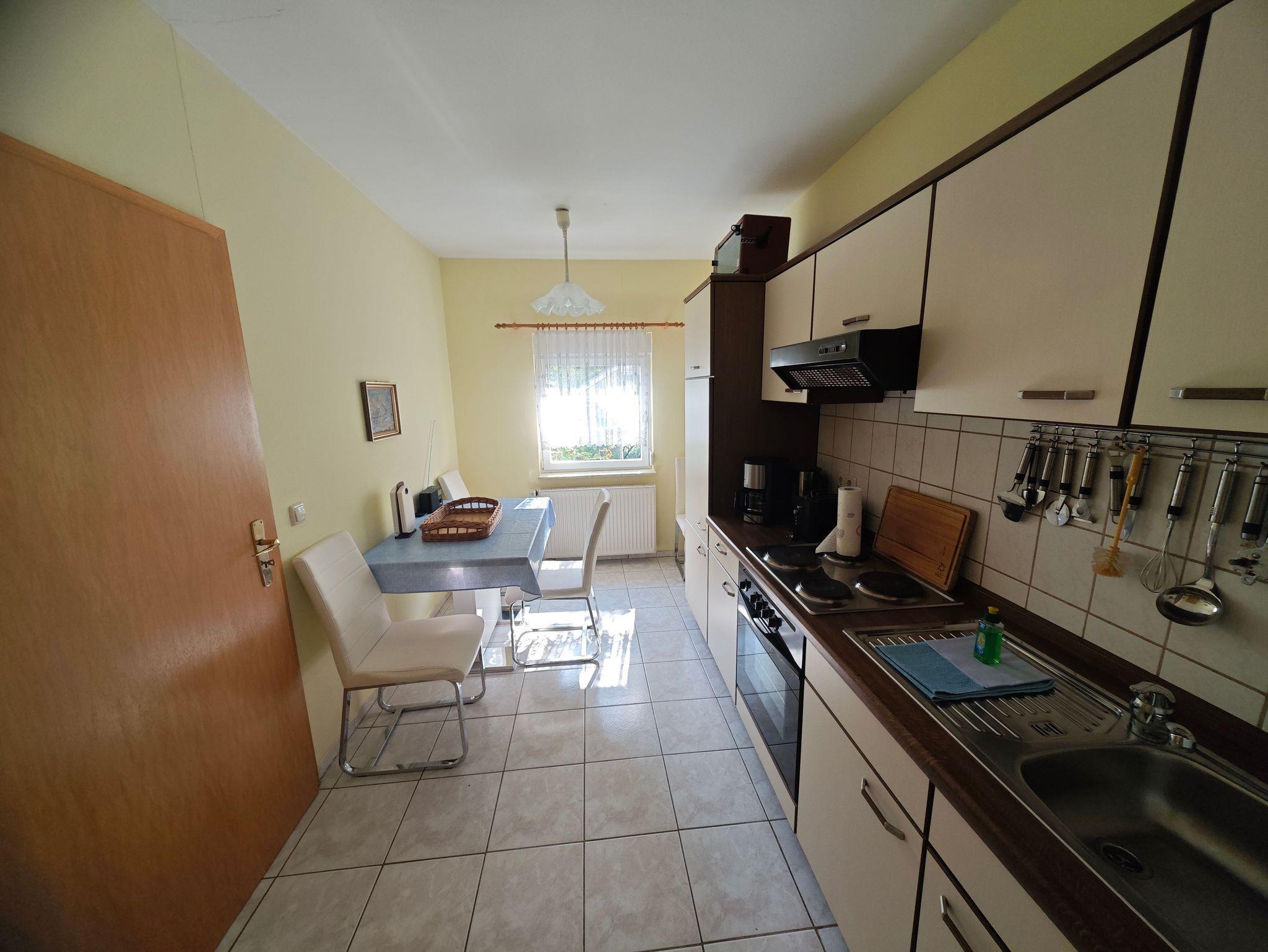 gut ausgestattete Küche mit Herd, Heißluftfritteuse, Wasserkocher, Kaffeemaschine, Toaster, Kühlschrank, Backofen , Gläser, Geschirr, Besteck, SAT-TV & WLAN.