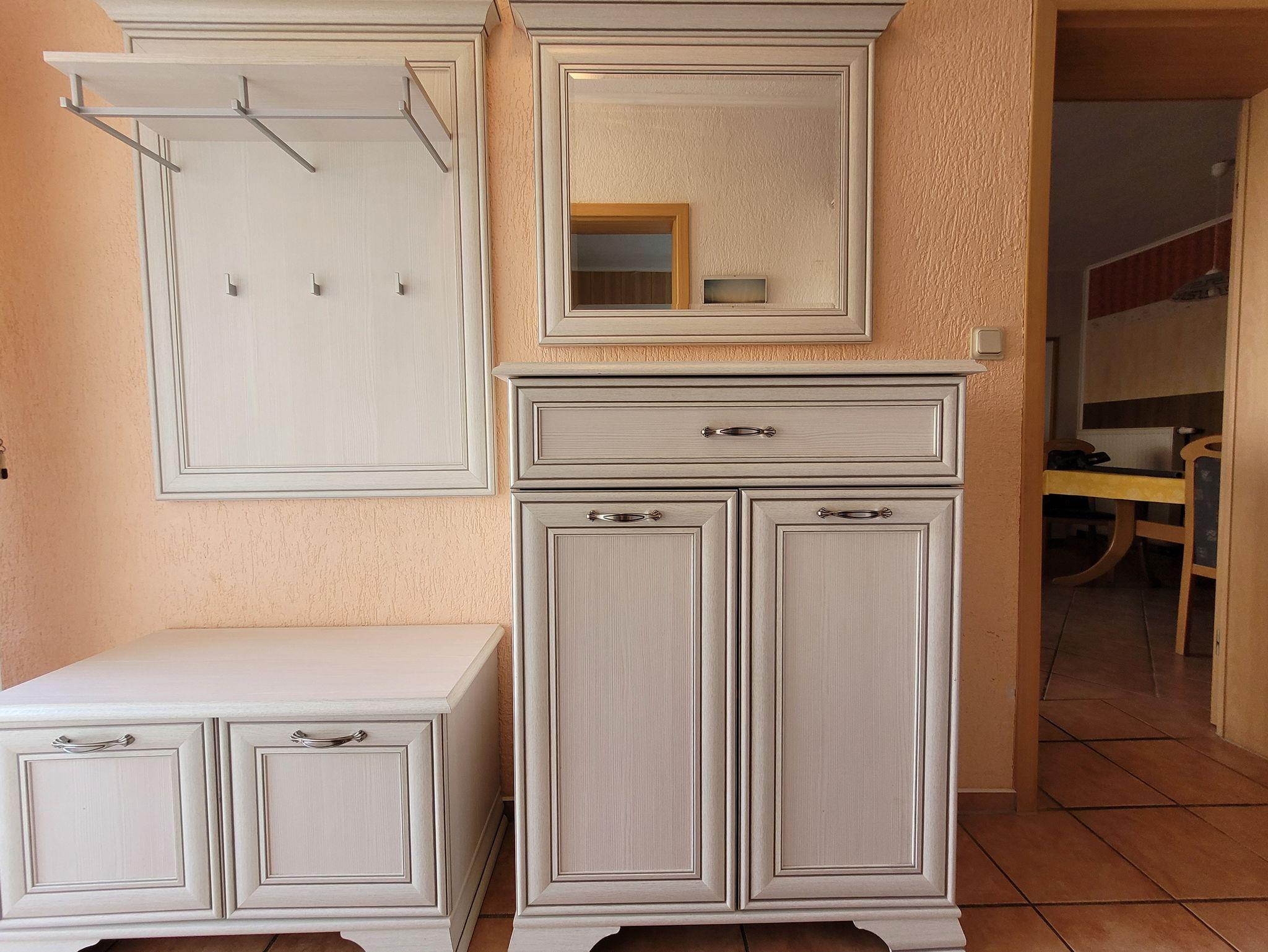 Die komplett eingerichtete Ferienwohnung mit Wohnzimmer, zwei Schlafzimmern mit einmal einem Doppelbett und einmal zwei Liegen, Küchenzeile, Dusche, WC, Flur und großer Terrasse neben der Wohnung würde für Sie bereitstehen. Zur Ausstattung gehören weiter Radio, Sat- Fernseher, einmalig Bettwäsche und Handtücher. In der Küchenzeile sind Mikrowelle, Kaffeemaschine und Toaster, Eier- und Wasserkocher sowie ein 2- Platten-Kocher, Kühlschrank und Geschirr vorhanden.
