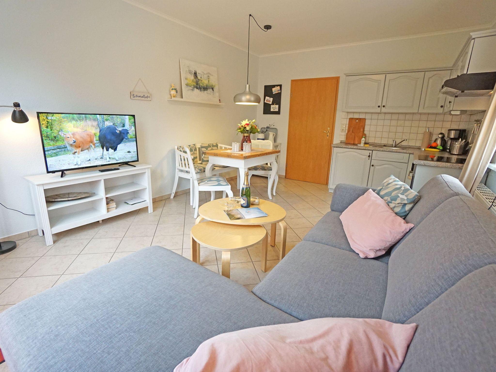 Die Ferienwohnung „Morgensonne“ - der Name ist Programm - bietet Ihnen eine große Sonnenterrasse mit Strandkorb, auf der Sie einen entspannten Start in den Tag genießen können. Mit 45 qm finden Sie hier allen Komfort, den Sie sich als Paar oder einer Familie mit einem Kleinkind wünschen. Das Wohnzimmer mit komplett ausgestatteter Küchenzeile verfügt über Sitz- bzw. Essgelegenheiten für 4 Personen. Das Schlafzimmer ist mit einem großzügigen Doppelbett ausgestattet. Vom Schlafzimmer gelangt man in das Duschbad.