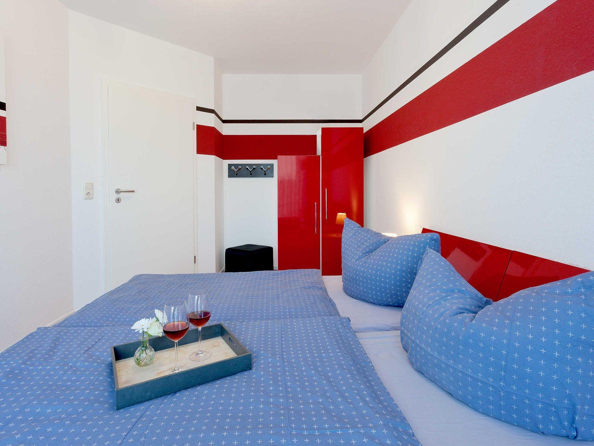 Die Wohnung verfügt über zwei gemütliche Schlafzimmer, eines davon mit einem praktischen Arbeitsplatz ? ideal für alle, die auch im Urlaub nicht ganz aufs Arbeiten verzichten möchten. Der großzügige Wohnbereich mit moderner, offener Küchenzeile und Essecke lädt zum Verweilen ein. Zur Ausstattung gehören ein Geschirrspüler, ein Flachbild-TV mit Kabel/Sat-Anschluss und kostenloses WLAN.